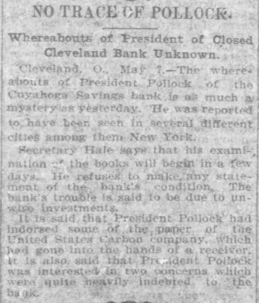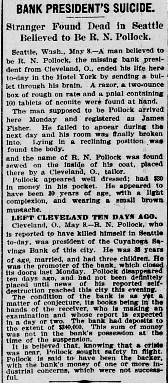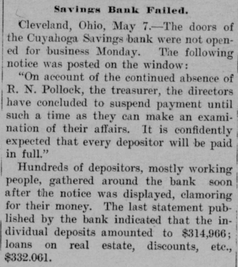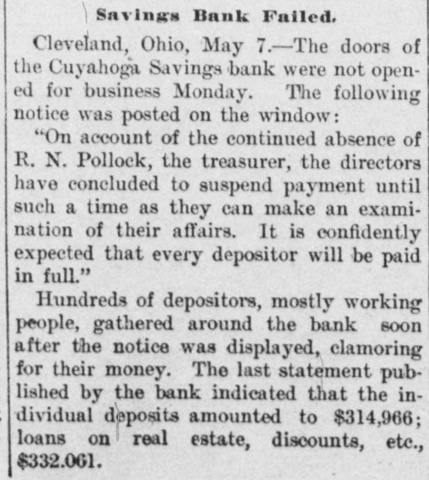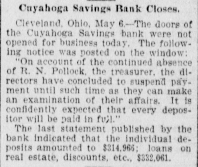 THE NEWS IN BRIEF. For the Week Ending May S. California has a Chinese population of 35,000. Fire destroyed 33 buildings in the village of Gridley, Ia. Mariano Ignacio Prado, ex-president of Peru, died in Paris. Twelve persons were injured in a trolley collision at Akron, O. The cup defender Constitution was launched at Bristol. R. I. Jackson Harris (colored), aged 100 years, died at Terre Haute, Ind. The village of Kendall, N. Y., was almost completely destroyed by fire. Fire swept away 22 business houses and their contents at Lufkin, Tex. Hickman Rich and wife were instantly killed by a train at Sullivan, Ind. A formal offer has been made to sell the Panama canal to the United States. Saloons in Kansas City, Mo., were closed tight Sunday, the first time in six years. Ex-Empress Eugenie has presented Prince Louis Napoleon's cradle to Paris. Ohio republicans will hold their state convention in Columbus June 24 and 25. Judge J. J. Healy, of Aberdeen, S. D., was struck by lightning and instantly killed. The Minnesota prison board has recommended the parole of the Younger brothers. John C. Wallace, a wealthy farmer at Warren, N. Y., killed his wife and hired man. Fire at Ewart, Ia., practically destroyed the entire town, including a big grain ele* vator. Raphael Straus, the well-known artist, died at his home in Cincinnati, aged 72 years. Reports show that the winter and spring wheat crops of the country are in fine condition. The total catch of seals during the season just closed was 350,000, valued at $600,000. Five men were fatally injured by an explosion of powder in a mine at Wilkesbarre, Pa. The Cuyahoga savings bank at Cleveland, O., suspended business with deposits of $314,946. J. H. Halperin, aged 20, and his young wife killed themselves in Chicago by inhaling gas. Policemen Sheehan and Mosher were found guilty in Chicago of robbing Hugh McDougall. The annual encampment of the department of the Ohio G. A. R. convened at Bellefontaine. The annual report of the Michigan Central railroad shows an increase of $1,226,000 in earnings. Manuel Mess, a constable at Hebronville, Tex., killed his wife and himself. Jealousy was the cause. In a hotel fire in Montreal, Can., Octave Lussier and his wife and Mrs. Brunelle lost their lives. The Standard Oil company has secured control of the Mexican Central and will reorganize the road. Thomas Ledden, one of the oldest captains of the lakes, is dead in Chicago, at the age of GO years. Ann M. Rathbun was sentenced to life imprisonment at New Haven, Conn., for murdering her husband. The Illinois legislature, after passing senatorial and congressional apportionment bills, adjourned sine die. Rev. Henry Scadding. D. D., celebrated Canadian historian and antiquarian, died at Toronto, aged 88 years. Former President Grover Cleveland made $400,000 by the skyrocket flight of Northern Pacific stock in New York. Four Winnebago Indians who served in the civil war applied for membership in a G. A. R. post at Sioux City. The tug Tecumseh foundered off Gore Bay, Ont., and Capt. John Wylie and two other persons were drowned. In a fit of insanity Mrs. Freeman Randle killed her two-year-old daughter and herself near Edwardsville, III. Jesse R. King shot his wife of two months and killed himself near Millheim, Pa. Jealousy was the cause. Industrial interests of Cuba urge annexation to the United States, fearing disaster if they lose American markets. Six men and a woman in Macon county, Mo., were charged with swindling fire insurance companies out of $40,000. The Illinois Central railroad raised the pay of its 8,000 employes in the machinery