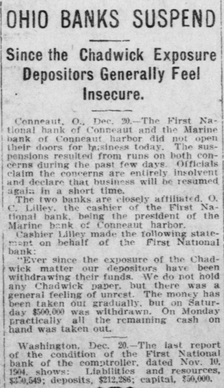 seq wisen? Jun state $1 = Anthony J. Drexel's fine steam yacht, paying $650,000. The Wade Park bank, of Cleveland, O., pus of Refunides HI which jo treasurer, together with two branches, has been taken over by the Cleveland Trust company, which will conduct the business of the three institutions. W. C. Matthews, the negro football and baseball player, has been elected one of Harvard's senior class day officers. James R. Garfield, commissioner of corporations, in his first annual report, made to President Roosevelt, recommends compulsory regulation of corporations under a federal license or franchise. Admiral Sir Frasmus Ommanney, the "father of the British navy," died at Portsmouth, England, after a lengthy illness. He was the last survivor of the battle of Navarino, fought in 1827, which resulted in the destruction of the Turkfreeth us! George L. Shoup, former United States senator from Idaho, died at his home in Boise, Idaho, in his sixty-eighth year. The Metropolitan clubhouse, the home of the most fashionable club in Washington, was gutted by fire, involving an estimated loss of from $60,000 to $100,000. Mrs. William Gladden shot and killed her husband at their home at Requa gulch, south of Cripple Creek, Col. She says that he abused and beat her. The bodies of John C. Kenyon, William Lillyblade and William Emmermon have been taken from the Crocker hotel ruins in Minneapolis, Minn. Receipts of the Britt-Nelson glove contest amounted to $26,900, of which Britt received $8,877 and Nelson $5,918. The postmaster general removed two more mail carriers for interference in politics and legislation. Republican leaders conferred on the proposed railway rate bill and assured President Roosevelt congress will act during the present session. pus dn the SEM иорпот up traff IIV Christmas shoppers inconvenienced by a dense fog. The Illinois state board of equalization made a cut of $2,000,000 the in assessed valuation of all property in the state. City Clerk Edward M. Schuengel, of Milwaukee, Wis., aged 47 years, died suddenly. Mr. Schuengel had been suffering from Bright's disease and heart trouble for some time. After a lingering illness of three years, due to infirmities of old age, Rt. Rev. Richard Phelan, bishop of Pittsburg diocese, of the Roman Catholic church, died at Pittsburg, Pa., aged 76 years. The official report shows that during the world's fair at St. Louis the total admissions were 19,694,855, of these 12,804,616 were paid. The free admissions amounted to 6,890,239. Two trainmen were killed and one was badly scalded in a collision between freight trains on the Rochester & Pittsburg road, near West Falls, N. Y. The John Thompson & Son agricultural machine works and gasoline engine factory at Beloit, Wis., was destroyed by fire, causing a loss of $100,000. Seven were killed in the disaster at Minneapolis, Minn., when the wall of the Peck building crushed the Crocker hotel. Senator Fairbanks has decided to forward his resignation to the governor o Indiana January 9, the date of the meeting of the legislature, to take effect March 4, next, when he will be inaugurated vice president. Four men were killed and their bodies terribly mangled as the result of boiler explosion at the sawmill of B. F. Redline near Rohrsburg, Pa. James P. Eagle died at Little Rock. Ark., after an illness of three weeks. He was governor of Arkansas from 1889 to 1893. A disastrous storm which suddenly burst on the northern coast of Portugal has caused great less of life. From reports already received 37 persons have perished. President Roosevelt has accepted an invitation to deliver an address at the Lincoln day dinner to be given by the Republican club, of New York, on the February ixan jo 1334 The Minnesota board of pardons has granted a pardon to Col. Ames, brother of former Mayor Ames, of Minneapolis, and who was Mayor Ames' chief of police. concertion up graft JO contricted SUM H with the Ames administration. The First national bank, of Conneaut. O., and the Marine bank, of Conneaut Harbor, have suspended. The suspen sion resulted from runs on both concerns owing to the panie caused by the Chadwick affair. The protestants in the Smoot inquiry rested their case. The hearing was post. poned until January 10, when the defense will present evidence. Many Europeans flocking to America now are paupers and unfit for citizenship, according to Mr. Sargent, commissioner of immigration. Frederick Hall White, a Harvard football player. has taken possession of a fortune of $3,000,000 inherited from his mother. The government has adopted a stand.