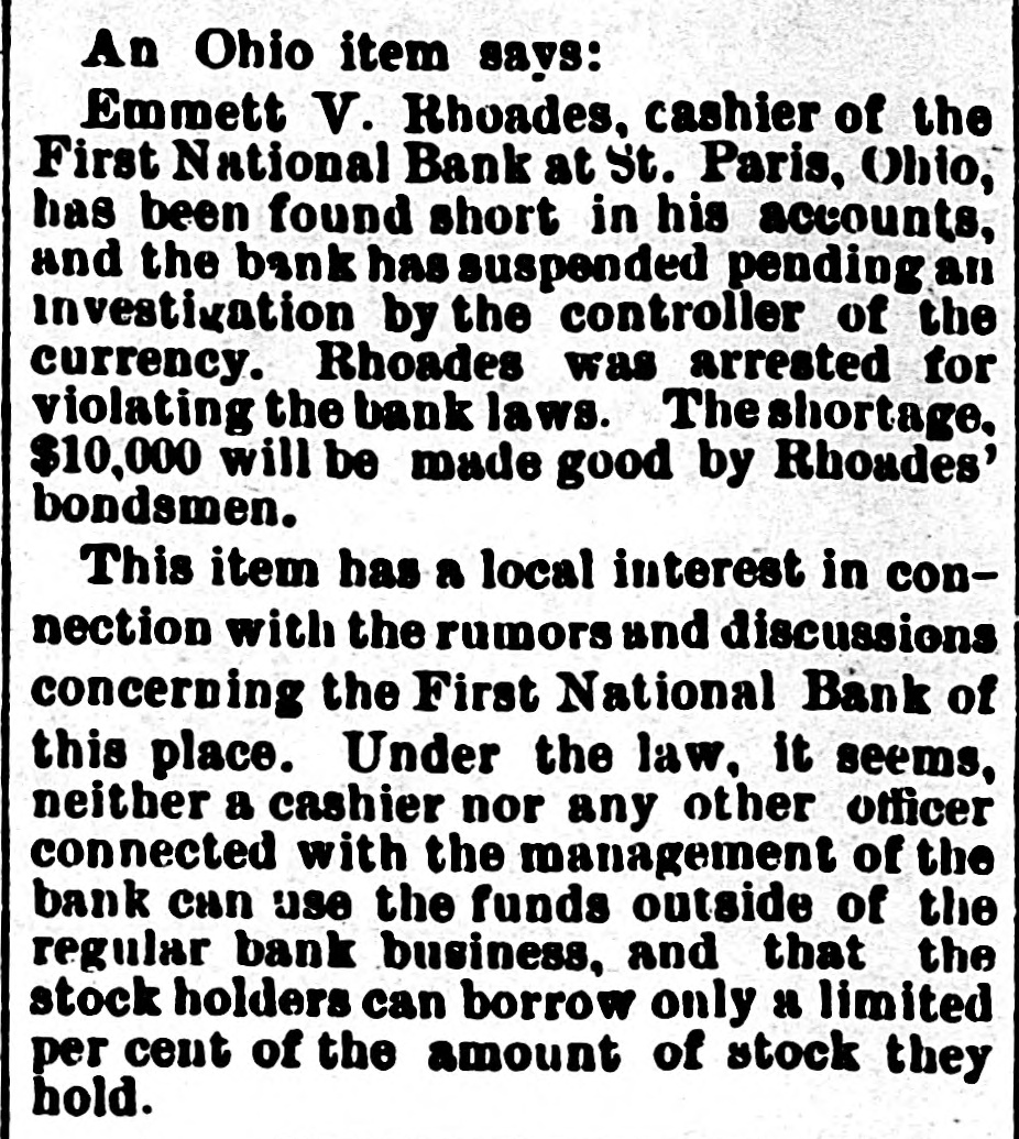 THE Democrats of Maryland made the following Congressional nominations on the 24th: First district, C. H. Gibson (renominated); Third, H. W. Rusk: Fourth, Isadore Raynor (renominated): Fifth, Barnes Comton (renominated); Sixth, H. F. Douglas. At the National meeting of Dunkards at Wabash, Ind., on the 24th it was decided that members must quit using tobacco before they take baptism. JUDGE NASH decided on the 24th that the act of the Legislature of Washington Territory extending the suffrage to women was unconstitutional. ON the 25th Reuben Drake, a well-to-do farmer, sixty years of age, and his wife and two grandchildren were murdered in their home in the town of Kickapoo, Wis. It was supposed the murderer's object was robbery. DEMOCRATS of the Eighth North Carolina district on the 25th renominated W. H. H. Cowles for Congress. OHIO Prohibitionists in convention on the 25th at Toledo nominated the following ticket: Secretary of State, Walter F. Payne; Board of Public Works, J. W. Pen field; Supreme Judge, John F. Moore. THE Prohibitionists of the Seventh Wisconsin district on the 25th nominated J. H. Moseley, of Tomah, for Congress. A RAIN and wind-storm on the 27th at Shelbyville, III., uprooted trees and unroofed houses; and lightning struck one dwelling and a barn, cutting them in two as though cleft with an axe. ON the 27th Bishop Gilmore, of the Canton (0.) Catholic diocese, ordered that no priest should officiate at funerals where flowers were used. At Anderson, Tex., William H. Roe, who murdered his wife by poisoning to secure the insurance on her life, was hanged on the 26th. GREAT damage to property was caused by a cyclone on the 26th in Ottawa and Cloud counties, Kan. Several persons were injured, but none fatally. LOUISIANA Democrats met at Baton Rouge on the 26th and named as delega es-atlarge to St. Louis Samuel D. McEnery, Charles Parlange, James Jeffries and Dudley Avery. The resolutions adopted favor President Cleveland's renomination. IN the Seventh Indiana district the Democrats on the 26th renominated W. D. Bynum for Congress. FIRE destroyed the Parry stove works at South Pittsburg, Tenn., on the 26th. Loss, $200,000. A WATERSPOUT on the 26th at Chadron, Neb., and vicinity did great damage to crops, swept away grazing live stock and inundated miles of territory. ON the 26th the standard gauge railroad to the summit of Lookout Mountain, in Tennessee, was completed. and the first passenger train ran the mountain. WILLIAM JOHNSON and Jefferson Tapley were drowned near Hannibal, Mo., on the 26th by the capsizing of a skiff. A WIND-STORM on the 28th near Morenci, Mich., wrecked eight buildings, tore down fences, uprooted trees and did other damage. A GASOLINE explosion on the 28th in the store of A. F. Zellers, at Frederick, Md., dur ng the progress of a fire, wrecked the building, killed a boy and severely injured seventy persons, ten probably fatally. IN Cincinnati forty-four violators of the Sunday-Closing law were arrested on the 28th. ON the 28th the First National Bank at St. Paris, 0., suspended, owing to the shortage of Emmett V. Rhodes, the cashier, amounting to $10,000. By a stroke of lightning one man was killed and ten others probably fatally injured on the 28th at Milenberg, La. ON the 28th Thomas Waggoner, of Jackson, III., charged with accepting election bribes last fall, was found guilty, ordered to be disfranchised for five years, contined in the county jail for ninety days, and to pay the costs of prosecution. This was the first case under the new law. BUILDINGS were blown down by high wind at Canton, 0., on the 28th, and losses amounting to $70,000 were caused. RAINS on the 28th flooded farm lands and did great damage to crops in many parts of Illinois, Wisconsin and Indiana.