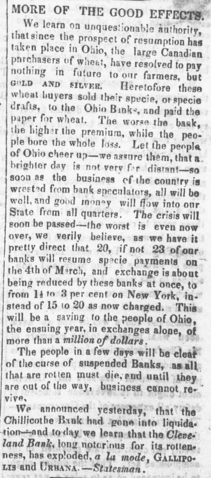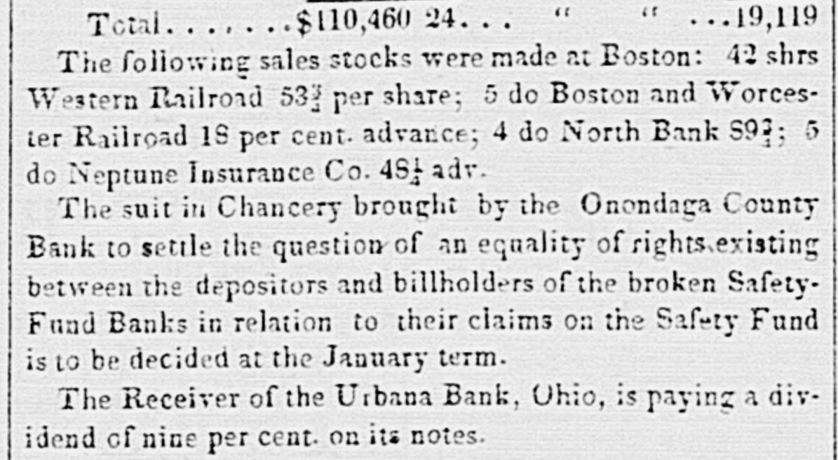 MONEY MARKET. Tuesday, Dec. 12-6 P. M. advanced. The sales were very yesterday, heavy. Railroad improved 4 per cent Bank 1; Paterson Norwich 1; Illinois 1; Illinois Farmers Loan 1/2 Harlem Stocks again 1; since Ohio firm up Island declined 1; Canton 1 very 1; Long Bank 1; Kentucky and Indiana were sold at North American Ohio Vicksburg quotations; Trust Life 13, previous advance of per cent since street an firm at par. Nothing doing in Wall in stocks. The holders of bank stock. speculations being at and Trust brokers yesterday; are very busy fleec- but deing each other, at Insurance the expense and of Trust Company have 1st inst clared The Savannah a semi annual dividend of five Orleans per cent. on the were The $65,897, receipts making of specie the in total New amount received since were Sept From 1st, Oct. $2,027,180 1st to Dec. 1st, the receipts of specie at Mobile diof nine per cent on its The $602,379. receiver of the Ur bana circulation. Bank, Ohio, is paying Rail a vidend President of the Philadelphia and 2 loan Reading of $1,000,road The is in London, endeavoring He has been to obtain partially successful. do000 This for road that appears, Company. from their monthly The receipts reports, for to Novem be ng fair amount of business. ber were in $54,695 80. money market shows great activity Good diviThe Boston an abundance of floating capital. advanced within stocks, and particularly railroad, have road stock a large per cent. for old, and 151 Lowell 30 do; Auburn and $33 dend reached a few stocks, days 5] 6 advance; Worcester Norwich Providence Rochester 181 102 Fitchburg per cent; has for new; Western firm manufacturing at $49 49 75; stocks have improved very The Lowell of which are about making dividends. of a six per much, many advance, in anticipation Boot 7) Lawrence 34 do; x-dividend; Suffolk $97. dividend; sells at 71 Appleton 43 do; Amoskeag cent do Tremont York, 7 do; at Merrimack Saco, 13 do; 25 do, Stark of 9 53 per do. cent. The We learn Perkins 15 do; dividend in the Boswill of the loose on the manufacturlarge part from dividends that ing that ton and Banks doubtless insurance is received make companies a These capital companies of that in section, deposit have each, paid which, within have been lately declared. from six to ten per cent heavy sum. the last six months amounts to a very on their of investment being want of All the channels deposite, for the of into the banks on The accumulation goes immense employment. capitals, full, the this country, amount capital some is method of in all parts of absorb. safe in the corporate companies movements of trade can com greater than the usual estate for several years past, The high prices the present of real real value-the worth numerous was so inflated, mortpared with on property when its mortgaged-th be paid with the and the abundance of unencumbered estate to obtain scarcity gages that cannot created property, real premises so capital of money their much idle capital, without enabling endangering interest, owners create of land so and houses, safe, and legitimate paying that seven per cent to any profitable use in it a accumulates in cannot be devoted its value decreases, and of speculation that manner, that or is devoted to a species The banking and in in will dollars. surance approaches bank vaults, companies very near the of course to this gambling city, of sixty and several days This th interest-pay row increase into the to ing market states, more than a million of will give an additional imthe present to all the immense bubbles amount now already at an so earlier much inflated, period than will and petus about the grand dividends crisis due, or about due, anxious Many of individuals who are fall into the hands by a few fortunate otherwise. bring their wealth, of the whole movement speculations will to increase result of the backed in Wall street. The shrewdest operators, the be that a few of the the oysters and distribute loans, will get and foresight. The bank all experience shells with not possessing less the Treasury does of condition of to those report of the Secretary the of government, so plaindely show as we the could financial in estimating wish. He receipts "aggregates and importance expenditures instead of the is sub- not tails, particular and in giving items taken as the the Secretary's tables and AND EXPENDITURES 1841. arranged ject so demands. them so We as have they can be OF understood THE UNITED at a glance. STATES $28,685,111 RECEIPTS Amount in the Treasury 1841. FROM on settlement of ac29,289,434 counts, deducted Jan. 1, as not available, $604,323 Jan. 1, 1841, of So To that be in fact there was an actual deficiency, $19,643,966 Receipts 1842. into the funds, Treasury, and during of the 1842, avails ex- of to clusive of notes trust and loans, the were revenue and others were To Treasury supply provide the means deficiency for the in redemption issued and of loans Tea14,808,735 sury obtained notes, to the amount of $34,452,701 of exclusive Expenditures of on the the same redemption year, loans of Trea- and the sums notes paid and interest debt, on recent were $23,922,037 sury account of public account of the 8,477,868 loans was Amount old on public interest paid debt, on and Treasury on Janu- notes 604,323 Deficiency and in the Treasury ary 1st, 1841 33,004,229 $1,449,473 Balance in the Treasury Jan. 1st, 1843 1st to $8,065,325 1843. Receipts into exclusive the Treasury of the avails from of Jan. Treasu5,545,708 To July ry provide notes 1st, or means loans others for were the of. redemption issued, and of loans Trea6,934,000 A sury obtained loan notes, was to made the millions, amount under the nearly act the of March whole of 3, 1843, of seven that quarter. down 1,449,473 Balance which in was the received Treasury Jan. 1st,1843, brought $21,994,506 on account of the redemption Expenditure exclusive publie debt. of the sums of $10,698,390 paid paid for for principal Amount notes and debt 861,607 11,
