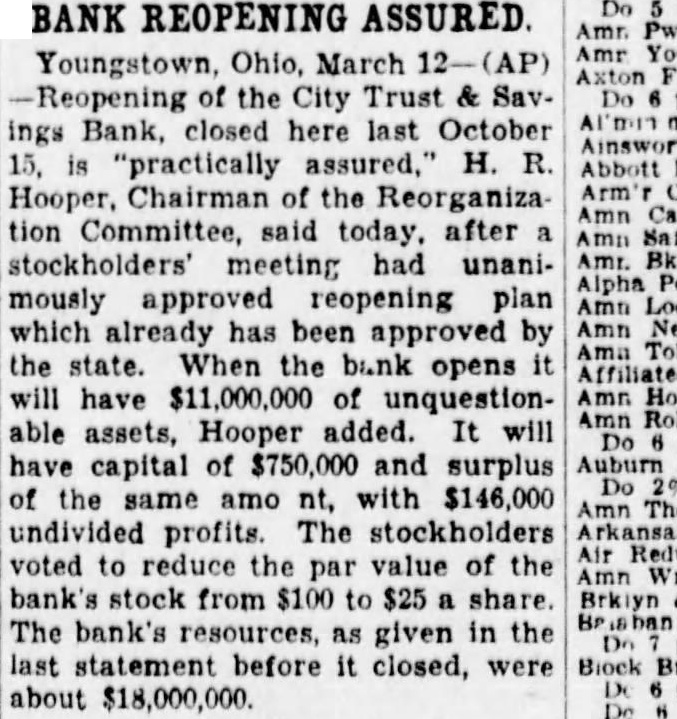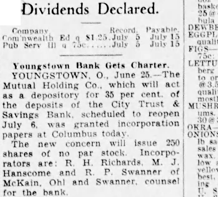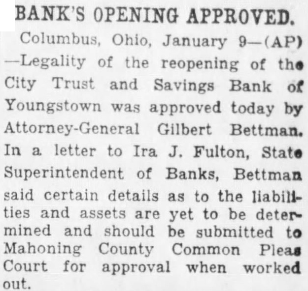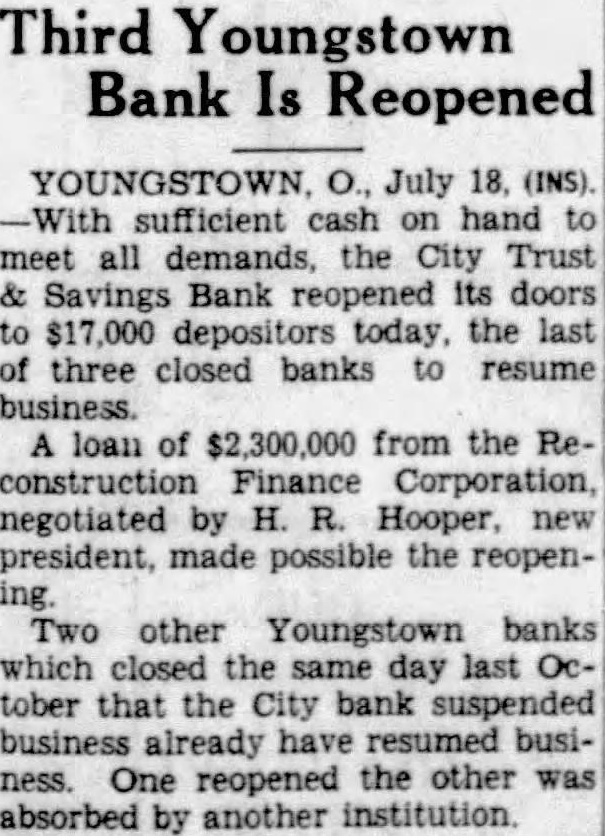 Merger Follows Closing of Three Youngstown Banks