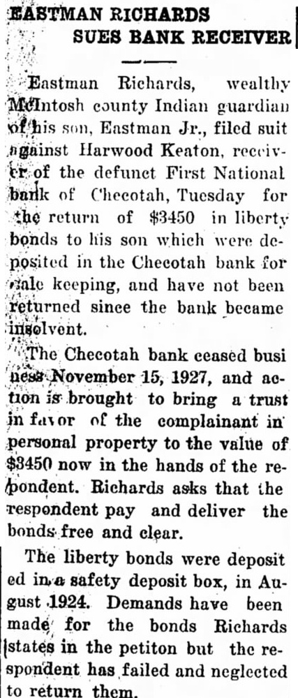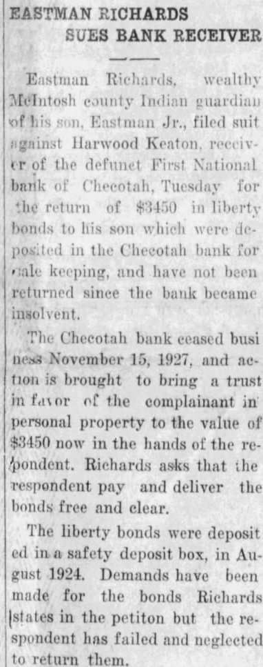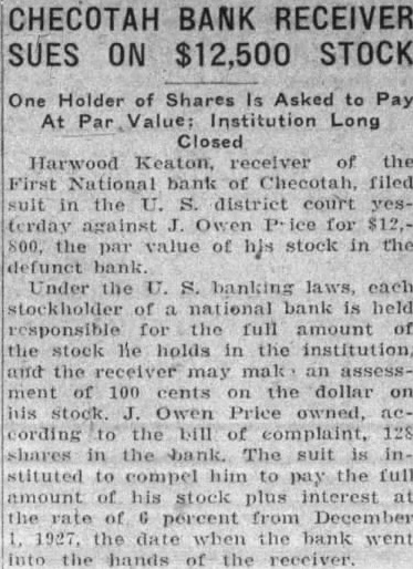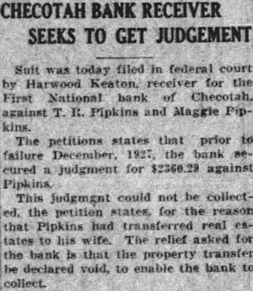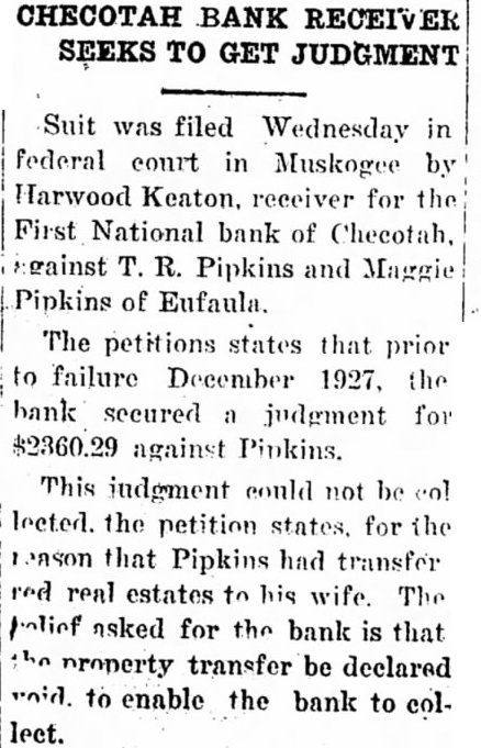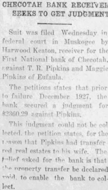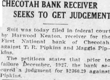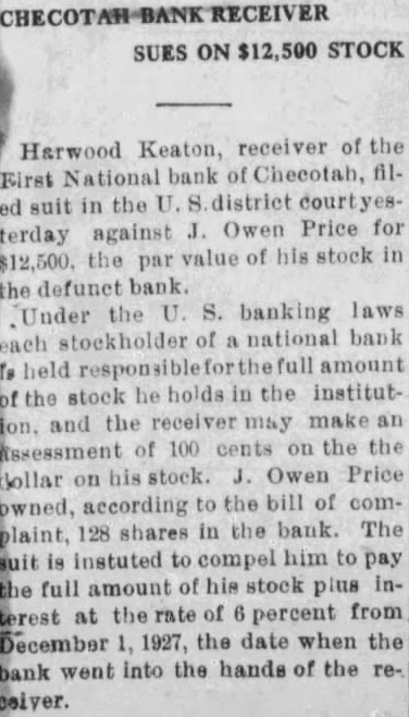 HARWOOD KEATON Receiver of the First National Bank of Checotah, Oklahoma, a Corporation.