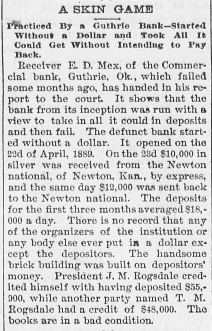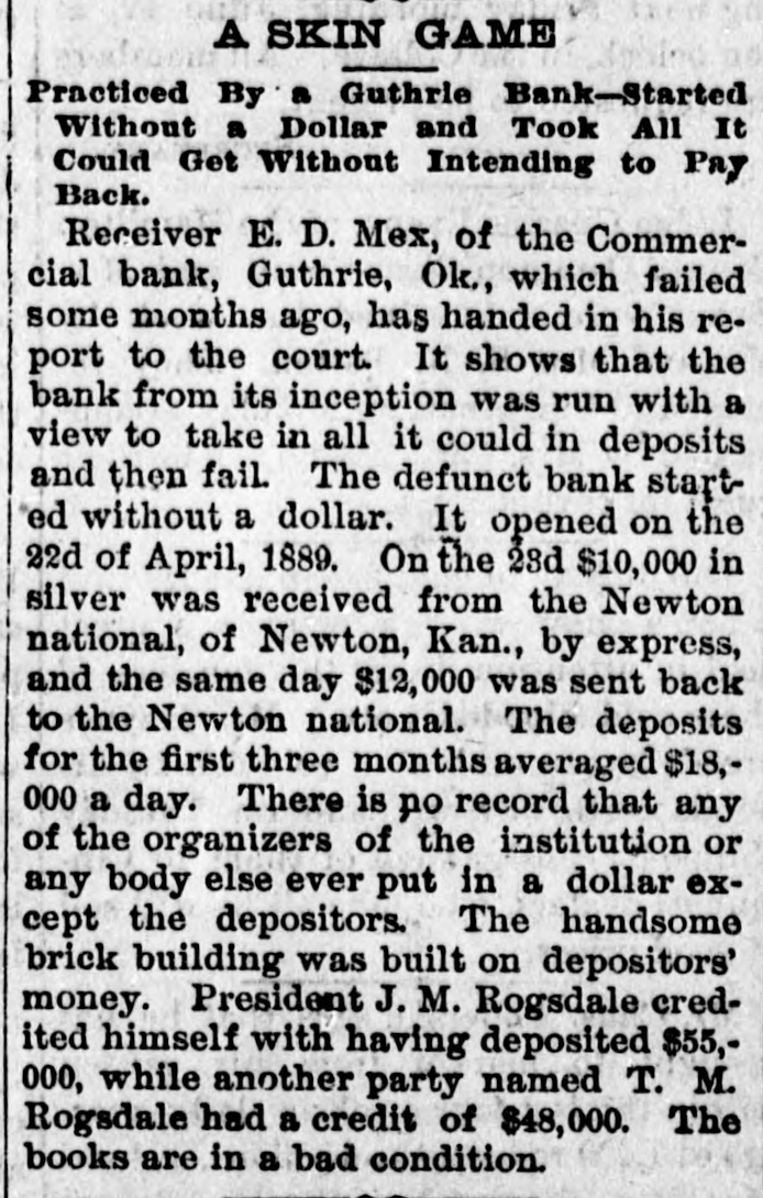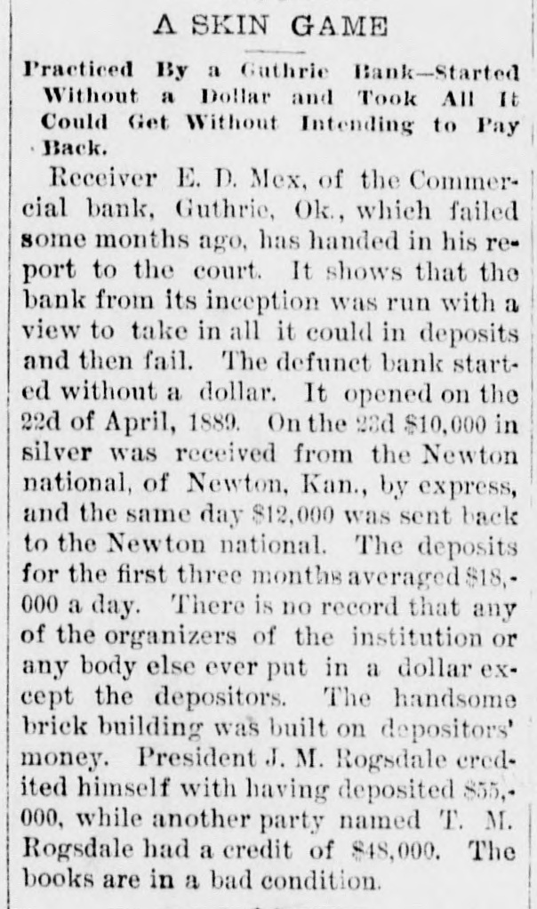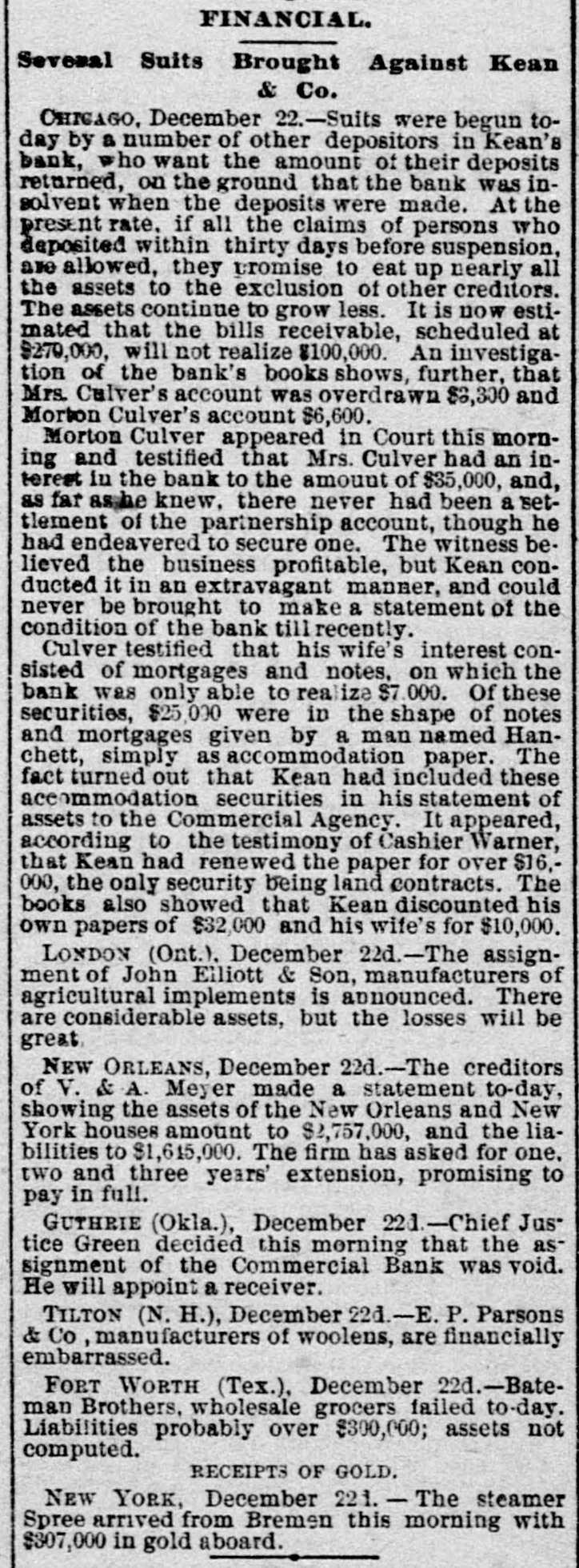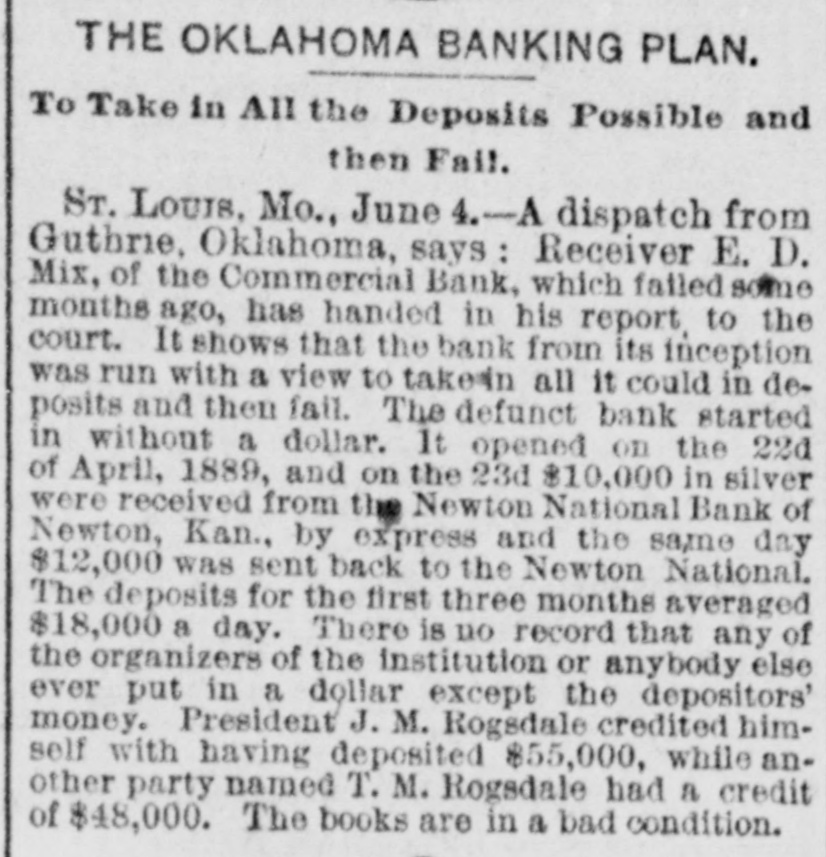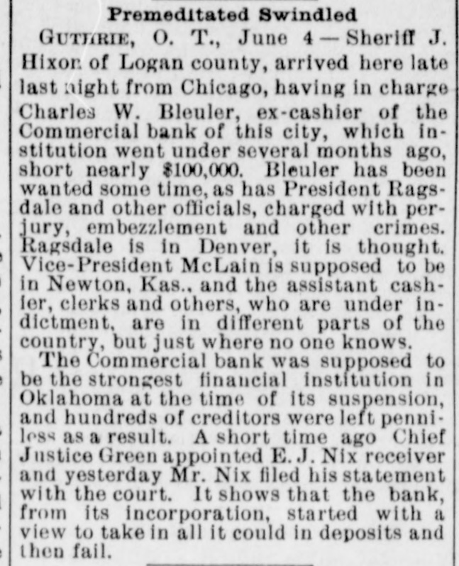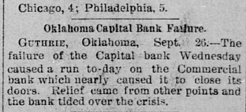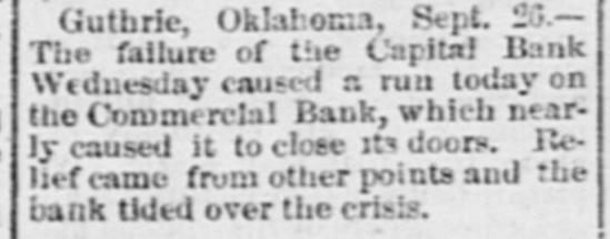 An Indian Uprising Imminent. PITTSBURG, September 26th. - Captain Trimbleton, of the Seventh United States Cavalry, Commandant of Fort Sill, passed through Pittsburg. He says the greatest Indian uprising of recent times is certain to come soon. The Indians have got an idea that a great medicine man is coming to wipe out the whites and restore to them the ownership of the country. The result is that they have entered with the fervor of fanatics upon a series of incantations and religiou orgies. Five thousand Indians about Fort Sill have renounced Christianity, and he is certain in 2 short time somebody will pretend to be the expected great medicine man, and then the trouble will begin. He thinks all the United States garrisons should be doubled. North Dakots Prohibitionists. GRAND FORKS (N. D), September 26th.Late last night the State Convention Prohibitionists and Farmers' Alliance indorsed the Republican nominees for Congress, Lieutenant Governor, Commissioner of Insurance and Railroad Commissioner, the Democratic nominees for Secretary of State, Superintendent of Instruction and Railroad Commissioner, and nominated for Governor Walter Muir; Auditor, H. P. Dickieson; Treasurer, K. J. Nomland; Attorney-General, N. C. Young, and Railroad Commissioner, Ezra Turner. National Prison Congress. CINCINNATI, September 26th.-There was a fair attendance to-day at the National Prison Congress. Ex-President Hayes was in the chair. The Report of the Standing Committee on Criminal Law Reform was read by Charles Reeve. Following this came a paper on the "Lease System of Alabama an Its Practical Workings," by W. J. Lee of Greensboro, Ala., a member of the Board of Inspectors of that State. This was followed by a discussion. Held to Answer. BIRMINGHAM (Ala.), September 26th.W.P. Pickard, editor and President of the Age-Heraid Company, was this morning rested on a warrant charging him with publishing advertisements of the Louisiana Lottery Company. The United States Commissioner held that each issue since last Friday was a separate offense, and put him under a bond of $5,000 to await the action of the Grand Jury. Killed by Electric Wires. WINCHENDOM, September 26th.-Edward T. Ryan, aged 18, and G. Barnard, aged 20, were instantly killed to-day by electric light wires coming in contact with an incandescent circuit on Pound street. Barnard's hands were badly burned, and it is supposed Ryan attempted to assist him and himself fell a victim. Overdose of Morphine. CHICAGO, September 26th.-F. Kranke, a German, about 35 years old, was taken to the County Hospital from a cheap hotel on the West Side, suffering from an overdose of morphine. Letters showed that he recently came from San Francisco, where he was a clerk in a music store. He assumed the name of Bunda here. Run on a Bank. GUTHRIE (Oklahoma), September 26th.The failure of the Capital Bank last Wednesday caused a run to day on the Commercial Bank, which nearly caused it to close the doors. Relief came from other parts, and the bank tided over the crisis. National Board of Transportation. CHICAGO, September 26th.-Representatives of the various Boards of Trade now meeting here have perfected an organization to be known as the National Transportation Association. Newspapers Seized. CINCINNATI, September 26th.-The Postoffice authorities have seized the entire weekly edition of the Volksfreund in this city, because it contained lottery advertisemeets. William Johnson Dead. NEW YORK, September 26:h.-William Johnson, prominent in the anti-slavery movement, died to-day, aged 75.