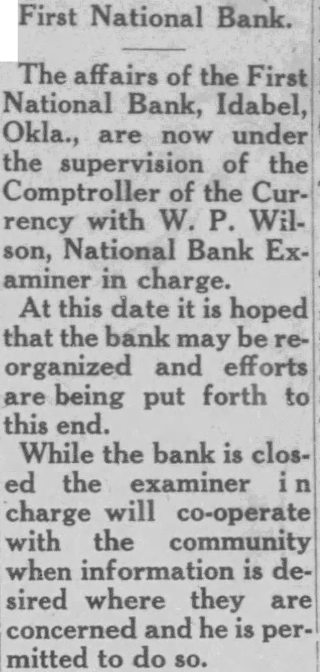 (First published March 3, out April 1926) IN THE DISTRICT COURT WITHIN AND FOR THE COUNTY OF McCURTAIN STATE OF OKLAHOMA. No. 5981 Jacob A. Salmon, Receiver of the First National Bank of Idabel, Oklahoma, Plaintiff, vs. Love, Clevia Love, Love and Virginia Love, NOTICE BY PUBLICATION THE STATE OF To: Love, Clevia Love, Love and Virginia Love, YOU AND EACH of you, the defendants, J. Love, Clevia Love, C. H. Love and Virginia Love, will take notice that on the 10th day of February, 1926, the above named plaintiff, Jacob Salmon, Receiver the First National Bank of Idabel, Oklahoma, filed in the District Court of McCurtain County, Oklahoma, his petition, against the defendants, Love, Clevia Love, H. Love and Virginia Love, others, and that you the said G. LOVE, CLEVIA LOVE, C. H. LOVE and VIRGINIA LOVE, must answer the petition of the plaintiff filed said cause against on before the 16th day of April, 1926, or said petition will be taken as true judgment in said against said defendants, Love, Clevia Love, C. H. Love and Virginia Love, and estab lishing that there due and owing to the plaintiff the sum of $6500.00 on gold bond notes executed by the said Love, Clevia Love, C. Love and Virginia Love to the Oklahoma Farm MortCompany, bearer, dated gage December 10th, 1920, due and payable December 1925, and the further sum of $455.00 on interest coupons notes, and the of $650.00 attorneys fees, and taxes paid by plaintiff, and further decreeing and establishing that the Deed Trust, executed, and by the defendants, Love, Clevia Love, H. Love and Virginia Love, dated 10th, 1920, and given secure the payment of the above mentioned sums money, is valid subsisting first lien upon the property described therein and described follows, to-wit: and Section 16, and Section 20, and Lots and of Section 21, all in Township South, Range 24 East, in McCurtain County, and that the plaintiff is the owner and holder thereof, and judgment rendered further said Deed of Trust, and ordering the above described real estate sold, without according law, satisfy the above indebtedness, and barring you and each you, the Love Clevia Love, H. Love and Virginia Love, and all persons claiming by through or under you or any of you, from serting or claiming any right, title interest in and to above described estate since the of this action. this 2nd day of March,