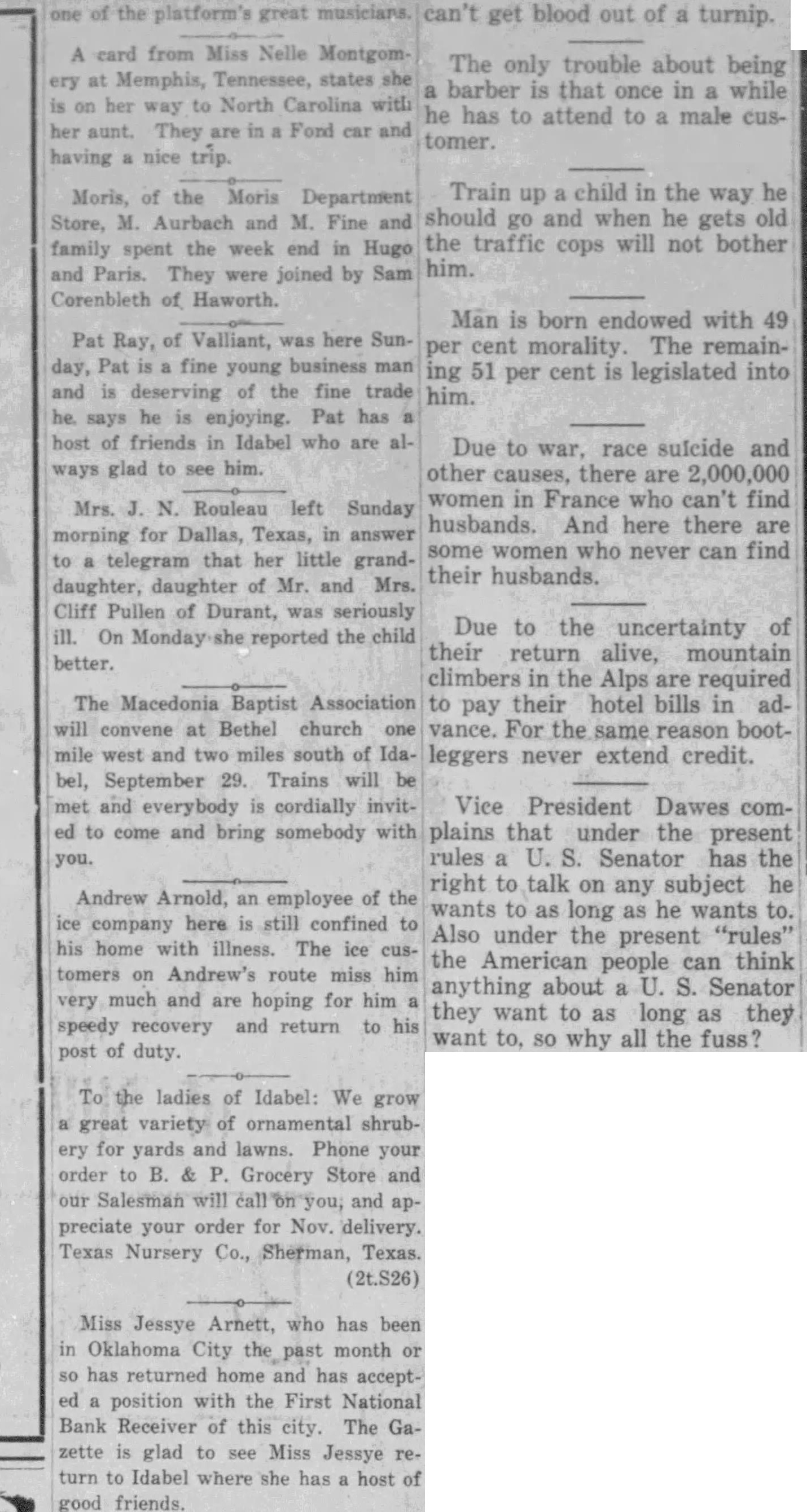 The 1926 bathing suit styles now running in the papers look very promising. Conservatism seems to be the motto. everybody's business makes living in Idabel to help constantly in the making of it a greater town.