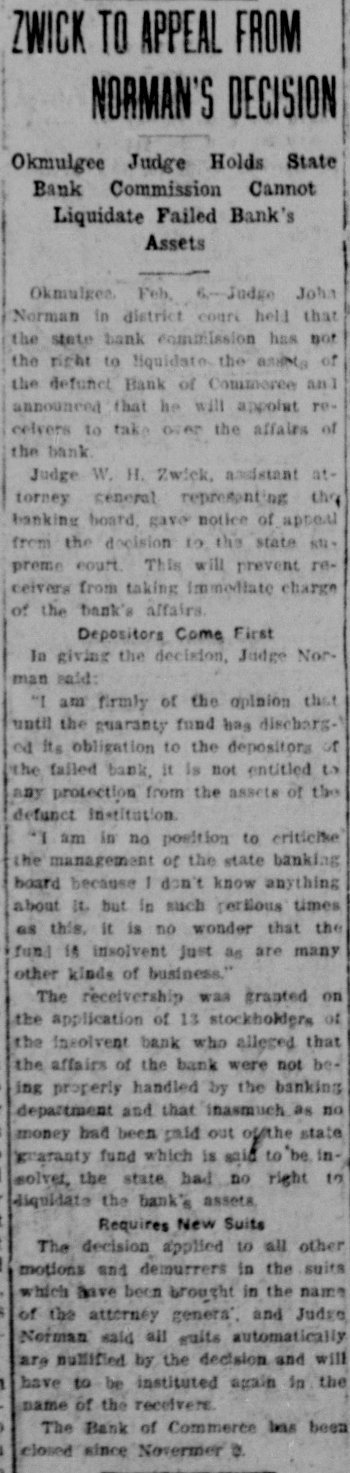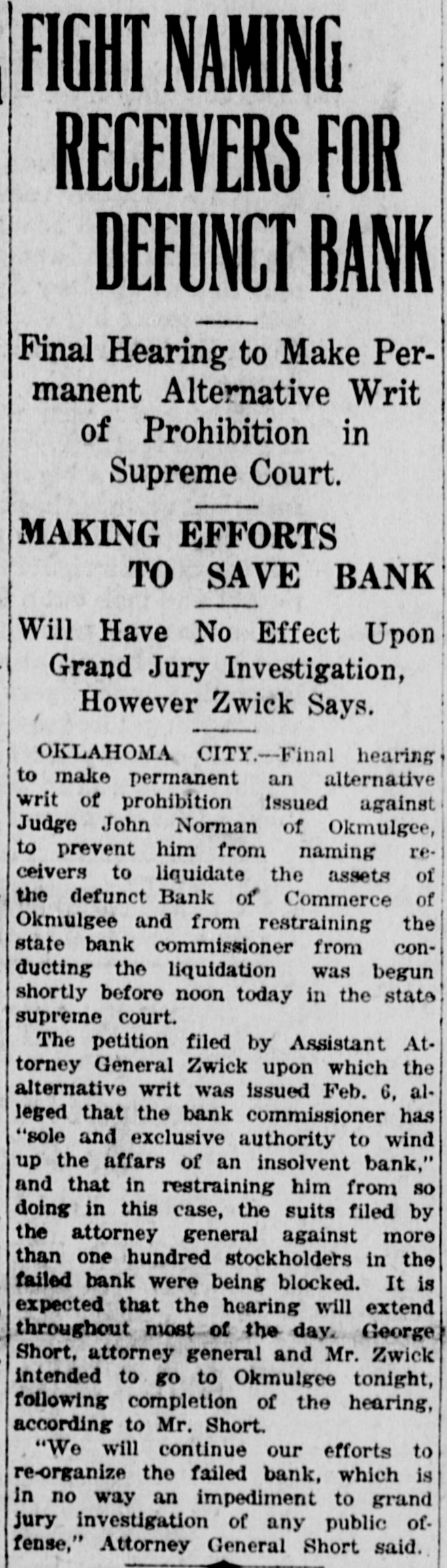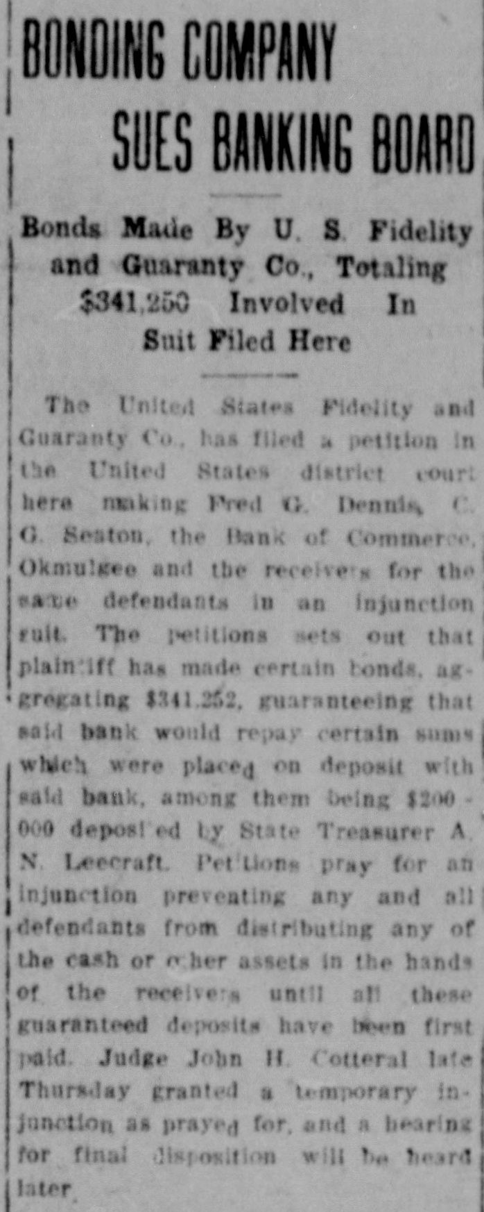 "It is not the purpose of the receivership to destroy the paper," said Grant, "but to save it. The receivership will be granted. The court will see to it that the bondholders do not foreclose. They'll appoint a labor man whom the unions can trust and who will have the confidence of the public as well."