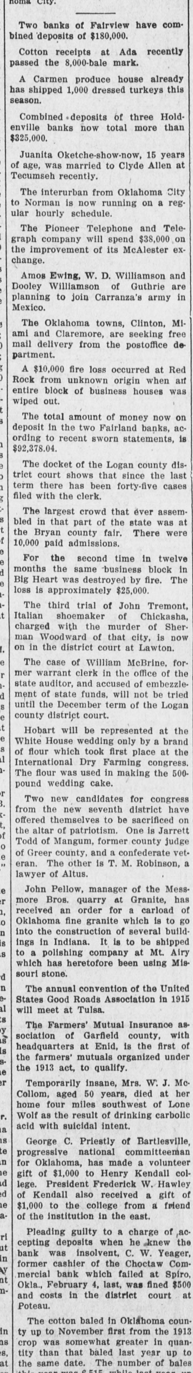 Amos Ewing, W. D. Williamson and Dooley Williamson of Guthrie are planning to join Carranza's army in Mexico.