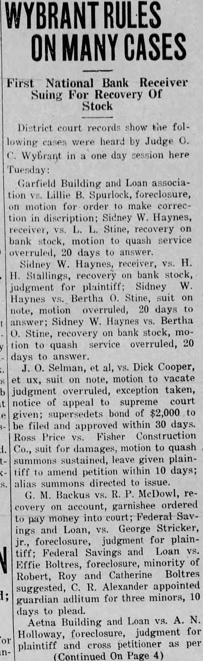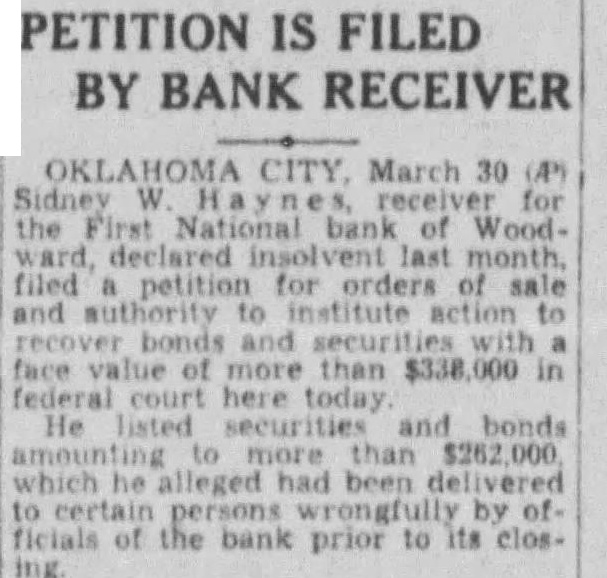 Bertha 0. Stine, L. L. Stine, and Sidney W. Haynes, Receiver of the First National Bank of Woodward, Oklahoma, Defendants.