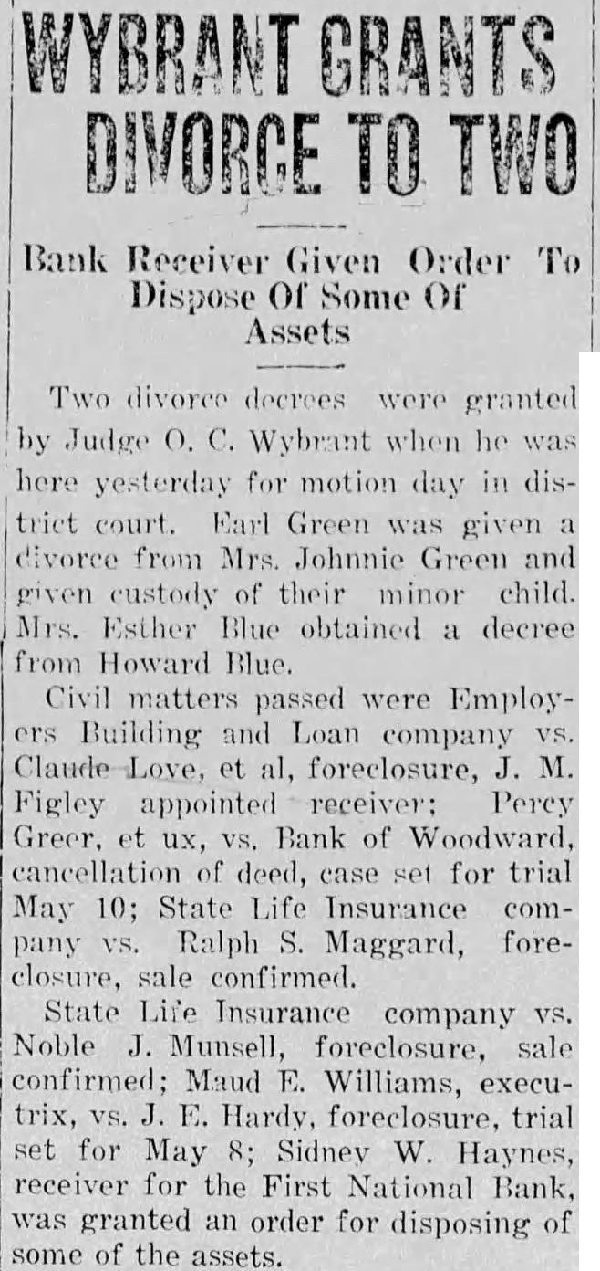 STATE OF OKLAHOMA County of Woodward IN THE DISTRICT COURT