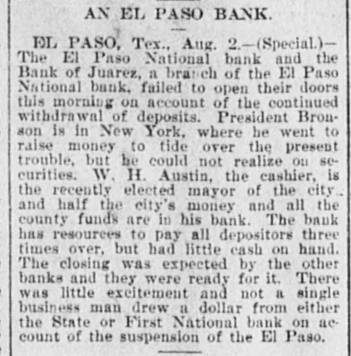 Mr. Carlisle Has Plenty of Gold. THE RESERVE MADE GOOD. There Is a Surplus in the Treasury, and Millions More Are on the Way. Special to THE MORNING CALL WASHINGTON, Aug. 1.-For the first time since April 20 last, when the gold reserve fell below the $1,000,000 mark. the reserve in amounts or is 701,370 the treasury has $791,370 been to-day made free gold. good. This The to gold gold $100,from Europe, Mexico and the West Indies, much of it being gold sent out from the United States during the late spring and early summer months. Information in treasury circles indicates that there is $10,000,000 now on its way from Europe to the United States and most of this, it is expected, will find its way, as usual, into the treasury. While the gold reserve is intact and the free gold is climbing up, the treasury net balance is declining, it is stated to-day the amount being $17,251,000. The receipts, too, for the past two days have been disappointing, business troubles throughout the country having an effect upon the Government revenue. Everything that situation. after can be a done conference Secretary being done in Carlisle New to relieve York to-day. with the eminent financiers, directed acting Secretary Curtis to send the following telegram to the 150 bank depositories throughout United States: Your authorized balance is hereby fixed at par of security. Transfer the excess. whenever practicable, to the nearest subtreasury." "This action of the Treasury Department will release to the banks about $900,000 and is intended, as far as practicable, to relieve the financial stringency prevailing in the country. The circulation statement issued by the Treasury Department to-day shows the amount of gold and silver coin and certificates, United States notes and national bank notes in circulation on August 1 was $1,611,099,117, an increase during the month of July of $17,237,606. The increase during the last twelve months was, in round tigures, $9,000,000. The per capita circulation, based on an estimated population of 67,066,000 on August 1. was $24 02. Three national bank failures were reported to Comptroller Eckels this morning. The E1 Paso National Bank at E! Paso, Tex., capital $150,000; the First National at Birmingham, Ala., capital $250,000; the Waupaya County National Bank of Waupaya, Wis., capital $50,000. The Birmingham and El Paso banks carried quite a heavy line of deposits. Thomas A. Marlow was to-day appointed receiver of the Montana National Bank at Helena. NEW YORK, Aug. 2.-Frederick D. Tappen, president of the Gallatin National Bank and chairman of the Clearing-house loan committee, said to-day that several large national banks were going to buy some of the United States 4 per cent bonds held by the savings banks and take out currency against them. "There was no syndicate nor concerted plan by the Clearing-house banks in the matter," he said. "It was simply individual action between the banks. It was expected the banks buying bonds would get them for a little less than the current market rate, because if the savings banks were compelled to put a large amount of their bonds on the open market the price would certainly be forced down to 104 or 105, and perhaps even less." This afternoon Secretary Carlisle junched with Sub Treasurer Jordan and ex-Secretary Fairchild. Later he visted the sub-treasury and customhouse. He met no bankers and said he had DO opinion to express on the financial situation or the probable action of Congress. He said he, personally, was in favor of allowing the national banks to issue circulation to the par value of the bonds deposited as security. There was no likelihood of any action by Congress on that point at the extra session. however. DENVER, Aug. 2.-T. E. Jeffrey, president of the Rio Grande, was to-day appointed receiver of the Rio Grande Southern. on application of Otto Meyers of the latter. MILWAUKEE, Aug. -An official notice has been issued by the St. Paul Railway ordering a cut of 10 per cent in the wages of all employes of the commercial department whose pay exceeds $50 per month. ELYRIA, Ohio, Aug. 2.-The Lorain Manufacturing Company, the largest brass works in the country. has failed; assets $192,000, liabilities $125,000. CHICAGO. Aug. 2.-Adam Smith & Co., wholesale liquor-dealers, have assigned. Assets $150,000. liabilities $125,000. NEW YORK, Aug. 2.-Sulzbacher, Gitterman & Wade, importers of woolens, made an assignment to-day without preferences. The business is an d-established one, having been founded in 1856. In 1878 they were estimated to be worth $1.000,000, but the business bas fallen off, and lately the capital was estimated at only $230,000. The attorneys estimate that the liabilities are $120,000. with assets nominally the same.