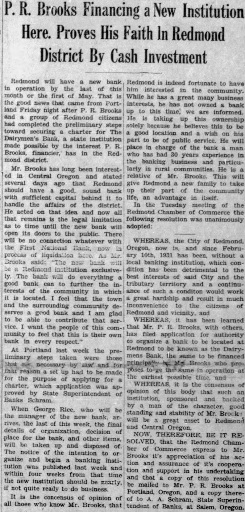 (Continued from Page One) cient help and partly to the improper and unsystematic organization of the office work It Was observed that the personnel did considerable work after dinner in the evenings which should not be necessary number of small errors were found in some of the records which we have taken up directly with the office for correction Deposit Unprotected "Exhibit seven shows statement of the cash collections of the assessor's office during the ix months under review "At the time of the closing of the First National bank of Redmond the assessor had deposited in the bank under the name of August A Anderson, assessor, the sum of $265.50 of county funds Mr Anderson stated that he was under the impression that his deposits, as assessor. were protected by blanket security held by the county treasurer The bank receiver states that this deposit is not protected by curity, and if he is correct, the county or Mr Anderson will stand to lose portion of this deposit Regarding loan from the school fund to the county general fun: the audit report states "On December 22, 1930. there was entered as " receipt in the general fund the sum of $4,582 received from the state for forest rentals This sum belongs to the county school fund and we have shown it in the current fund balance sheet as liability due to the county school fund $60,900.50 in Receiverships Deschutes county funds now in the First National bank of Bend to- OWN