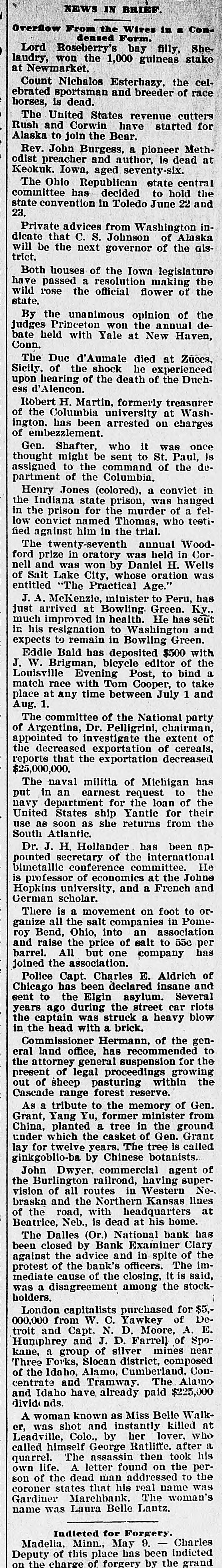 At Baker City Monday Earl Wisdom and J. L. Ash, ex-policeman, were found guilty and fined $500 and $50, respectively, or one day's incarceration for each $2. They were canvicted recently of having extorted license money from Chinese while in office and appropriated to their own use.