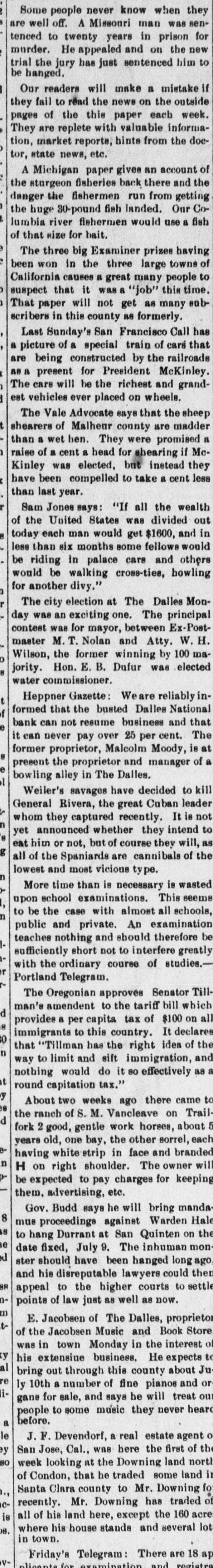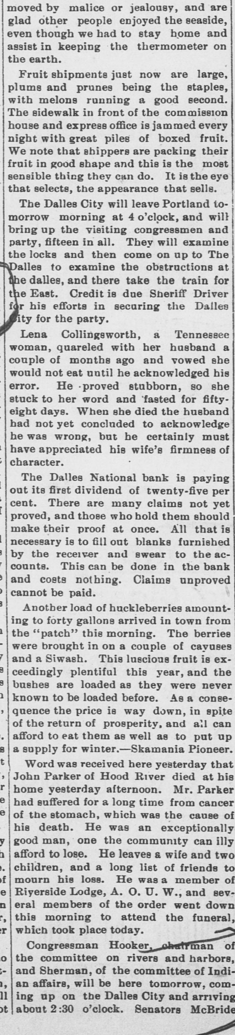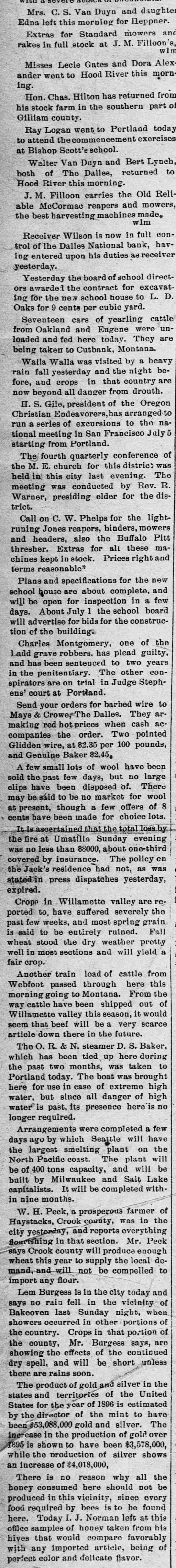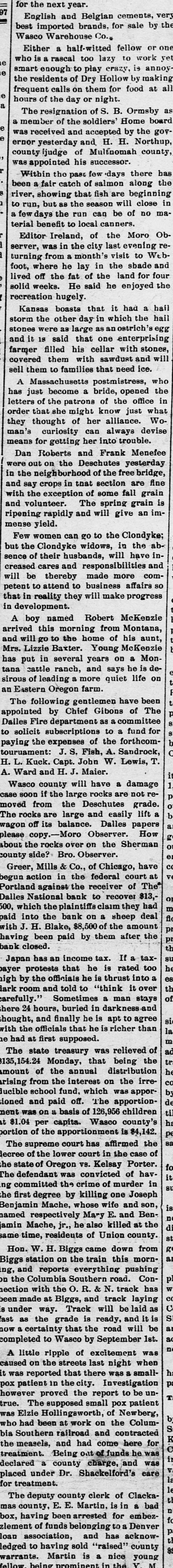 R. D. Stone, of Wasco, was in the city today. Like all other Wascoites that come to The Dalles, Mr. Stone declares that town is the liveliest place in the Inland Empire this year.