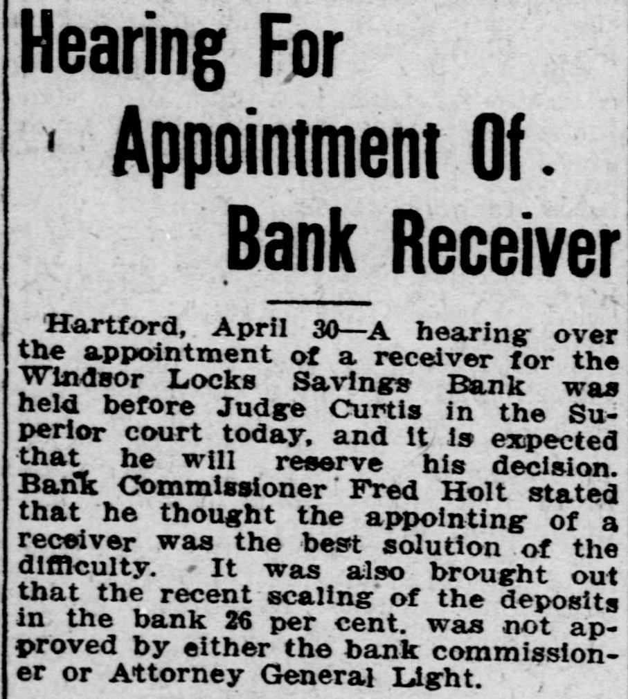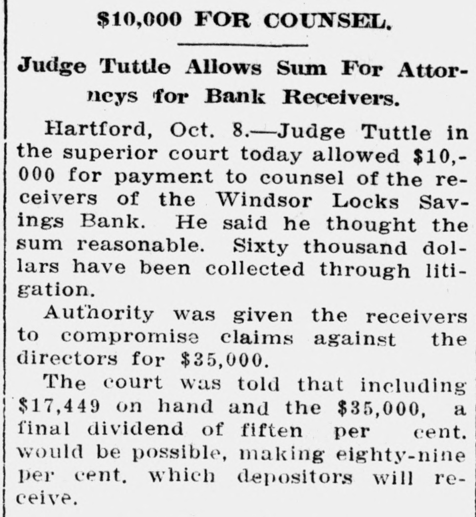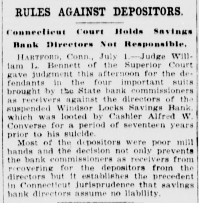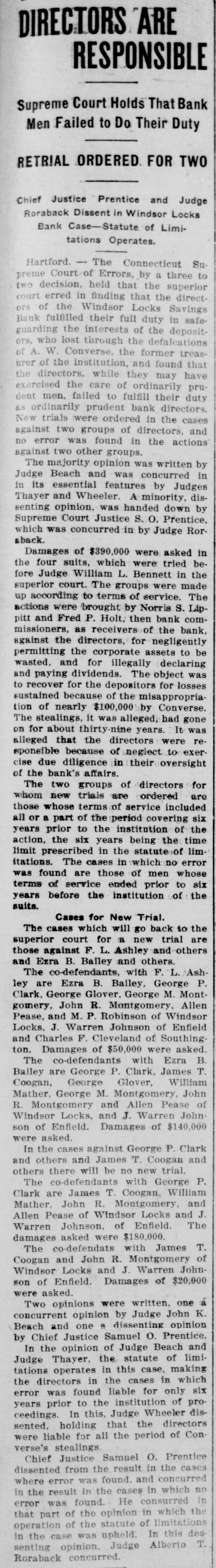 Chief Justice Prentice and Judge Roraback Dissent in Windsor Locks Bank Case-Statute of Limitations Operates.