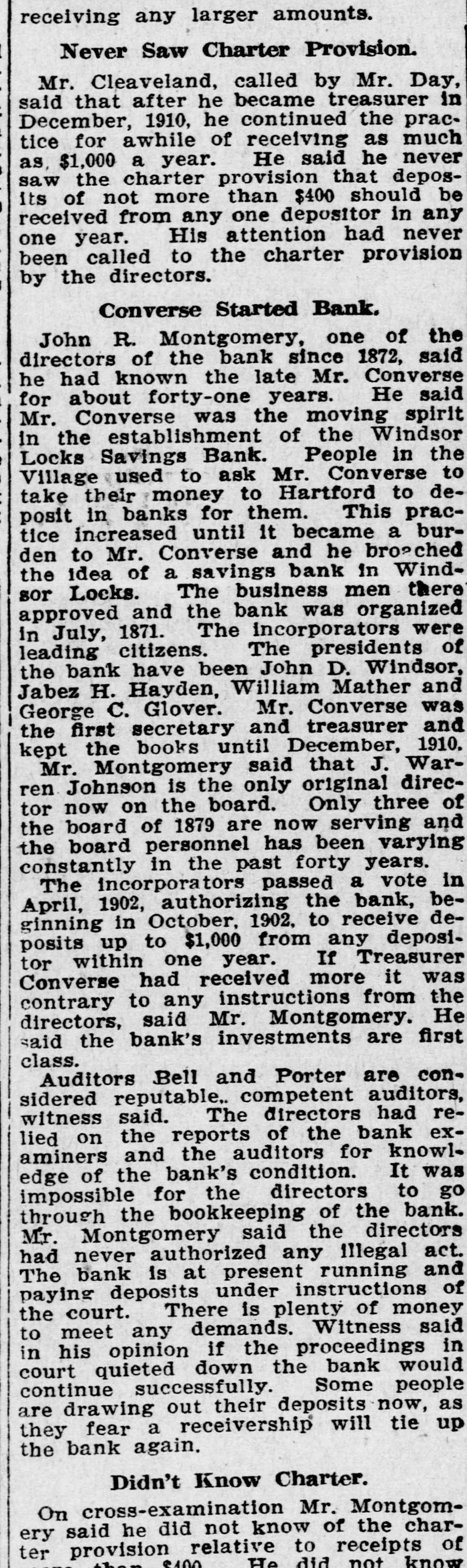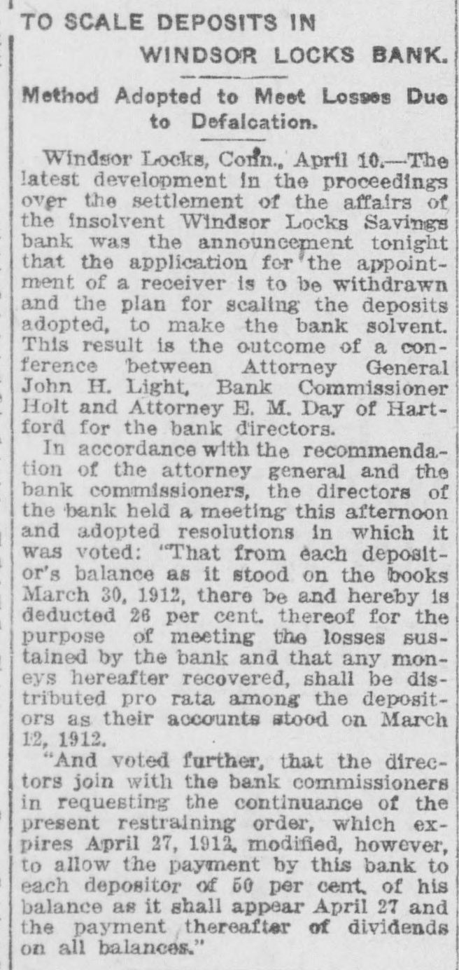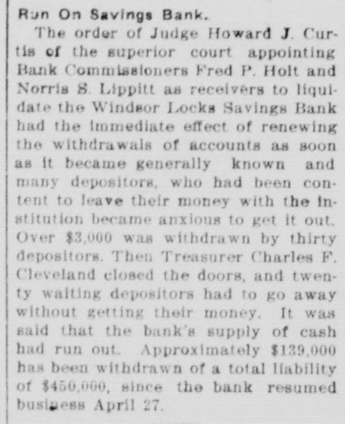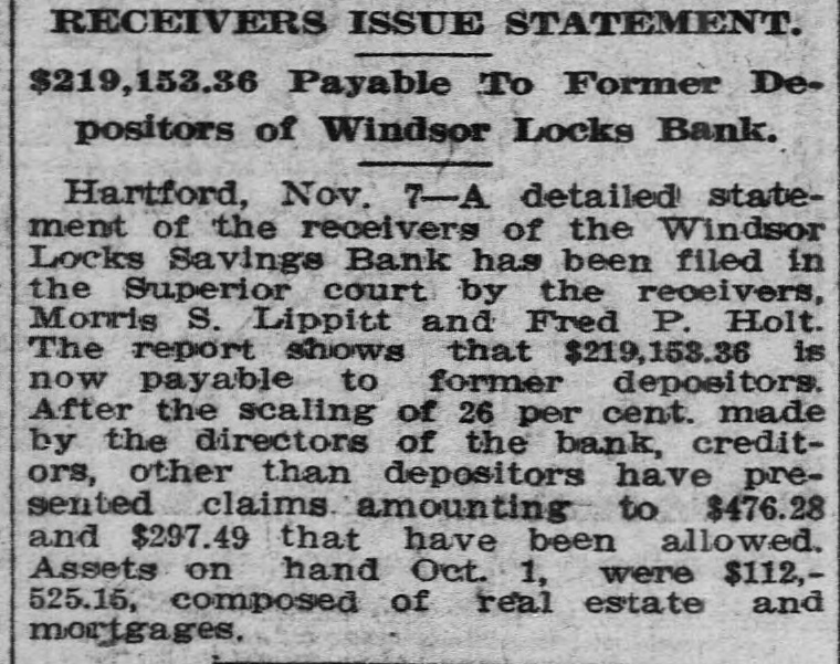 Chief Justice Prentice and Judge Roraback Dissent in Windsor Locks Bank Case-Statute of Limitations Operates.