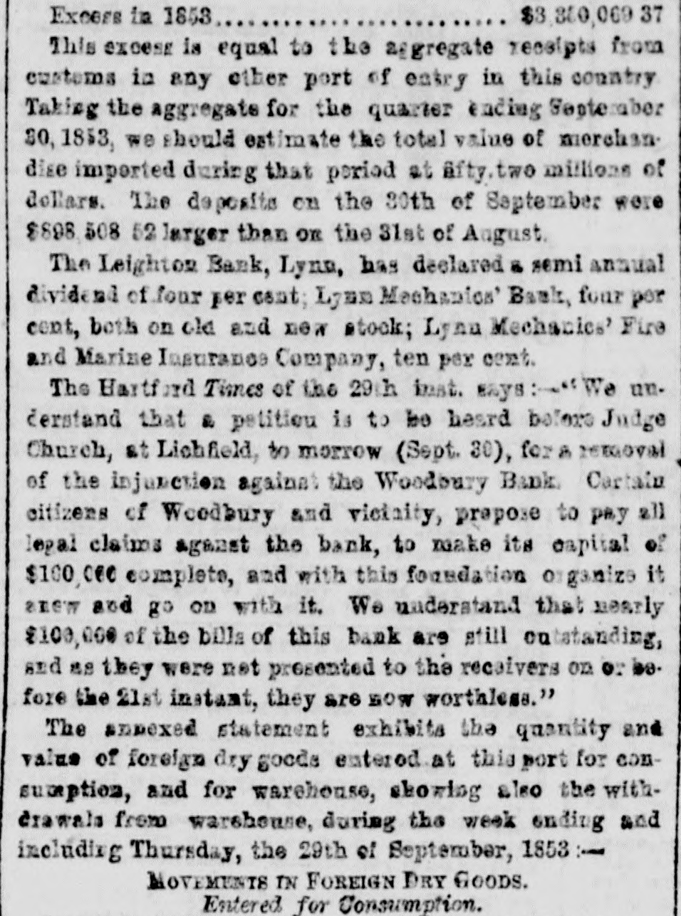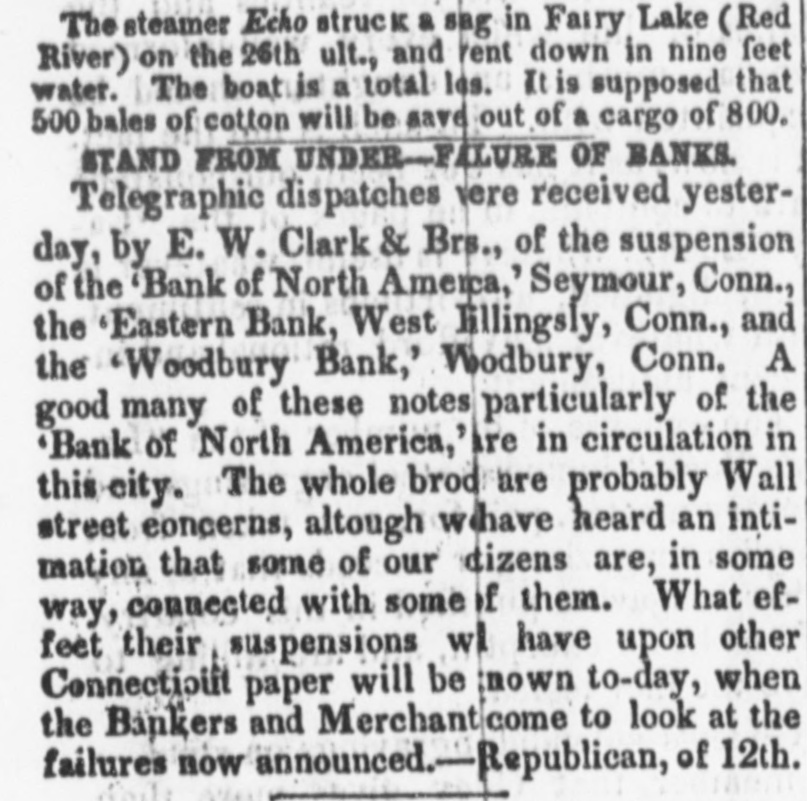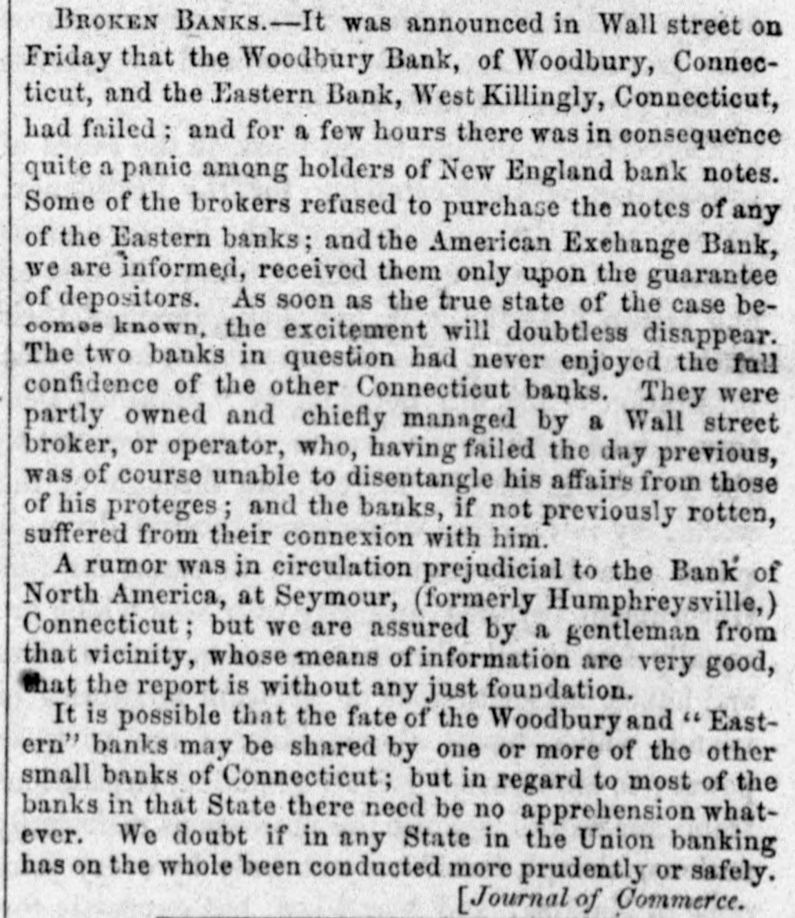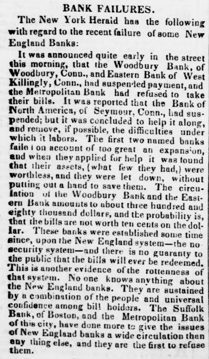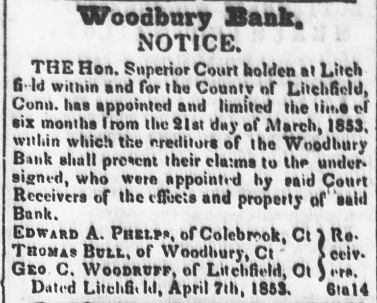 Thompson's Reporter says-The Woodbury Bank, Connecticut, was thrown out by the New York Banks od Thursday.
