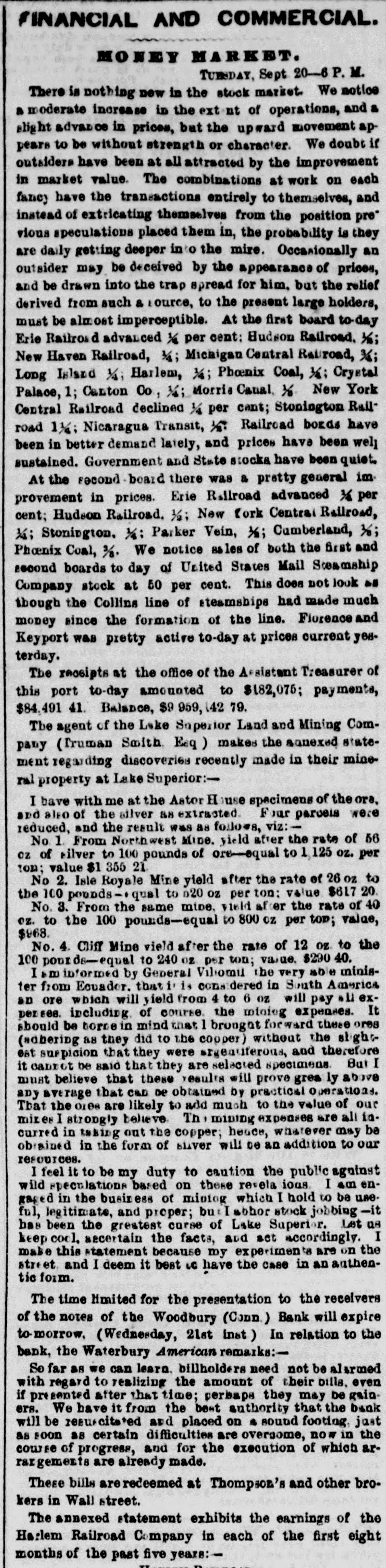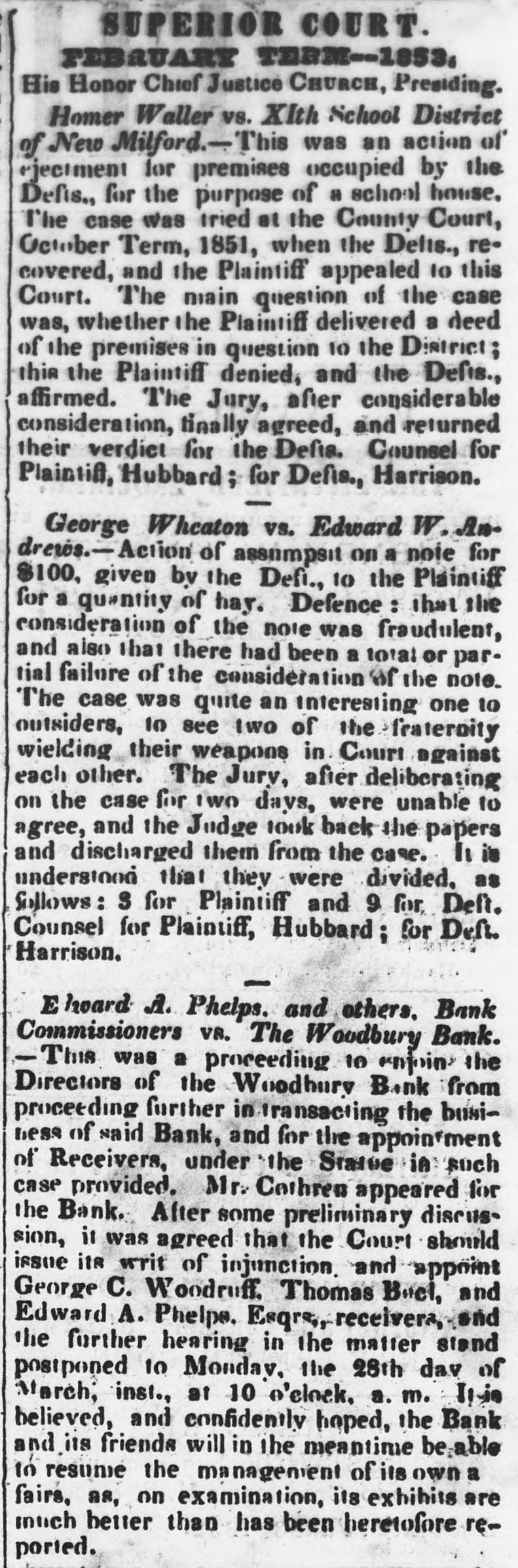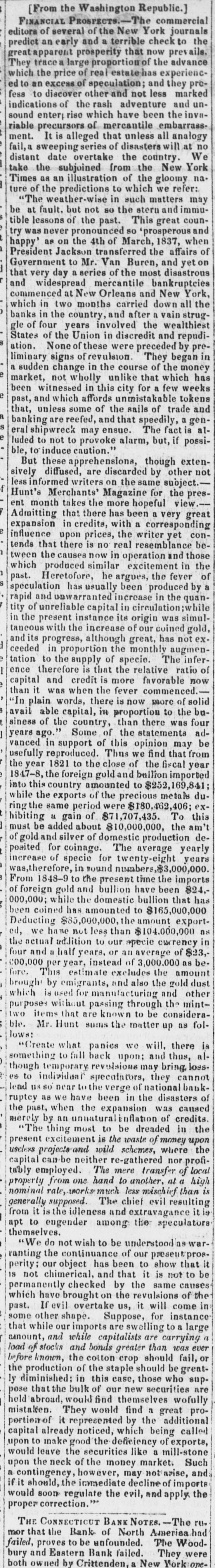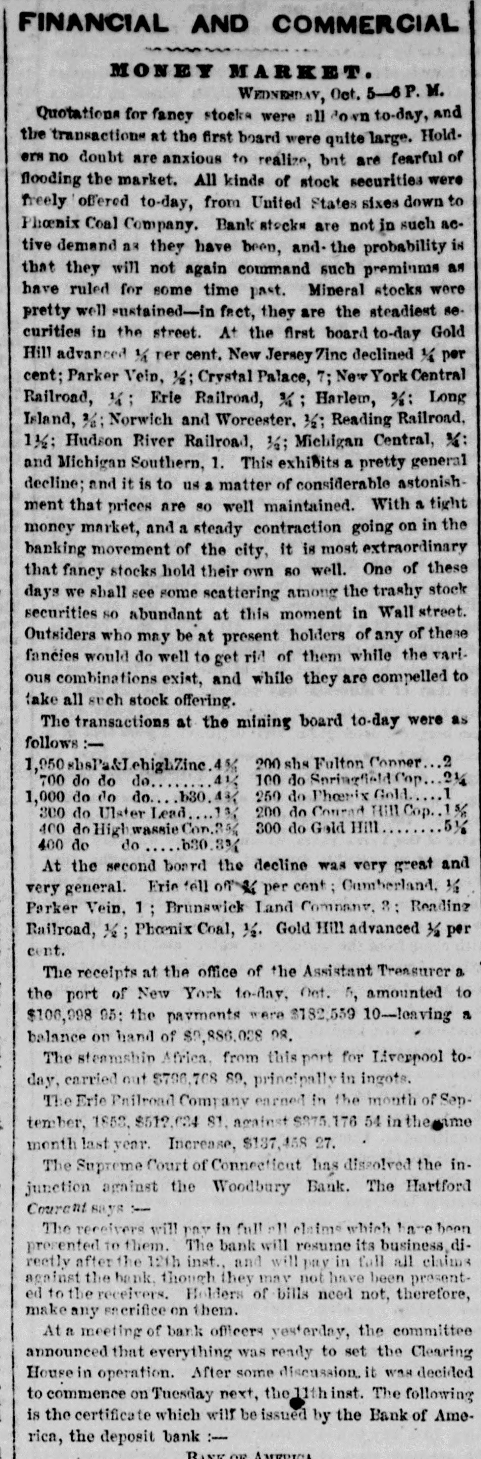 Thompson's Reporter says-The Woodbury Bank, Connecticut, was thrown out by the New York Banks od Thursday.