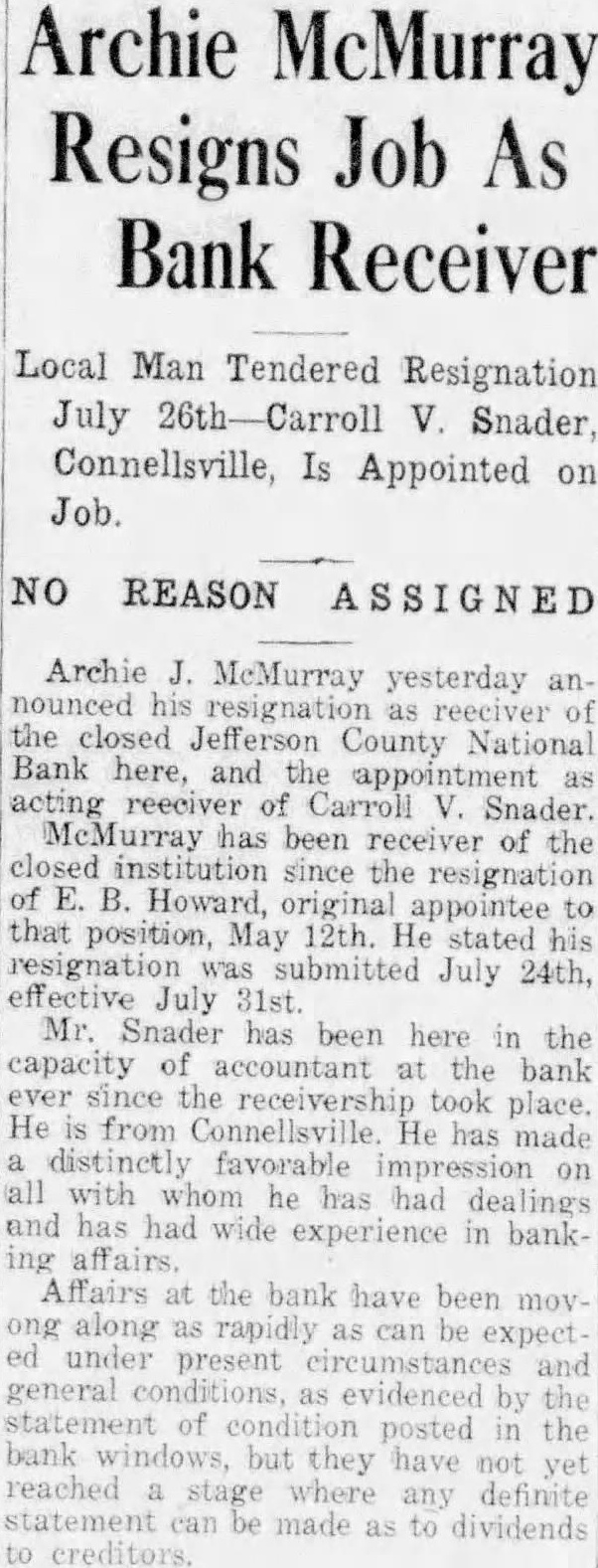 REPAYMENTS Greater Than Loans. R. F. C. Reports Operations For Third Quarter. Closed Banks Get $122,500,000 Of Since For mation 2.6 Billions. Washington, November -The Reconstruction Corporation received more money in repayments during the last three months than it loaned to aid business and agriculture. A summary of the corporation's report for the third quarter, ended September 30, disclosed today that it had disbursed and received repayments totaling $238 186,400 that the corporation had nearly half mil lion dollars less outstanding than June From the time of its formation February the corporation has disbursed authorizations totaling During third quarter the corporation loaned and trust companies of which $122,500,226 reorganization or liquidation of closed banks. Loans Are Iltemized. Loans to building and loan associations insurance companies, $1,525,100 credit unions, $20,663,842 joint stock land banks. corporations, $470,520; rediscounts for gional agricultural credit corporations, $30,015,863; Federal land banks, $5,000,000; credit corporations, $400,000, and railroads Under the 1932 Emergency Relief Act, 19 loans aggregating $55,355,293 authorized and under another section $53,880,543 loaned for financial sales agricultural surpluses foreign markets and to finance orderly keting agricultural commodities and live stock banks on preferred during the quarter totaled and subscriptions for preferred banks companies $19,337,500 The corporation purchased of bank debentures. Cotton Loan Listed. In connection with the stock was said that September 30 many millions of dollars and debentures either have their purchase authorized During the quarter the Secretary of Agriculture allowed $3,500,000 with which purchase The opening National Banks during the first 10 days of Novem announced by D'Connor to have restored $16,084.000 in deposits. During the same period six National Banks had their reorganization plans approved by the Treasury. involving $2,825,000 The reported that with zation have been declared insolvent and appointed These the Jefferson County National Bank of Brookville, Pa., with and the Central City Bank of Central City, Neb., with $98,000 in deposits.
