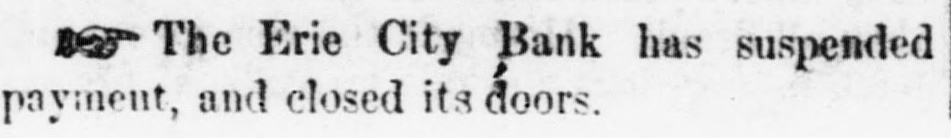 100 The Erie City Bank has suspended payment, and closed its doors.
