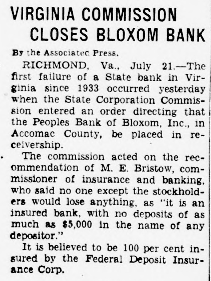 dent's chair for 12 years at the time of his death The election took place at the July meeting of the directors, Mr. White at that time being one of the vice presidents and cashier of the bank. Born in Washington and connected with bank almost since boyhood he had long been in direct contact with every phase of banking. He entered the banking business on June 8, 1885, at the age of 18 years. Starting as a clerk, he was soon called upon for general utility work, then filled the positions of pay and receiving tellers and of note teller. After being assistant cashier for three years he was elected cashier in July 1923, taking on the additional duties of a vice president in 1933. From the time of his graduation at Gonzaga College, he has always been a close student of finance, always keeping up with the latest developments in banking. He is an unusually good example of what enthusiasm, application to business and ability can accomplish over a period of years. Second National 65 Years Old. The Second National Bank obtained Its charter just 65 years ago tomorrow. July 24, 1872, it was noted by officials today. The bank opened its doors for business on September 11. For many years the main office was on Seventh street, but on the election of John A. Reilly to the presidency, in 1936. the head office was moved to the branch at 1331-33 G street Victor B. Deyber, now chairman of the board, was president of the bank for many years. The first president was J. C. McKelden. he being succeeded by Mathew G. Emory. who held the office 25 years and had the distinction of being known as the "last Mayor of Washington Aside from Chairman Deyber and President Reilly the other officers are William M. Hannay. Jacob Scharf and Julius E. Loh, vice presidents; Edward F Colladay. counsel and trust officer: William B. Wolf, assistant trust officer: Frederick F. Beyer, cashler: Gerald E. Keene and Stuart S Ogilvie, assistant cashiers, and John R. Higgins, controller Steele Wins Spaid Trophy. Lundeen V. Steele of the Washington Loan & Trust Co. won the W. W Spaid Cup golf tournament of Washington Chapter, American Institute of Banking, by defeating Aubrey o Dooley of the Hamilton National Bank 2 up in the final match, played July 21 at Indian Spring Country Club John M. Christie, Riggs National Bank, turned in low net score for the tournament. Steele, in winning the cup this year, retains permanently the Spaid trophy, inasmuch as the new champion had previously won it twice. All arrangements for the tourney were made by George M. Rowzee, jr., of the Lincoln National Bank. D. C. Bank Clearings Mount. The Washington Clearing House reports clearings of $25,842,778.32 for the week ending July 21, as compared with $21,604,788.83 in the same week a year ago, or a gain of 19.56 per cent. Clearings also showed an increase of $519.509.64 over the previous week this year Wrendo M. Godwin, Bloxom. Va., attorney, has been named receiver for the People's Bank of Bloxom by the Circuit Court of Accomac County. The bank was placed in receivership at the instance of the Virginia Corporation Commission. Its deposits are insured Paul Primm, president of the District Life Underwriters Association, and James A. De Force are making up a delegation of underwritters to attend the forty-eighth national convention to be held in Denver August 23 to 27. The program calls for addresses and discussions of every phase of life insurance. Acting Secretary Magill has asked for tenders on two series of Treasury bills which aggregate $100,000,000 and which will be sold on a discount basis to the highest bidders. Tenders will be received by Federal Reserve Bank and branches until 2 p.m. Monday. Insurance Sales Go Higher. Life insurance in Washington in June were 17 per cent higher than in June, 1936, and 13 per cent better in the first six months of the present year, compared with the like period a year ago, the Life Insurance Sales Research Bureau, Hartford, reported today This was better than the national average gain of 2 per cent for June and 8 per cent for the six months. Potomac Electric Power 6 per cent preferred stock sold at 113 on the Washington Stock Exchange today and the 51/2 per cent preferred at 113 1/2 Capital Transit opened at 101/4 and closed at 10 flat The new listed Columbia Country Club first 41/4 again saw a bid of 103, with none offered. The recent report of the Federal Deposit Insurance Corp. for the year ending December 31, 1936, reveals that on December 31 the corporation was insuring more than 21 billion dollars of deposits to the credit of more than 50 million depositors in 14,029 banks. Total deposits of these banks amounted to more than 50 billion dollars. Net earnings of the Capital Transit Co. showed improvement in June, when profits reached $37,538.45, a gain of $2,828.52 over June, 1936, according to the monthly statement filed this noon with the Public Utilities Commission. Revenue passengers carried on the company's street cars and buses in June numbered 13,932,047, as compared with 14,606,564 in June, 1936, a drop of 674,517, or 4.6 per cent. Capital Transit's net income in the first six months of this year totaled $122,185.77. a gain of $98,070.39, or 406 per cent, the report said. NEW YORK BAR SILVER. NEW YORK July 28 (A).BER silver