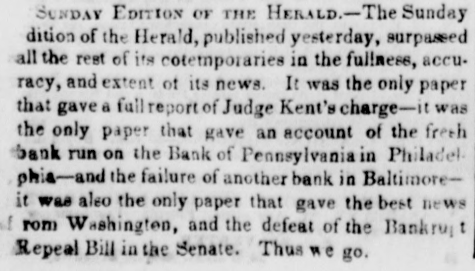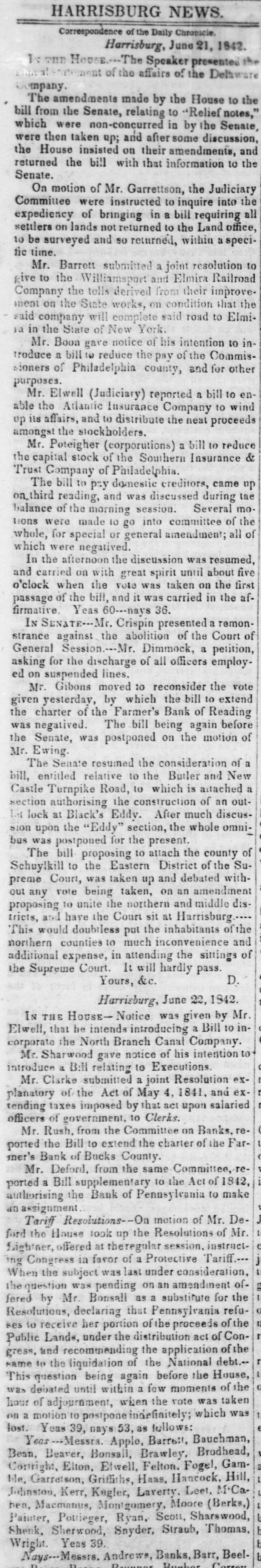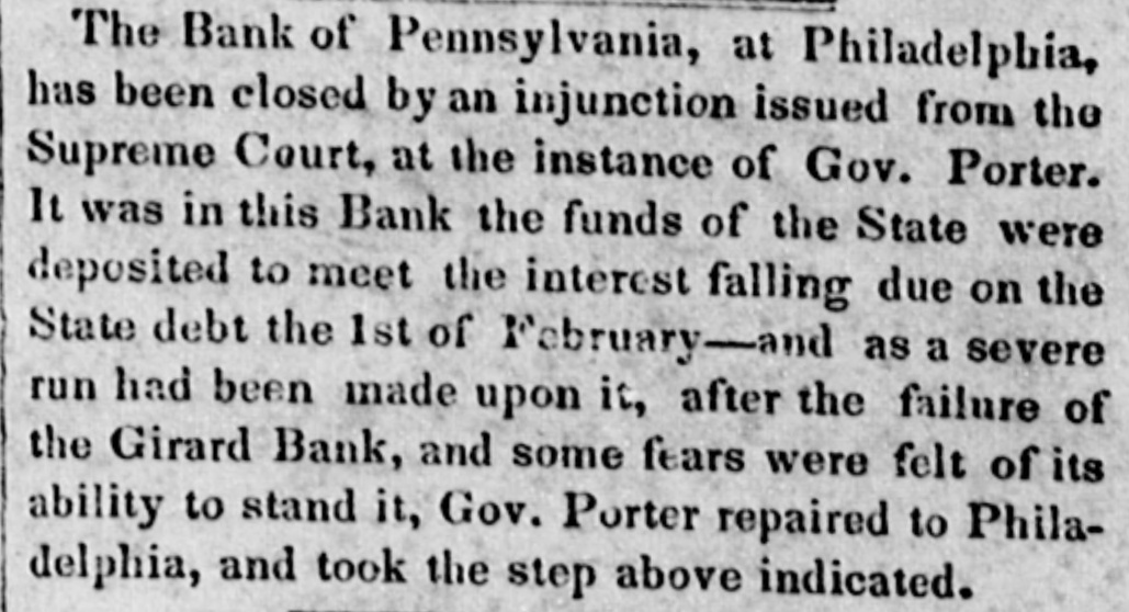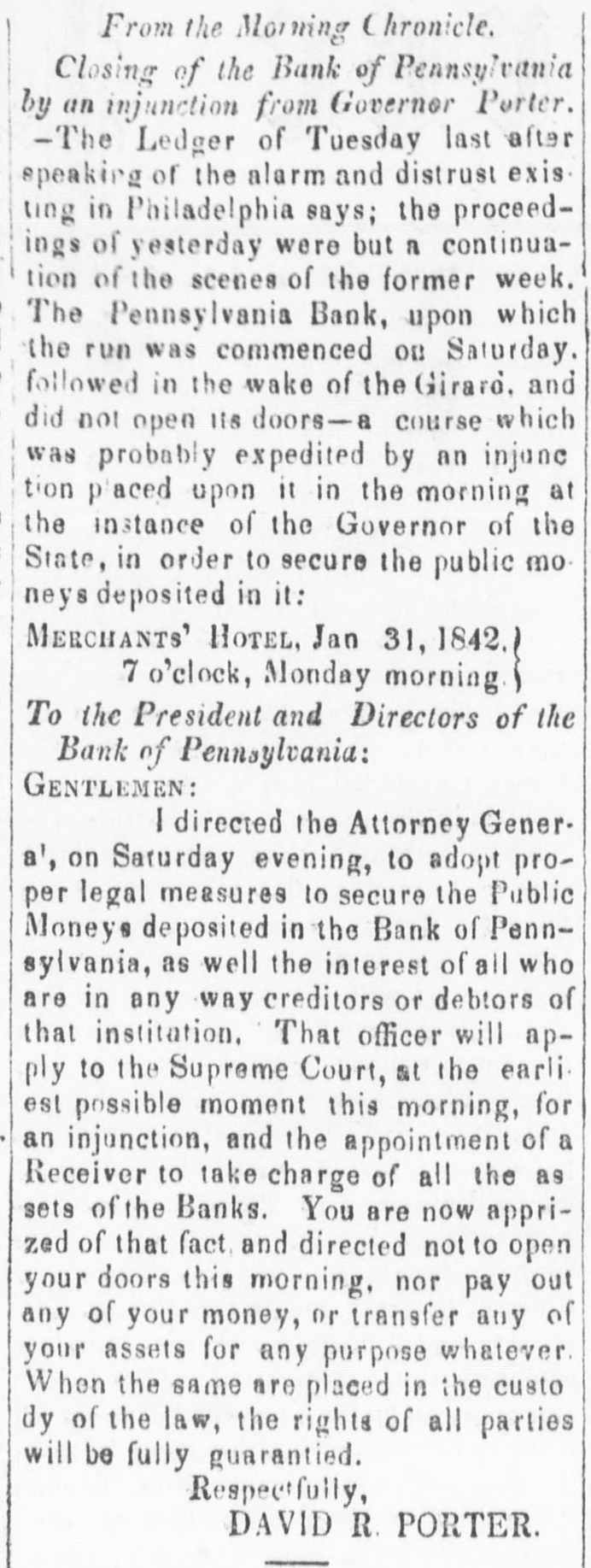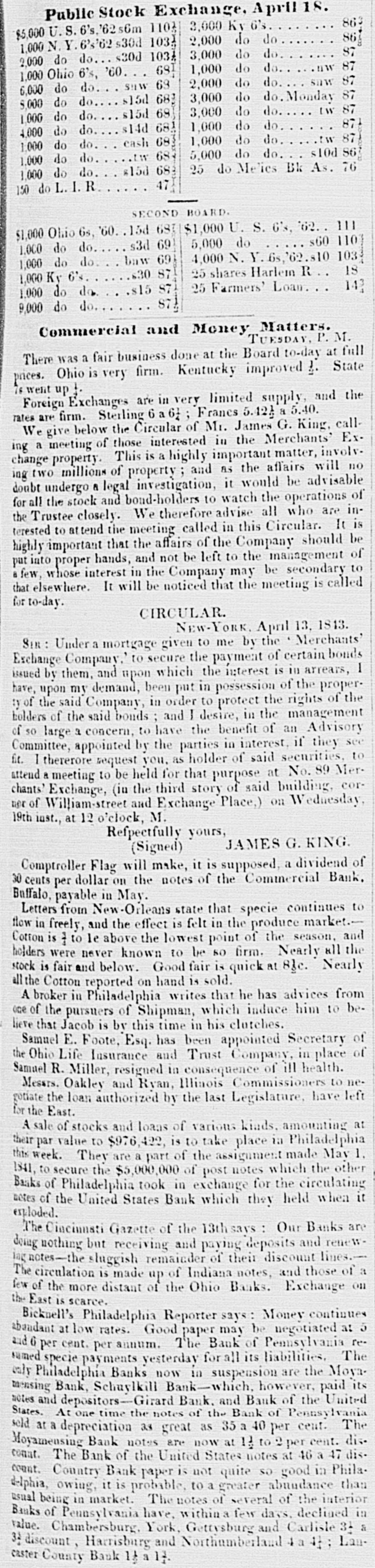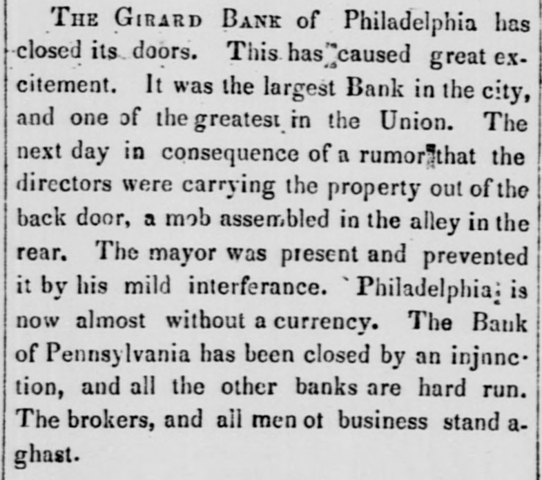 and worn through the streets, the man being followed by a troop of hurrahing Vanites. This insult to the ladies and to every American heart, was treated by it the whigs with that contempt which merited. From the fact of his appearing at his hotel we leave the public to judge whether there is not ground for the belief that Allen suggested or approved of it. Mo. Republican. BANK.-Resumption of Specie Payments.-The Philadelphia Inquirer of Saturday say: We learn. with pleasure, that an arrangement is now in progress between the U.S. Bank and other Banks of Philadelphia, which is likely to have a considerable effect in reviving public confidence. In order to facilitate and render certain a general resumption of specie the Philadelphia loan the U. S. Bank payments, fered to Bank $1,000,000; has ofof a the Bank Pennsylvania has made the similar offer, and a proposition to was yesterday the Farmers' and same rectors effect of before Mechanics' the Dibank. The U. S. bank is indebted to each of the others. both in bank notes held by them and balances. The plan is, smaller banks to return payto the extent for the on demand, of notes $1,000,and to receive in able 000 each, exchange if post in a year, or longer, neThis will, of course, notes, cessary. payable bank, and reduce great the liabilities of the U. S. ly assist her in the resumption of specie payments. It is believed that the other of Philadelphia will also particiin this generous work, in about a sist pate banks bringing condition and of thus things well asearnestly desired by all who wish to so and character of PhiladelThe details of the have not, as yet, been phia. the business thoroughly arrangement arranged, but we believe it is contemplated to effect a reduction of the immediate liabilof the larger bank, to the extent of millions. The Eastern great to ities four have or professed five willingness resumption, banks assist Pennsylvania in the work of it is to be hoped that, if necessary, will now act in the spirit The best ex- of and they professions. understanding institutions of their ists among the moneyed the Philadelphia at the present time, and Cur prospect is certainly encouraging. money market continues easy. The keenness with which the Presi- the dential contest is carried on, all over Union, says the St. Louis Gazette, New may be judged from the excitement in are York. The people, on both sides, collecting en masse. Meeting after meetBennet says: ing is the order of both, day and night. The political excitement of the country closincreases every day. The week just to has added masses of fresh elements thousand ing conflagration, just like a fire the cords of dry hickory thrown upon a in Broadway. Mr Webster's remarkable, curious, has oriShaksperian at Patchogue, and asionished ginal and bewildered every body, and the democracy almost insane his hufrantic made with vexation. His wit, set the his flashes of sarcasm have mor, Custom House beside themselves-given of the fresh dash of vinegar to the poet a Post-and called forth the strongest'e down. of Silas Wright to sober them excitaYork was never in an the country rewide so ble forts New condition-nor such far and crazy. Distinguished of men Queen the good old language and turn to call their opponents "come Bess, flog them if they will and threaten arm's to length"--while leading return reinto officers of the government sink a and threaten to as the the forehead of the foe, ligious compliment, in General Har- little in stone David did to big Goliah. thing ( General Jackson, every abroad, runrison, of man or beast, is singing the shape races, speaking writing, highest ring and electioneering. The have alsongs, lowest of both parties lost their most and the lost their senses-and some sobriety. JONSING ON BANKING SAM two old friends, Sam Jonsing Com- and The Gumbo, met last night at the their disPete Bank. The burden of and mercial appeared to be upon banking, throwing course of which we published as has nea part light upon this subject which new ver been touched by Gouge.