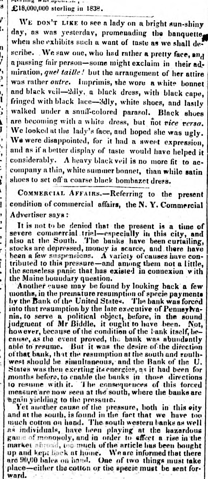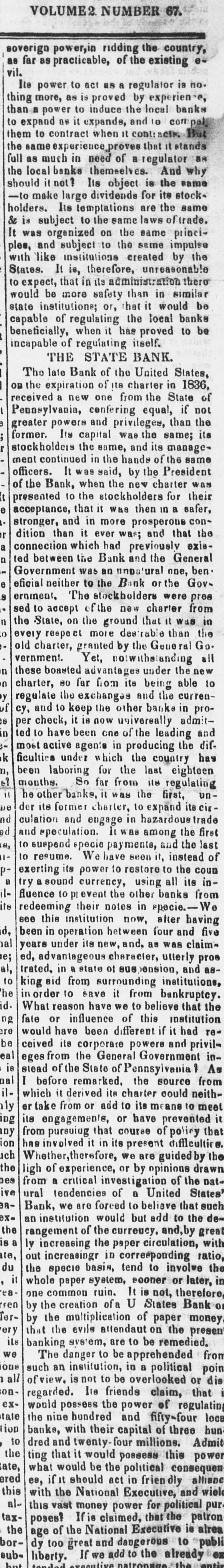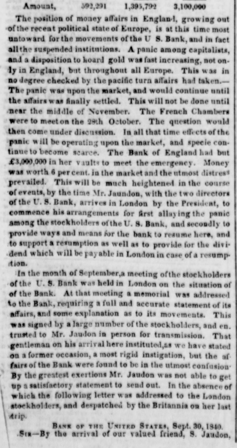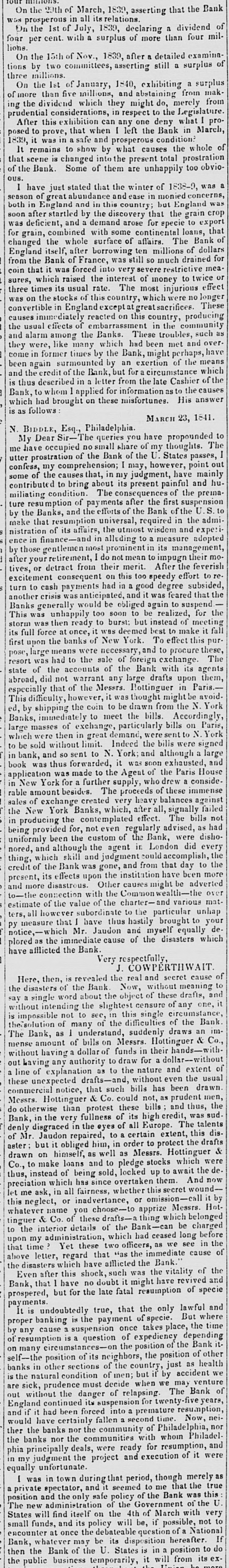 Mr. BENTON admitted that other banks had behaved very badly, but the case of this bank stood distinguished from all others, because it had originally come into existence under a charter from the United States, and the eyes of foreigners were in a peculiar manner fixed upon it. Mr. B. proceeded to speak with much warmth against the course of the bank generally, and especially on its bringing upon itself the last suspension by an underhanded and swindling endeavor to break the New York banks. He accused it as having plotted the suspension in 1837, and as being in effect the only obstacle to a resumption of specie payments by all the banks of the South. They had recently made an effort to resume, but this bank had instantly run upon them and forced them to return to a suspension.