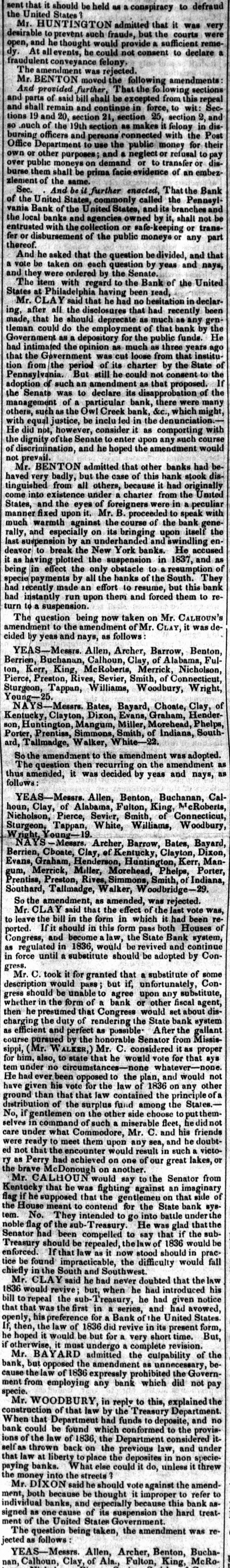 YEAS-Messrs. Allen, Benton, Buchanan, Calhoun, Clay, of Alabama, Fulton, King, McRoberts, Nicholson, Pierce, Sevier, Smith, of Connecticut, Sturgeon, Tappan, White, Williams, Woodbury, Wright, Young-19.