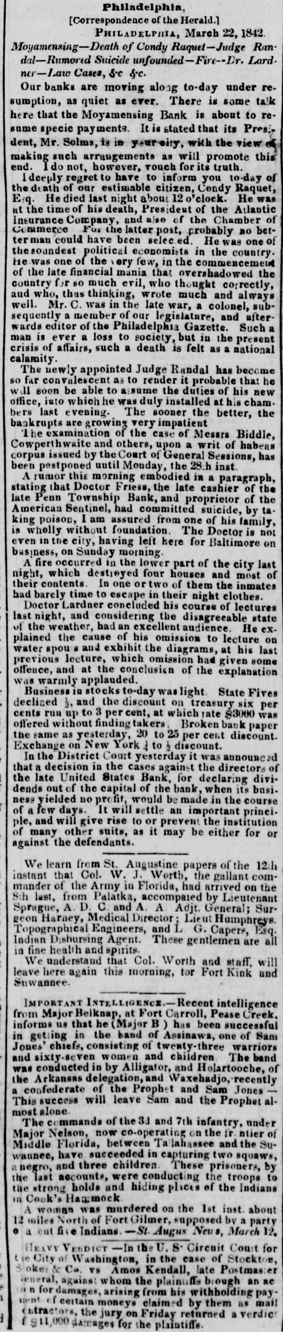Moyamensing-Death of Condy Raquet-Judge Randal-Rumored Suicide unfounded-Fire--Dr. Lardner-Law Cases, &c &c.