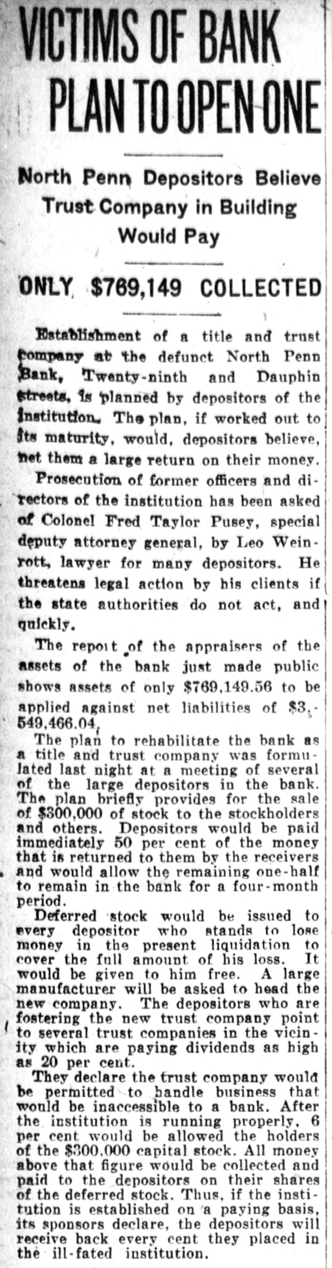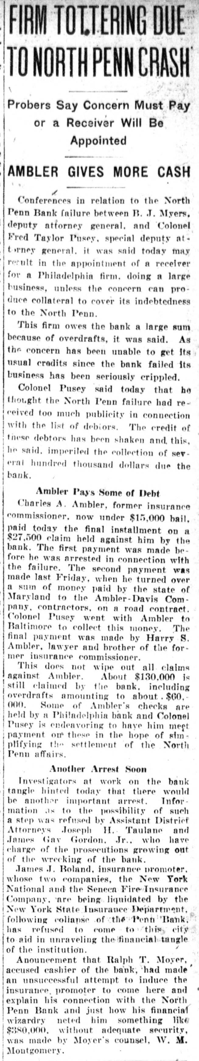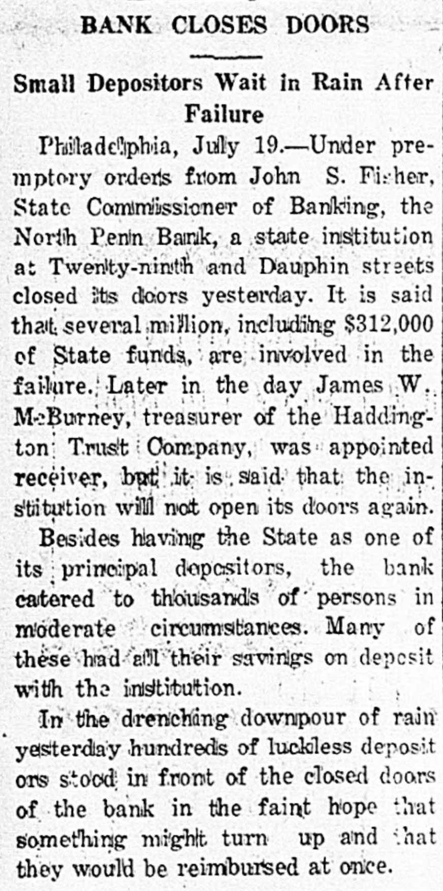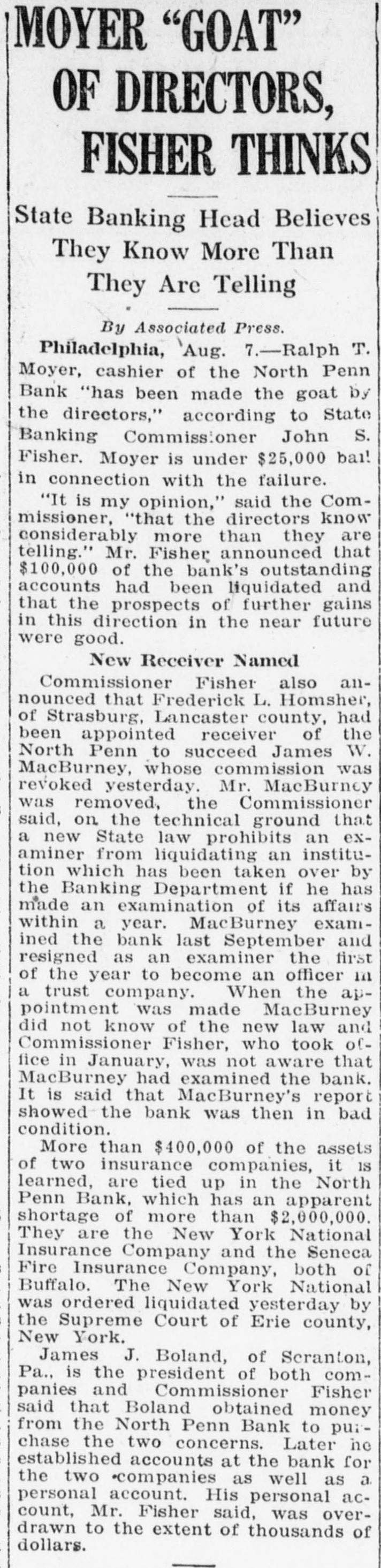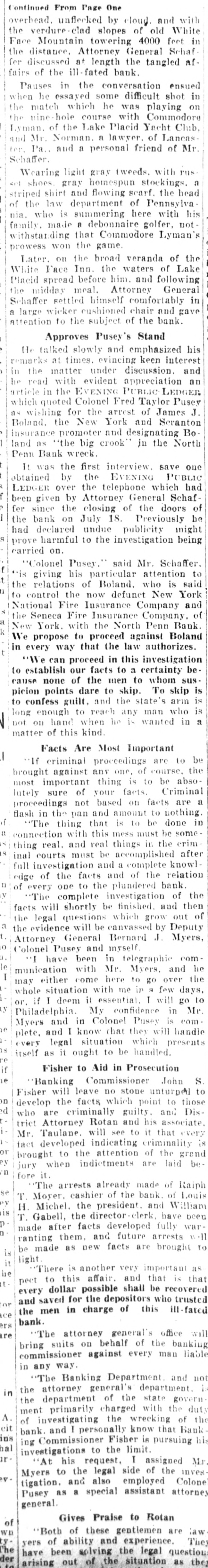 Mr. and Mrs. John Skinner, Baltimore, were visitors of Mr. and Mrs. J. D. Crowl, Center street, this week. Mr. and Mrs. John Truss, Baltimore, were Sunday guests at the same place. Misses Irene, Nellie and Louise Lippy, Charlotte Zepp, Margaret Michael, Earl Lippy and Lawrence Zepp, this city spent Tuesday at Gwynn Oak and Druid Hill Parks, Baltimore. Mr. and Mrs. Edgar Smith and Mrs. Arthur W. Smith and son, Ray, of Dayton, Ohio, have returned home after spending a pleasant visit to their mother, Mrs. Harry Smith, of near Marston. Mr. and Mrs. J. Burner and daughters, Elizabeth, Gladys and Virginia, took a touring trip to Virginia to spend a week. They also spent a few days in Hagerstown with their mother and friends. It cost Nessin Hiken, of Milwaukee, Wis., $25 to recover a 50-cent handkerchief which his wife had accidentally dropped into another automobile. Hiken caught the car. He was pinched for speeding. It is said that spring clothes will cost most. However, we can go into training by wearing a thin summer suit in the winter, and if we survive till spring we shall be SO tough that we shall need no clothes at all. Sergt. T. B. Myers, of the 81st F. A., who is stationed in Kentucky. is now touring the country recruiting for the Army and visited his parents, F. H. Myers, Mount Pleasant a few days. He returned to Tennessee. William Stimax, who is at the Union Protestant Infirmary suffering from injuries received by being struck by the Hagerstown express at Cranberry on August 21, is improving and is expected home next week. The farmers will now have to look out for a new crop pest-the corn horer. This insect is said to have been imported from Europe, like the Bolshevik, and it's none too soon to start vigorous measures against him. Mr. and Mrs. Frank Beachtel, Mr. Edward Slifer. Mr. and Mrs. Albert Kindig and son, Allen, Mr. and Mrs. Luther Slifer and Miss Minnie Harner. all of Littlestown, Pa., sent Sunday with Mr. and Mrs. Henry Willet, Mt. Pleasant. Chief of Police John A. Stem, East Green street, has improved SO much in the past two weeks that he is permitted to leave his residence. He has been automobiling a few times. Patrolmen Stem has been ill about two months from being overcome by the heat. Long Island City grave diggers are on strike for $4 a day, and the high cost of dying may come to rival the high cost of being sick, with $3 a visit for the doctor. That dying comes only once in a life time, however, is a consideration not to be ignored. It appears that we are now to have jokes of the aircraft, aerial humor, as it were. Take, for instance, this, picked up from an English paper: Small Boy (to pilot)-If you be a-goin' up, zur, would ye see if ye can find Billy's kite driftin' about, wot e lorst larst Toosday? How do you know it was whisky and not a substitute, asked the attorney for an accused saloonkeeper at Pittsburgh. "I've been a whisky gauger for 20 years,' was the reply by the witness. "That's sufficient, I think,' the judge concluded, and the saloonist was held for court. By driving his Dodge Sedan through a wire fence/ opposite the old tollgate proerty on the Baltimore pike Tuesday afternoon the owner prevented a smash up with another automobile. The Dodge was considerably damaged in front and had to be towed to Klee & Hoff's garage for repairs. Those who spent Sunday at the home of Wm. H. Meyers and wife were as follows: Mr. John Seipp and wife, of Baltimore; Mr. Harry Black, wife and children, Frances, George and Clayton Black and Albert Hann, of Manchester; Mr. Clarence Feeser, wife and daughter, Nadine, and Mr. Floyd Geiman and wife, of Deep Run. Md. The Real Estate Company sold for D. Snider Stephan his properties and lots on Carroll street Tuesday to the following: "Paul I. Whitmore and William R. Bowman, double weatherboarded house and 38 foot lot, subject to a ground rent of $3 annually for $3450. Thomas Babylon, 141 feet, with an annual ground rent of $9 for $2100. Daniel F. Lafean, former state commissioner of banking, was arrested in York, Pa., charged with being implicated in the wrecking of the North Penn Bank, of Philadelphia. The warrant for the arrest was issued by the district attorney of Philadelphia. It charges that he permitted the wrecked bank to remain open knowing it to be insolvent. Mr. Wm. Frizzell and Misses Gertrude and Cora Green, of near Statewood, motored to Baltimore Sunday August 24 and there joined Mr. Oscar Green, Mrs. John Carney, Misses Theima Green and girl friend, Ruth, and spent the day on the steamer Dreamland to Cheasapeake beach. The scenery was gorgeous on land and water. Everyone returned home happy after spending such a pleasant trip on the water. Mr. Luther L. Bankard, Bond street, formerly with the Western Maryland Railway, with offices in Baltimore, has accepted a similar position with the U. S. Railroad administration in the car service sec-