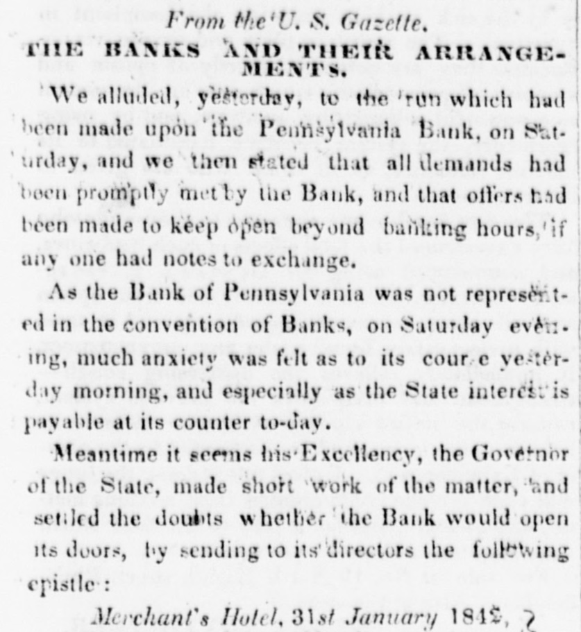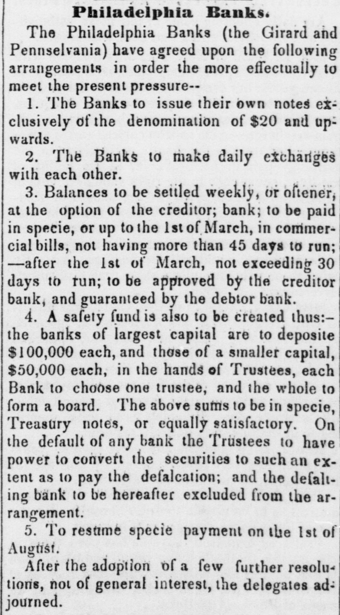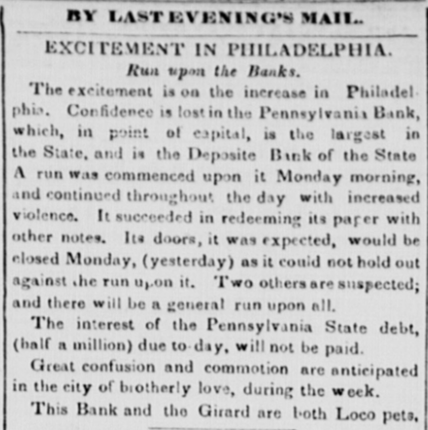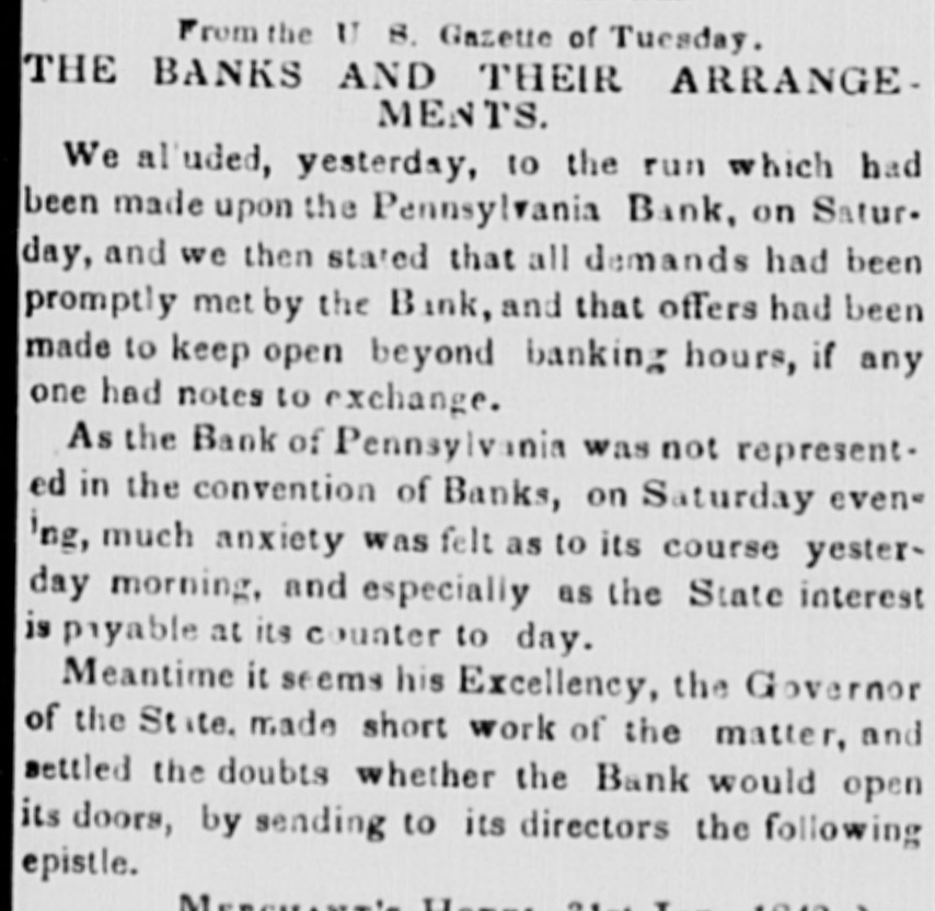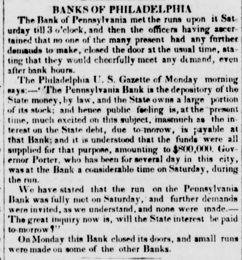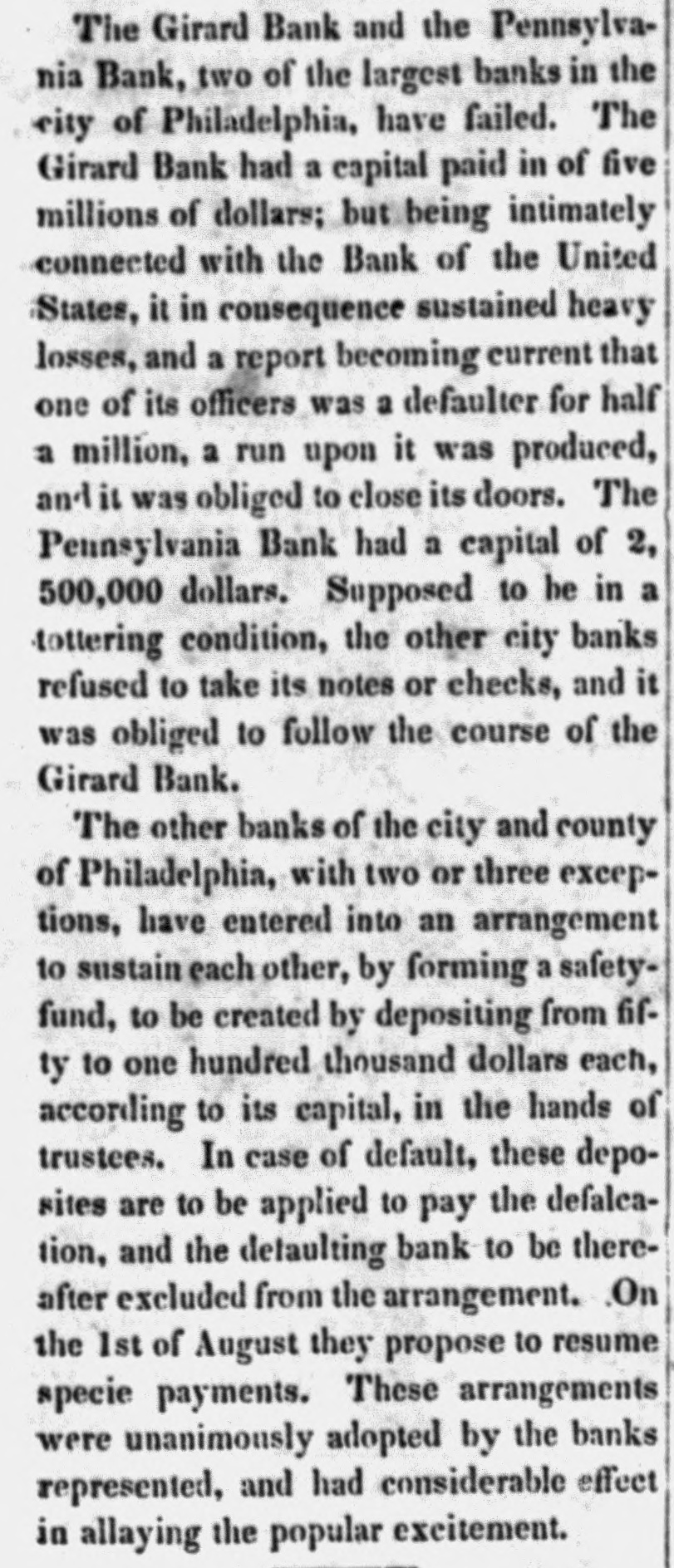 $88,322,496 $88,862,248 Total To determine the circulation of all the Banks, the amount of notes of other Banks contained in the statements should bedecutted. The notes of the Northampton Bank, Pa., are becoming pre depreciated. Sales have been made at SO a SS per cent discount. The following counterfeits are in circulation Counterfeit twos on the Otseg Co. Bank are is circulation Rob't Campbell, President S. Scott, Cashier, Pay F. Cooperdate Aug. 4, 1842. Bank of Auburn, pay J. Long, dated Auburn, Nov. 1, 1842-J.S Seymour, Cashier E. Beach, Pre sident. Letter A.-No. 1456. The words Safety Fund' are heavy. corresponding with the general lettering of the bill; but New-York is lighter colored and longerle tered than it should be. The city banksa Rochester are discounting butlittle. Their circulation has greatly decreased the pastyear. Their presenticondition is such as to stimulate spring trade, should confidence become a little more restored. Exchange on New-York is from 1 to 1 per cent. Bickneli's Philadelphia Reporter says Money continues abuedant. Good paper is very scarce. The rate may be quoted at per cent per annum. The Manufacturers' and Mechanics' Bank has resumed specie payments on all liabilliles, except in Relief notes, since our last. The Moyamensing, the Peonsylvania, the Girard, and the U. S. Banks continue closed. Business is rather more active, but is yet regarded as very dull. Specie is plenty, Treasury notes on Saturday la 11 per cent. Relief notes without change.Nothing has been done by our Legislature in relation to the State Debt. The branches of the State Bank of Alabama have now all been put in liquidation and there was supposed to be little doubt that the Mother Bank at Tuscaloosa would SOGR be placed in the same category. Someot the New Orleans Banks and the Bank of Missouri St. Louis, refuse to received on general deposite or in payment Spanish quarters, bits or picayunes The latter has on hand $30,000 in dimes. The Mobile Advertiser of the 4th has the following remarks upon a panic in the Exchange market The market opened in the first of the week at 20 a 22 for starling, 18 for Ne w-York sight and 21 a 22 for New Orleans specie-from which it continued steadily advancing at the rate et 2 per cent. a day, until Wednesday, when it jumped up about 5 per sent, and on Thursday fully 10 per ceau more, sterling being rated at 40, New-York 35 to 40, and specie 40 per cent. premium on currency. A complete panic pervaded the community, almost every one hastening to invest his Alabama money in specie, exchange, cotton, or wbatever else could be had. In this state of things sellers of exchange could not be otherwise than affected with the general distrust, and in consequence were rather afraid to draw to the extent of their means. Yesterday morning the rates opened S to 5 per cent higher than the average rates of Thursday, but there was evi ently less anxiety to boy-whether because the most timid had suc. ceeded in ridding themselves of their money, or from areturn to the sober second thought, by the community, we cannot say, but the rates declined before noox on an arerage 5 per cent. Gold was sold early in the morning at 45, and hy noon 41 was the highest that could be obtained.e think it very doubtful whether the currency will for a good while to come stand as well in general estimation.The present blow, although admitted to have been uncalled for and altogether unnecessary, is one which will not lightly away with the occasion We give the average rates 90 yesteruny--sterling 40, New York and Boston 60 days, 35; 30 days, S4 a 36; sight S8 a 40; New Orleans 40; Specie 48 a 41. At New Orleans, on tbe 4th inst., no material improvement in Exchange. Sterling S a 53 per cent premium; Francs 5 53 a 5 57; New-York 60 days 24 a 23 per cent. discount; Sight Checks 1/4 a 1 per cent. discount. large amounts of specie were going over to Mobile. Markets-Carefully reported for The Tribune. TUESDAY, P. M. ASHES-We hear of no operations to-day 10 either description. The prices remain as before quoted. Pots 525 a531t offered, 5 50 asked; Pearls 6.50-nominal. There appears to be no demand for Pearls, but a few Pots could sold at 5313 COTTON-The demand to-day is rather dull, and we can bear of only some 500 to 600 bales sold. Prices are without no iceable change, but for qualities below7fair rates rather in favor of the buyer. Fair and above are firm al rather enhanced prices. Some fine is in the market, but held high-3c The recent arrivals have not on the 4th, the not been business was at below fair. was 5 a 5}; middling fair a fair a At Mobile on advices decline been sampled. having 7t and 72; upward. At Middling good N received, Orleans 81 quoted 83. steamer's light, of the of which were for investment of Alabama to 1c then some factors asking a much 41h, sales ces closed on the 2d, 1 mostly week higher 20,000 bales, previous week, 10,000 money. sold Pri- the greater advance. Quotations were unsettied. Ordinary a 6;; middling 6 a7; middling fair 71 a 74: receipts 20,657, stock 88,185 bales. At Augusta on the Bill, all received taken at iat advance. Middling fair 5 a fair to good fair 6 63. FLOUR AND MEAL-There is a moderate inquiry for and the market has become cleared of all Flour to be had below 4 434. For round Western, the the demand flas hoop nearly boop is We fiat Western 4 4S3 a 50. recent of N Orleans we have heard of no 551 obis of a fancy brand, on private or resexcepting the receipts light quote terms. brands In Southern there little and the lower are pressing on 4 12 a 4 25. How in very Common the market. doing, Small are worth Georgetownat about 12j. grades Ivania, s.c. 100 a 12); Richmond and-st, Peterburg, Alabama, sales Pennsy wine a small lot of N Men, farther sales at hhds 12:25 cash, 12 75 Mills sold Jersey City 250; 5 50; Brandywine Rye Brandy Flour 262); 312). 4 50; 4 mos. AtN Orleans Flour was dull at S 12) a 25. The BL Louis New Kra Upwards of 9000 abls of Flour