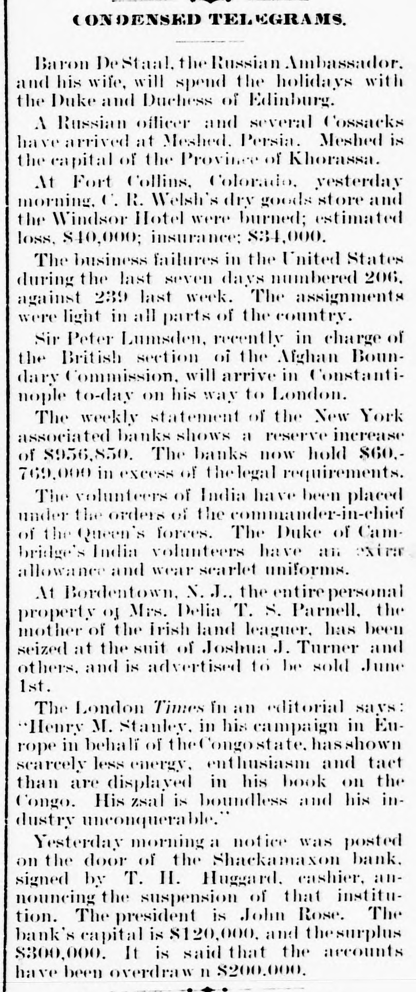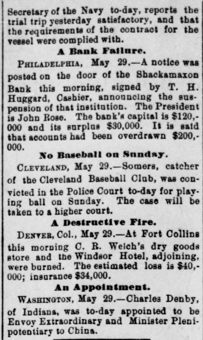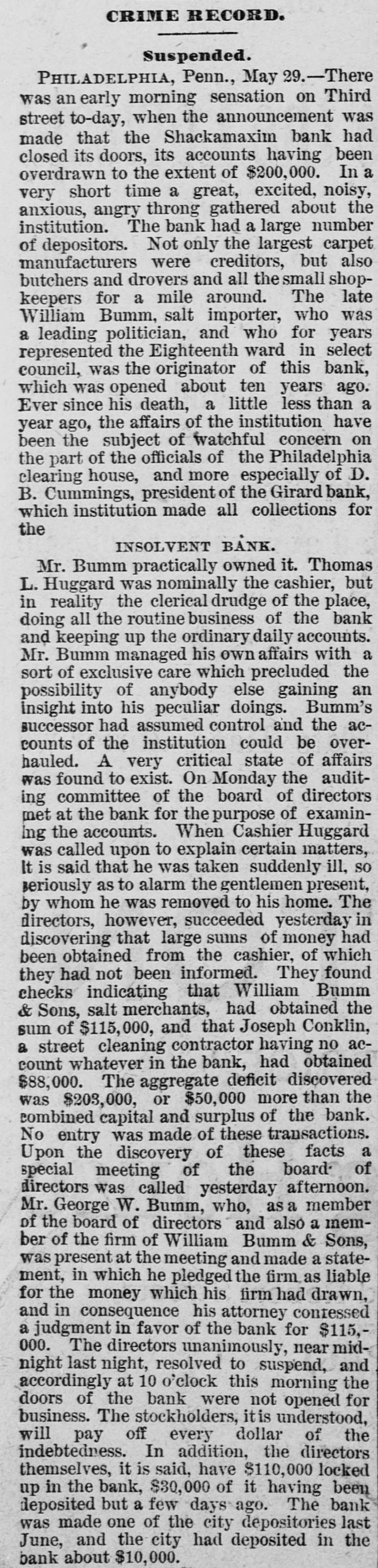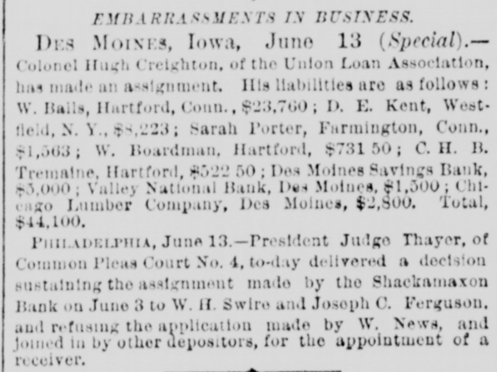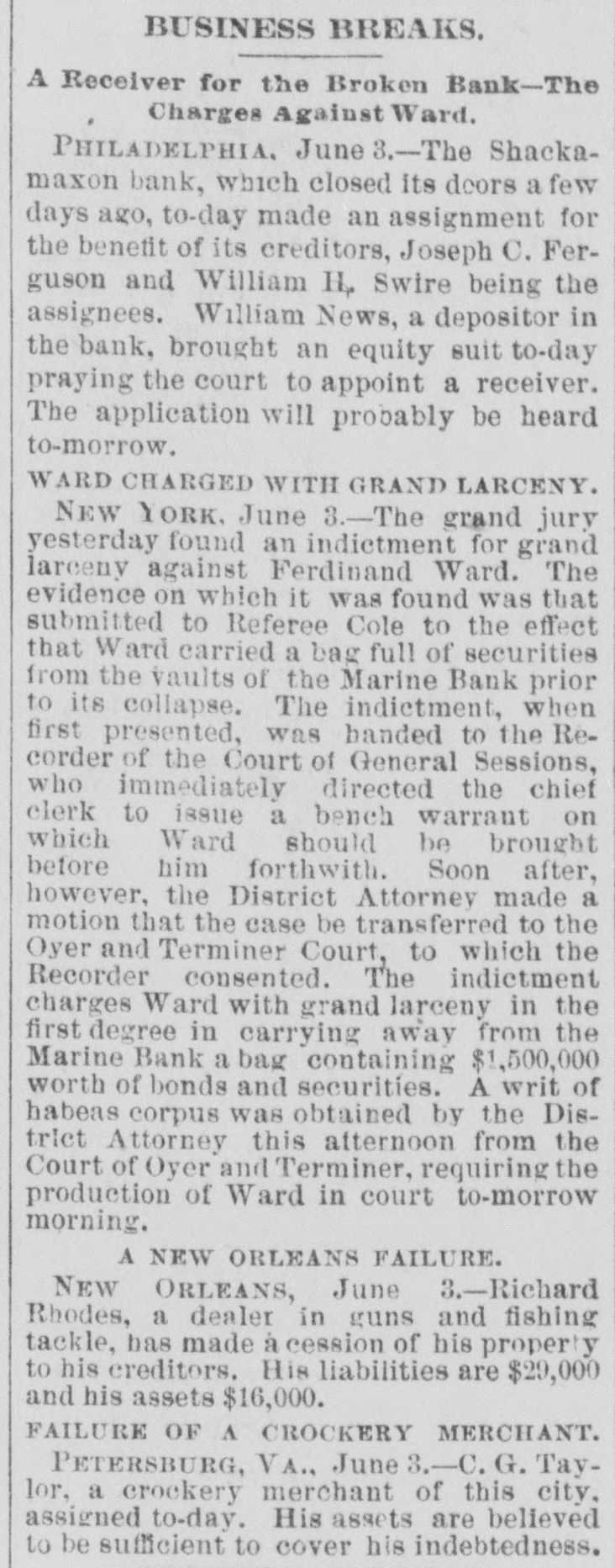 THE failure of the Shackamaxon Bank at Philadelphia, Pa., proves to have been a bad one. Liabilities about half a million.