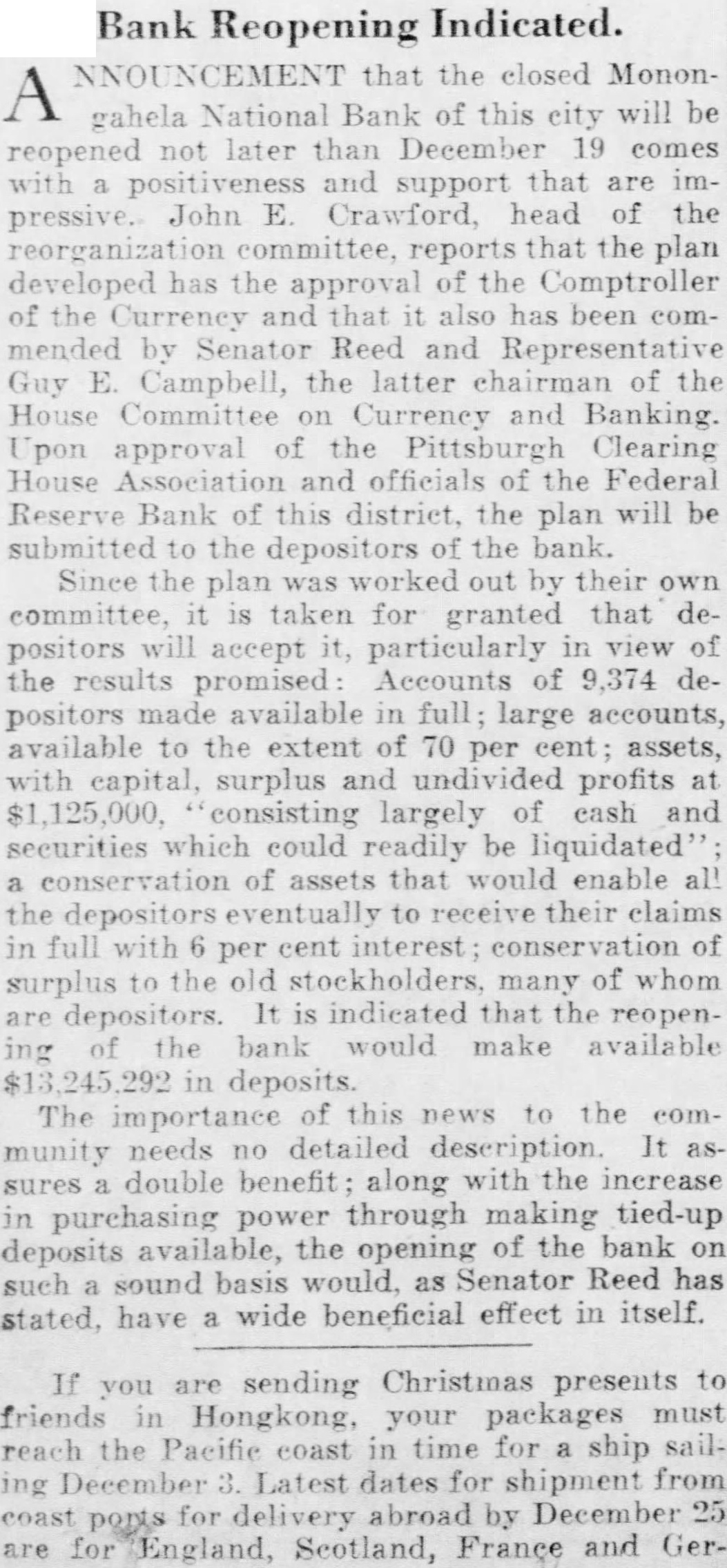 Succeeds G. H. Ahlborn Who Is Made Assistant Pittsburg Bank Receiver