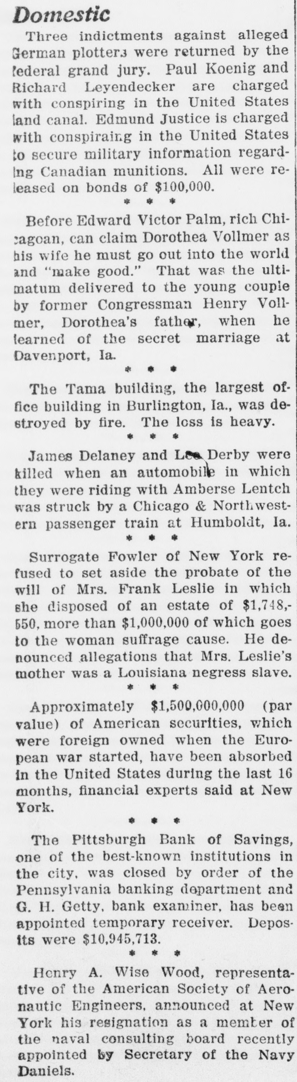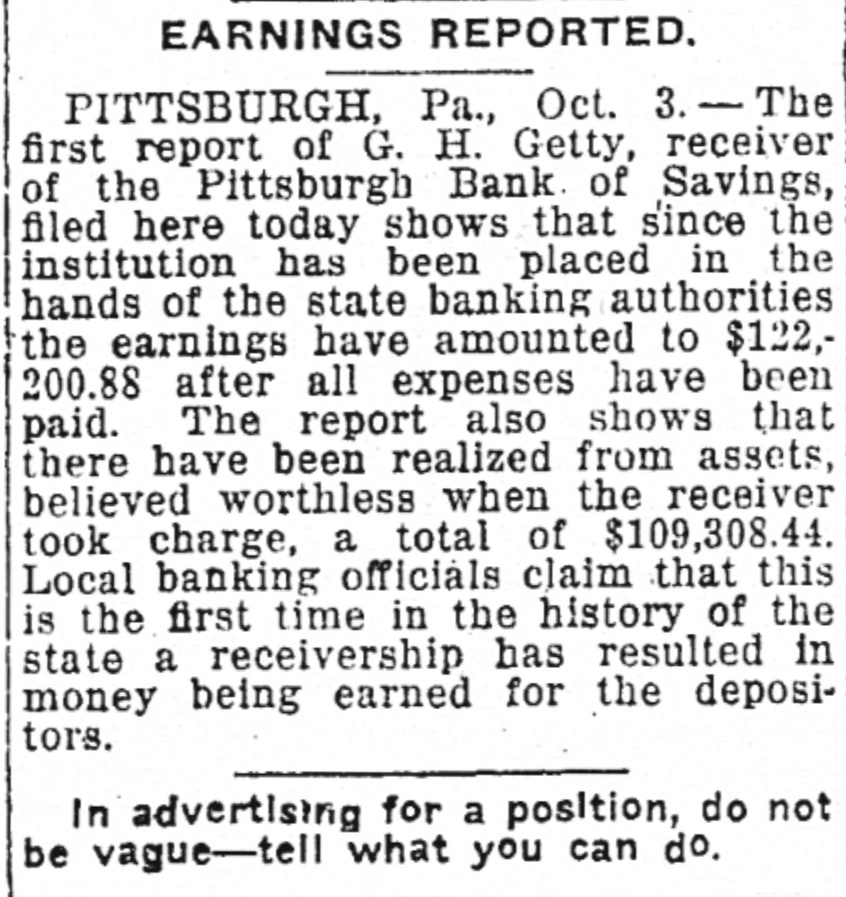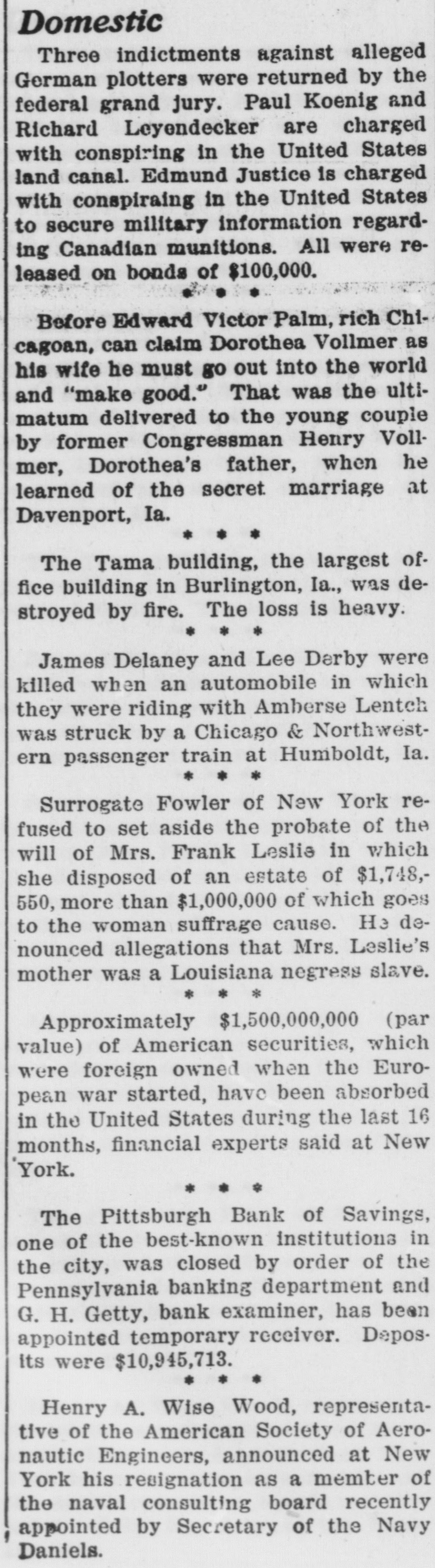 proval or its corporation on t ground that there is no public nece sity for the service the company ( fers to give. The opinion establish a precedent. The company asked t right to operate in a district whe the evidence showed there were ready two companies and nothing establish that the service they ga was inadequate or that any deman had been made for service which th had not granted. It was also sho that the proposed company intend to obtain current from a tracti company and to furnish current or in portions of the township which o not have electric service. "If t commission could limit the territo as designated it would be in effect relieve the corporation from certa of the duties imposed upon it. T grant in a charter is accompanied certain burdens which have to met," says the opinion. To File Briefs. - The Public Se vice Commission has asked count for complainants and railroads volved in the charges that the r f crew law is being violated to h briefs. The commission now eleven allegations of violations befo it, eight railroads being responden The companies claim that the con plaints are based upon matters whi are open to question under the f crew act of 1913. Two More Line-Up. - Notice h been received at the State Capitol th Bedford and Monroe counties ha decided to appoint sealers of weigh and measures and to bring artic used in markets and in business u der the general State inspection lav Juniata county commissioners ha the same nfatter under considerati and there are less than five counti in the whole State whose weights a measures are not supervised. Jam Sweeney, State chief of standard who has had charge of the bure since it was created. has been in con munication with the counties whi do not have sealers and expects th the end of the coming year will S all districts protected. People Must Help. - State Dai and Food Commissioner James For in his bulletin on the activities of ] branch of the State Department Agriculture calls upon the public help the State enforce the food lav "It is recognized that unless the co sumer is interested in his own prote tion the police agencies of the Sta cannot secure him entire freedo from injury," says the commission To Push Appeals. - It is like that steps will be taken early January to present to the Dauph county court appeals from decisio of the Public Service Commissi which were made prior to the act 1915 providing that such appeals sh be taken to the superior court. The are half a dozen such cases. some them of wide importance. The oth cases will go to the superior cou automatically. Fifty-six Exempted. - The Sta Workmen's Compensation Board t day announced that fifty-six corpor tions or other large employers of lab had been exempted from necessity insuring their compensation liabili having satisfied the board of financ ability to meet claims which mig arise. In the number are the Phil delphia Rapid Transit Co., Philad phia and Reading Coal and Iron C Atlantic Refining Co., Alan Wood Ir and Steel Co., Philadelphia; Pit burgh and Lake Erie railroad, Rit Conley Manufacturing Co. and Harl son Walker Refractories Co., Pit burgh; Alpha Portland Cement C Easton: Link Belt Co., Chicago; Pen sylvania Coal Co. and Hillside Co and Iron Co., Dunmore; Americ Telephone and Telegraph Co., N York and General Electric Co., Sch nectady. Whitaker Named. - Samuel Whitaker, one of the members of t Legislature from Chester county, a a second lieutenant in Battery Phoenixville, was to-day appoint captain of the battery to succeed Ca tain Charles H. Cox, who resigne Adjutant General Stewart also a nounced that Second Lieutena Thomas J. Kernaghan had been a pointed captain and assigned to Co pany K, 3rd infantry, Philadelph and Second Lieutenant Walter Kirkwood had been appointed fir lieutenant and assigned to Compa E, 18th infantry. Dr. A. Raymo Radhams, Wilkes-Barre, has been a pointed a first lieutenant in the me ical corps and assigned to the 9th 1 fantry. The resignation of First Lie tenant S. Y. Rossiter, Company G, 16 infantry, Erie, has been accepted. State Not Involved.-The State h no funds in the .Pittsburgh Bank f Savings which closed to-day. Hearings Held Today-The Pub Service Commission to-day heard t Tamaqua-Eastern Pennsylvania a the Portage Water cases to-day. T Castle