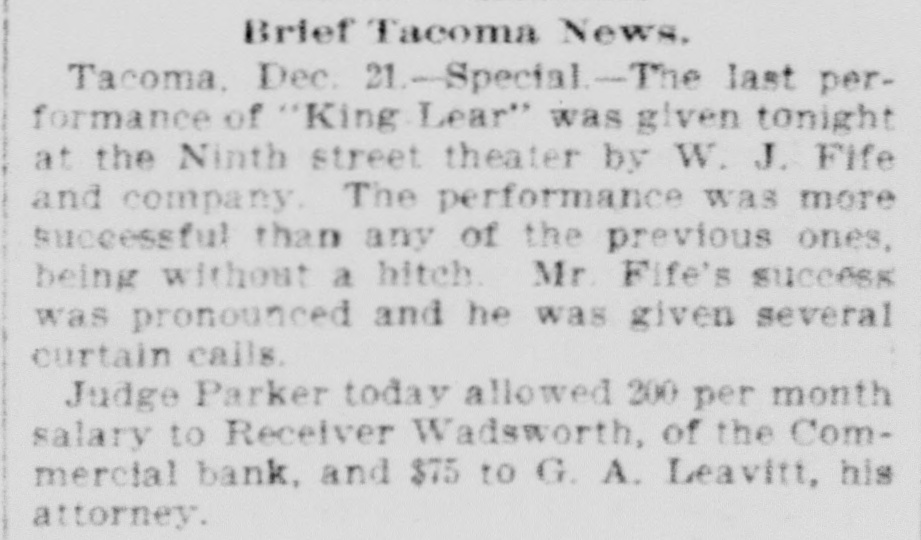 Tacoma, Oct. 16.-The Commercial bank, organized under the state law, did not open today, Judge Parker, at the request of stockholders, having at a. m. appointed S. M. Nolan, one of the directors, receiver. This action was brought about by City Treasurer McCauley calling on the bank to pay $6,300, the city's balance on deposit, on short notice, the city needing the money to pay interest in New York. The application was made by Fremont Campbell for the bank, and he was appointed attorney for Receiver Nolan. The latter's bond was fixed at $25,000, with W. J. Coggswell, R. B. Mullen and Judge Frank Allyn as sureties. When the city's demand was made President Frank Allyn called the directors together. They met yesterday at p. m. and were in session nearly all night, deciding early this morning that it would be unprofitable to continue business longer. Papers in the receivership case were then prepared, with the object of liquidating. The bank's liabilities are between $40,000 and $50,000, and the assets over $160,000. The last statement of the Commercial bank, made on May 31, showed: Loans and discounts, $235,369; cash on hand, $24,008; certificates of deposit, $13,461: deposits subject to check, $62,765; undivided profits, $18,710. The bank was organized in December, 1891. Its stockholders include a number of wealthy New York men. The officers and directors of the bank are: President, Frank Allyn; vice president, O. K. Hiscock: cashier, Arthur Bridgman; W. R. Rust and J. H. Price. The city's deposit of $6,000 has been guaranteed by Mr. Rust, who is manager of the Tacoma smelter, and Mr. Hiscock. The money will be promptly paid by these gentiemen. To the Post-Intelligencer correspondent Judge Frank Allyn, president of the closed bank, gave the following statement: "The Commercial bank was organized about four years ago. A little less than three years ago I became its president. The panic of 1893 followed soon after. At that time the bank had, in addition to a large general deposit list, over $110,000 of city funds and $60,000 of county money. We paid the city promptly until its balonce was reduced to about $6,000, and gave the county back every dollar. Since the panic we have paid off our depositors until less than $40,000 remains. We paid this money during a period when the great majority of financial institutions have been unable to reduce their liabilities in any such proportions. Since the failure of the Bank of Tacoma and the persistent street talk incident to it there has been a steady but quiet withdrawal of funds. We have realized for two weeks past that a steady run was on, either incident to the late failure or from other causes which we have been unable to locate. In the meantime every effort has been made to realize on our securities, which are ample, if they could be cashed, to pay depositors four times over. At a late hour Monday night we were notified by the city that its balance of $6,000 would be checked out the next morning. Of course we had not anticipated this, although we were making every effort to realize on securities. We confidently expected, until a late hour last night. that we would succeed in cashing certain securities, enabling us to pay the city and any one who wanted their money. At a meeting of the directors last night, we decided that, as our anticipations had not been realized, there was no other course left open. in justice to our stockholders and creditors. than to go into liquidation, inasmuch as the city was insisting on the immediate payment of its account. This was done by the appointment of Mr. S. M. Nolan as receiver. In three months we will be able to pay off all our creditors and have a handsome surplus for the stockholders."