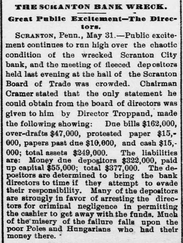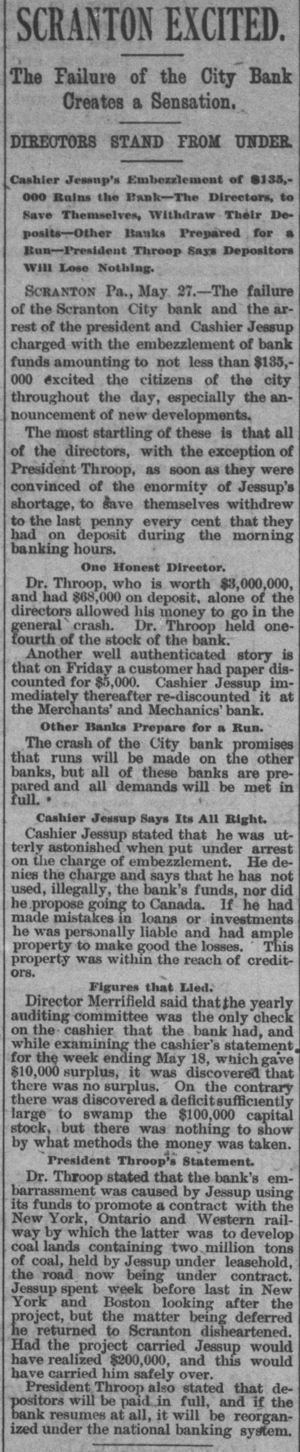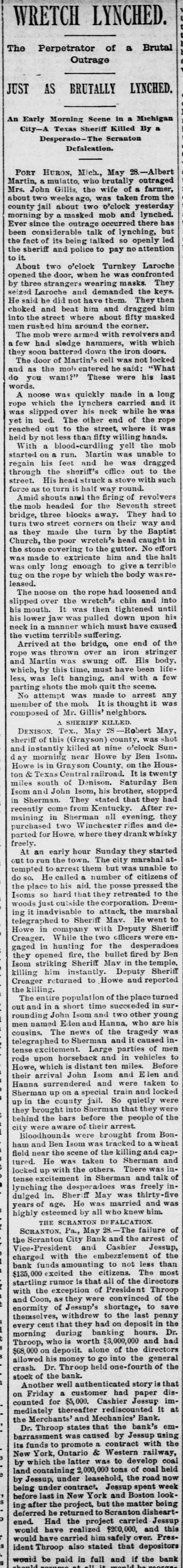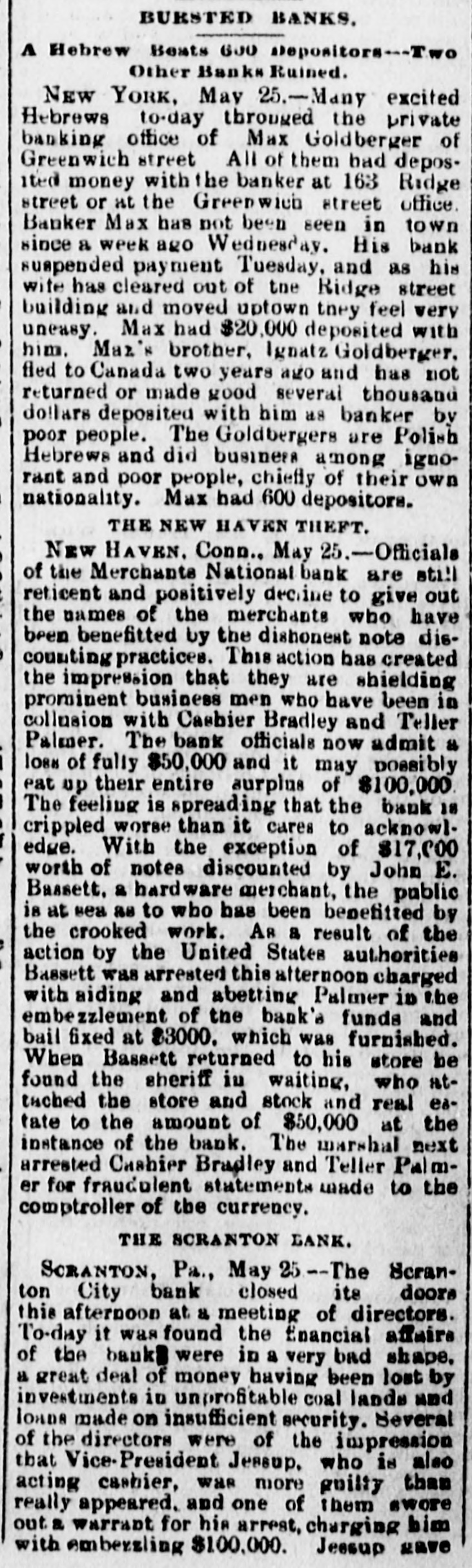 the body has made a record for itself the will make the beginning of an era," un less it be through the passage of the drain age bill, which will certainly make a vas change in Illinois if the design of th bill shall ever reach a consummation. The attempt to pass the Australian elec tion law failed when it came to the senate sharing the fate of many other worthy bills including the anti-trust bill, proving th prediction made early in the session, the the work of this end of the legislatur would show it entirely under the contro of the corporations of the State. As to th anti-trust bill corruption was charged, bu an investigation, during the last days of th session, declared the charge untrue, or, a least, not proven. Among the acts of the last two days were two joint resolutions. The first was a long one, with a still longer peramble, reciting the history of the Illinois river improve ments, resolving that the policy of the State is in favor of the construction of : ship canal from Chicago to the Mississipp river via the I. & M. canal, Desplaines and Illinois river, and petitioning congress to CO operate therein. The other resolution provides for the submission to the role o people an amendment to the State banking law, adopted at the last genera election, which amendment will make stockholders in State banks liable for the full amount of the stock owned, and fixing sliding scale of capital required; in towns less than 5,000 people, $25,000; of 5,000 10,000, $50,000: from 10,000 to 50,000 $100,000; over 50,000 population, $200,000 A bill was also passed changing the time holding the terms of the supreme court this city, fixing the future dates for the Tuesday of March and October. Another bill adopted was one affecting sale of flash newspapers, etc. It proIdes that it shall be unlawful for any perto sell, lend, give away or to show or dvertise, or otherwise offer for loan, gift distribution to any minor child any book amphlet, magazine, newspaper, story aper or other printed paper devoted to the ublication, or principally made up of riminal news, police reports, or accounts criminal deeds, or pictures and stories deeds of bloodshed, lust or crime, or to xhibit upon any street or highway, or in place within the view of any minor hild, any book, magazine, newspaper amphlet story paper or other paper or ublication coming within the description matters mentioned in this act. The drainage bill was passed by the ouse on Friday, and signed by the gov on Wednesday last. On Triday last, the 24th, a St. L. & S. F assenger train was wrecked at 11:25 'clock, 68 miles west of St. Louis. The rack had been tampered with in such 8 ay as to indicate a deliberate purpose to reck the train. About 50 passengers were but no one was killed. The Scranton, Pa., City bank closed Its oors on Friday last. The cashier is harged with ruining the bank by injudi ious speculation and investments. He has gone to Canada, however; and as his ondsmen are rich, the losses may be relaced and business resumed. The pioneer expedition of engineers of the roposed Nicaragua canal sailed on Satur last for that country, with a ship load machinery and supplies. The expedi goes equipped to begin the work of actual digging of the channel. J. H. Hodder has been appointed post naster at Aurora, vice Corbet resigned. Mr Corbet was the successor of Mr. Knickerocker, Mr. Hodder's business partner who was the last appointee of the late President Arthur. Mr. Knickerbocke lied after being in office two months when Mr. Corbet was appointed. Mr Hodder is editor of the Beacon, an able aper, which will be edited hereafter by newspaper man from the Indianapolis ournal staff. Snow to the depth of two Inches is re orted in Rutland villiage this county via Venona on Wednesday afternoon! Natural gas has been found at Oak Creek Vis.., at a depth of 130 feet. There is a trong pressure. The Mormons are moving rapidly into Alberta, in the northwest state, British Co umbia, from Idaho and Utah, and have urchased a large tract of railroad land. Rev. J. C. Myers of the State Line, was truck by lightning while preaching in New Liberty, Indiana, on Sunday last, and now totally blind, The biggest railroad steal on record I laimed to be the looting of 21 cars or