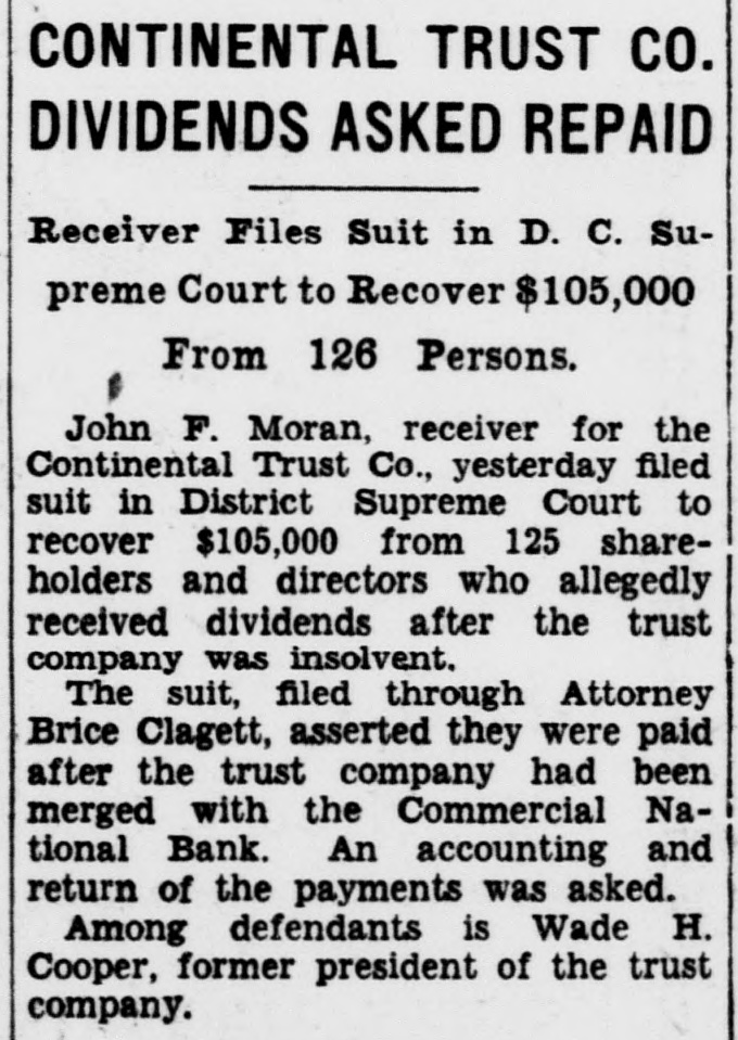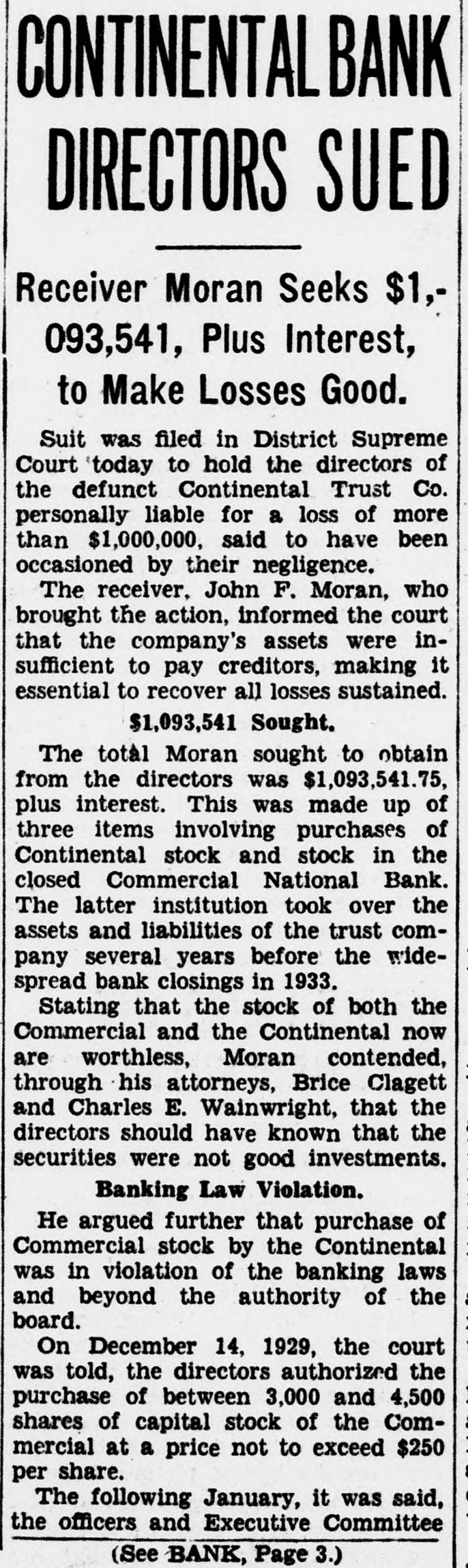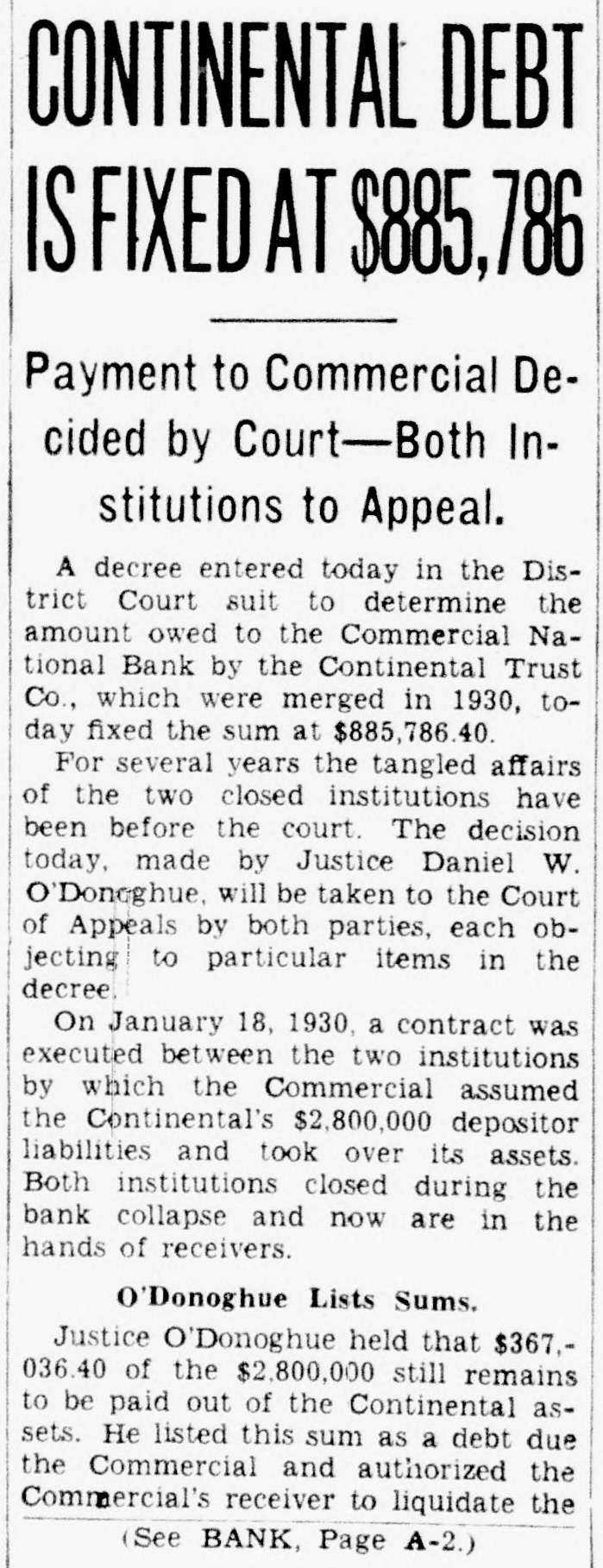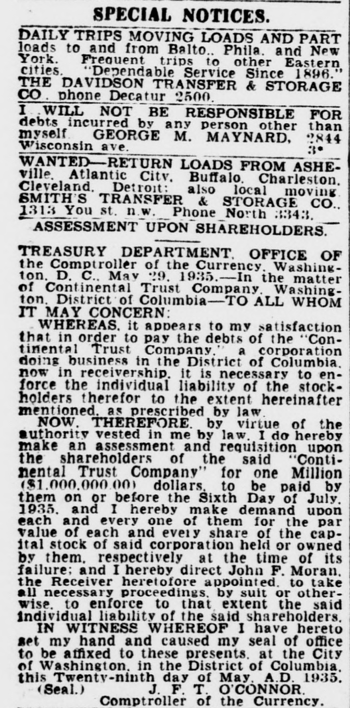 H.O.L. C. OUTLINES MORTGAGE POLICY To Refund All Eligible Funds Held by Receivers or Conservators. The District office of the Home Owners' Loan Corporation is in the process of refunding all eligible mortgages held in financial institutions in hands of receivers or conservators, in accordance with a policy announced last month by the Board of Directors of the Home Owners' Loan Corporation. In communications to those banks and financial houses as yet unopened in the District, Paul J. Frizzell, manager of the H. O. L. C. here, during the last week has requested each of them to furnish him with applications from every home owner in Washington whose mortgage is in such ownership. To Liquidate Assets. The action is being taken, Frizzell explained, to liquidate such assets as quickly as possible for the benefit of depositors in these institutions, and also to provide home owners whose mortgages are in such a category with permanent financing and remove from them the fear of having their mortgages called at maturity. It is estimated that more than 760 of such mortgages are held in closed banks here, having a total value in excess of $2,000,000. Frizzell's office has sent out communications to 19 banks either in the hands of conservators or receivers. He has asked them to either have the home owners whose mortgages they hold to file an application with the H.O.L.C., or that the banks furnish him with the names of the home owners so that his office may solicit the applications. Communciations Sent Out. The communication went out to the Franklin National Bank, Federal American National Bank & Trust Co., District National Bank, Potomac Savings Bank, Washington Savings Bank, Northeast Savings Bank, WoodridgeLangdon Saving & Commercial Bank, United States Savings Bank, Seventh Street Savings Bank, Mount Vernon Savings Bank, Industrial Savings Bank, Park Savings Bank, Chevy Chase Savings Bank, the Departmental Bank, Bank of Brightwood, International Exchange Bank, North Capitol Savings Bank, Continental Trust Co. and Commercial National Bank. Seven of the above named banks opened as members of the Hamilton National Bank merger, and the Chevy Chase Savings Bank is now a branch of Riggs National Bank.