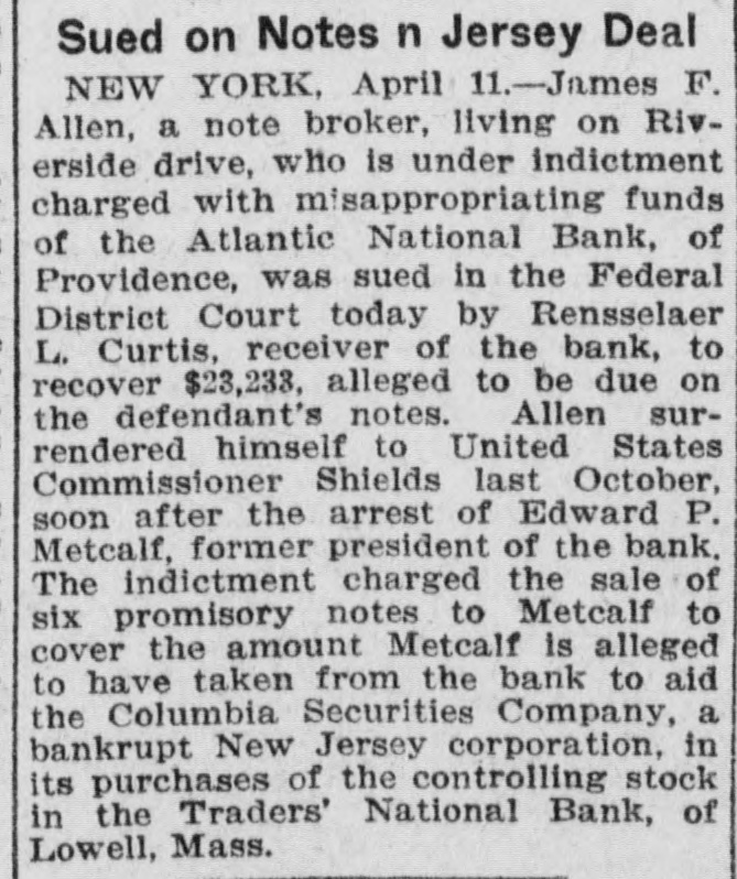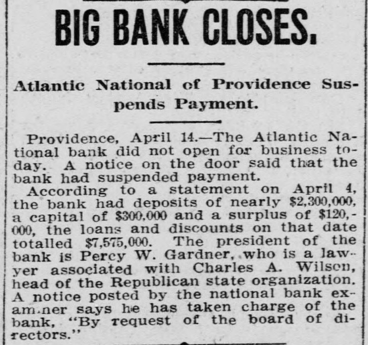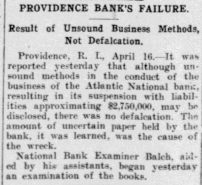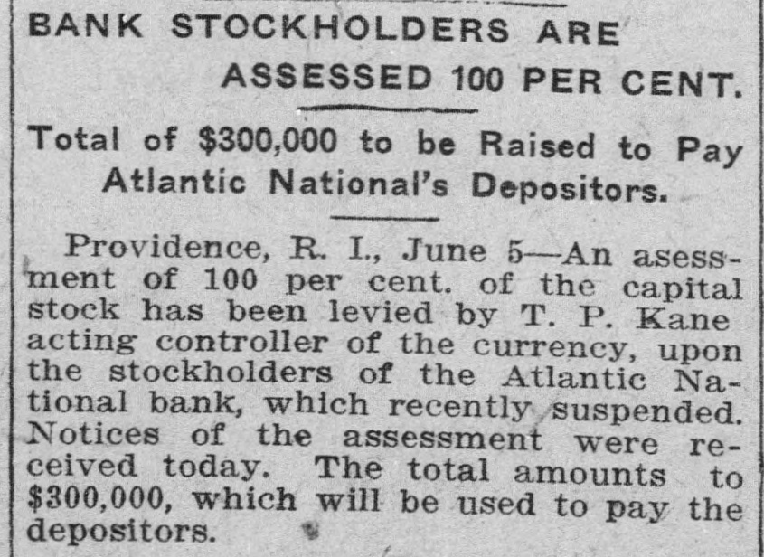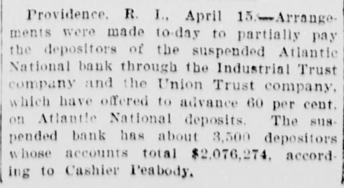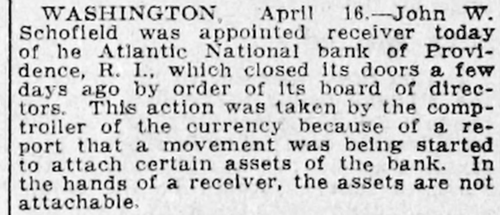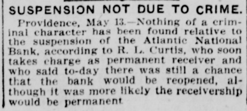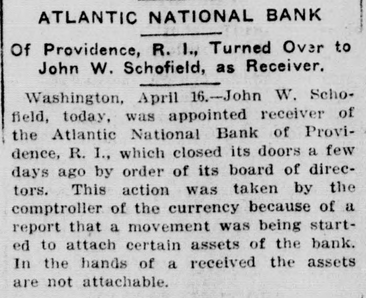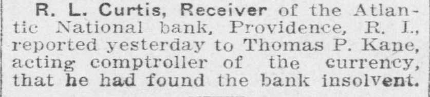 By order of R. L. Curtis, receiver of the Atlantic National Bank, Providence, R. I.: