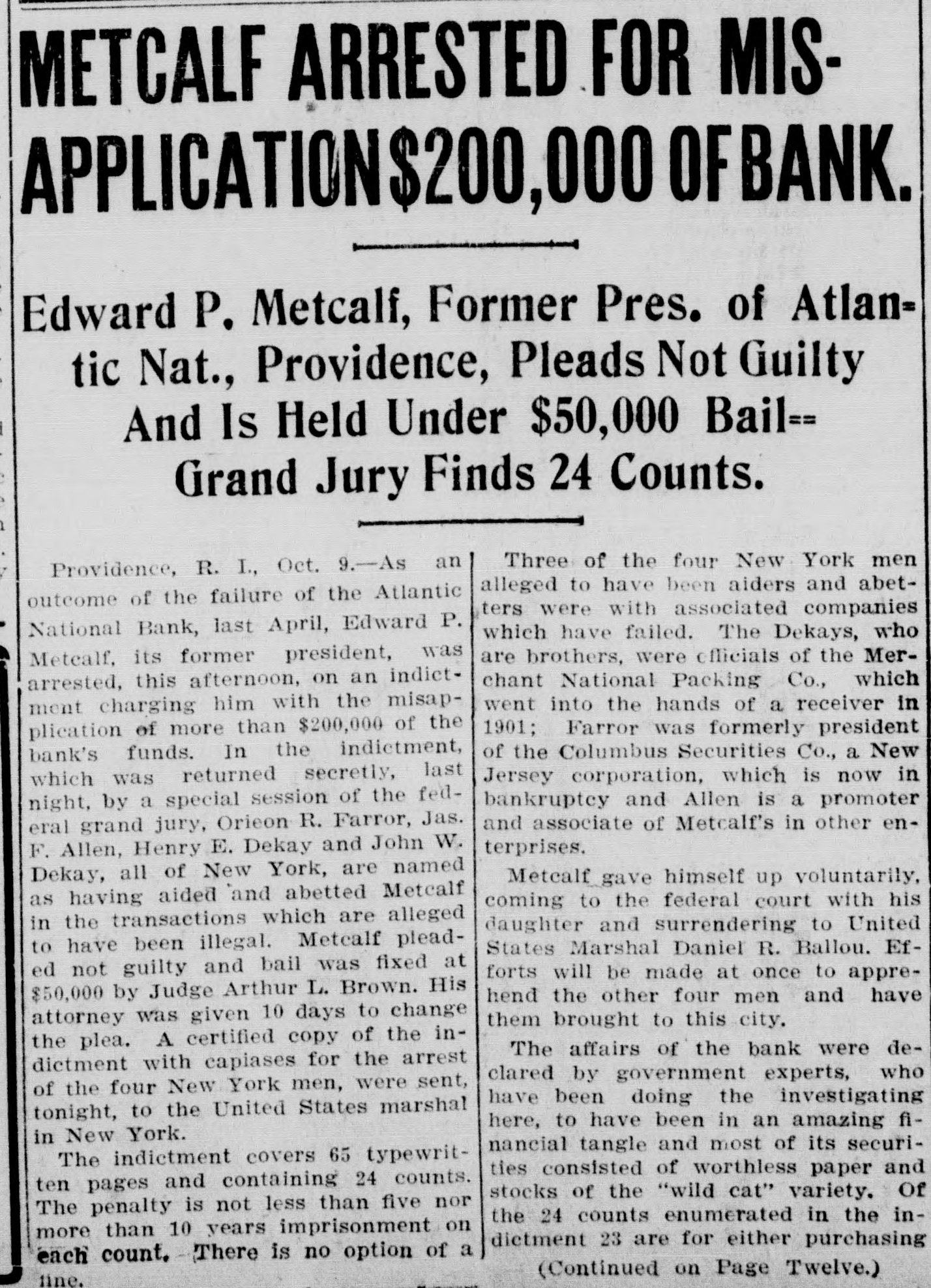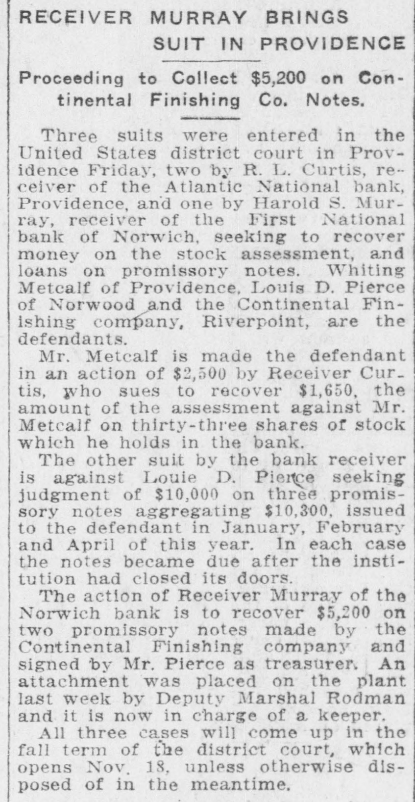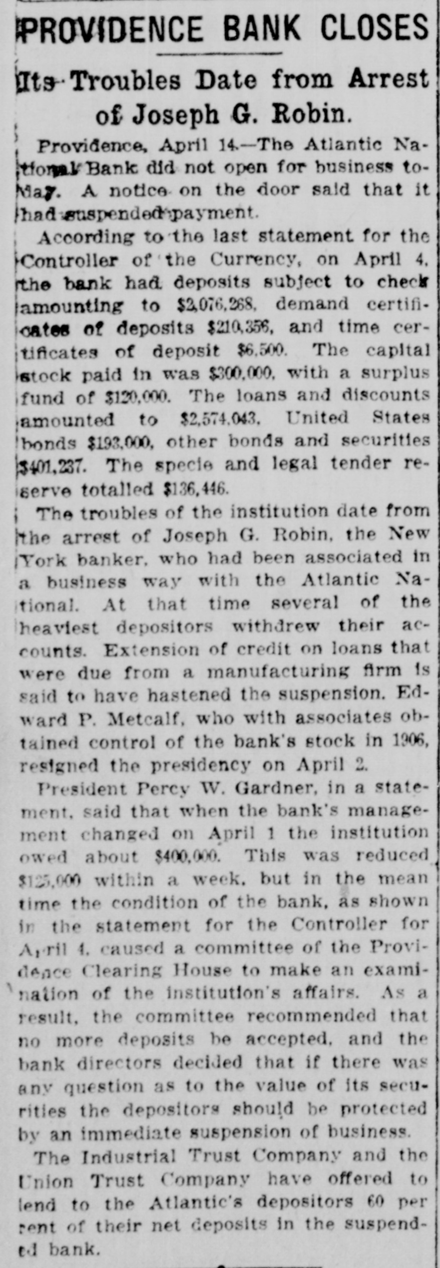 By order of R. L. Curtis, receiver of the Atlantic National Bank, Providence, R. I.: