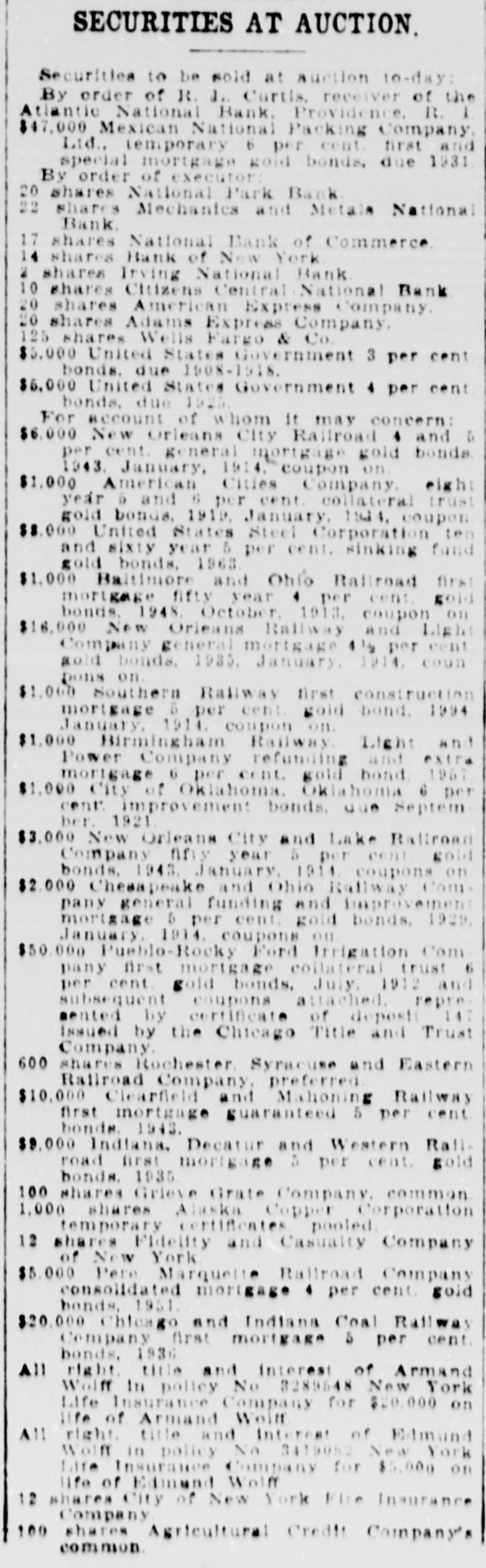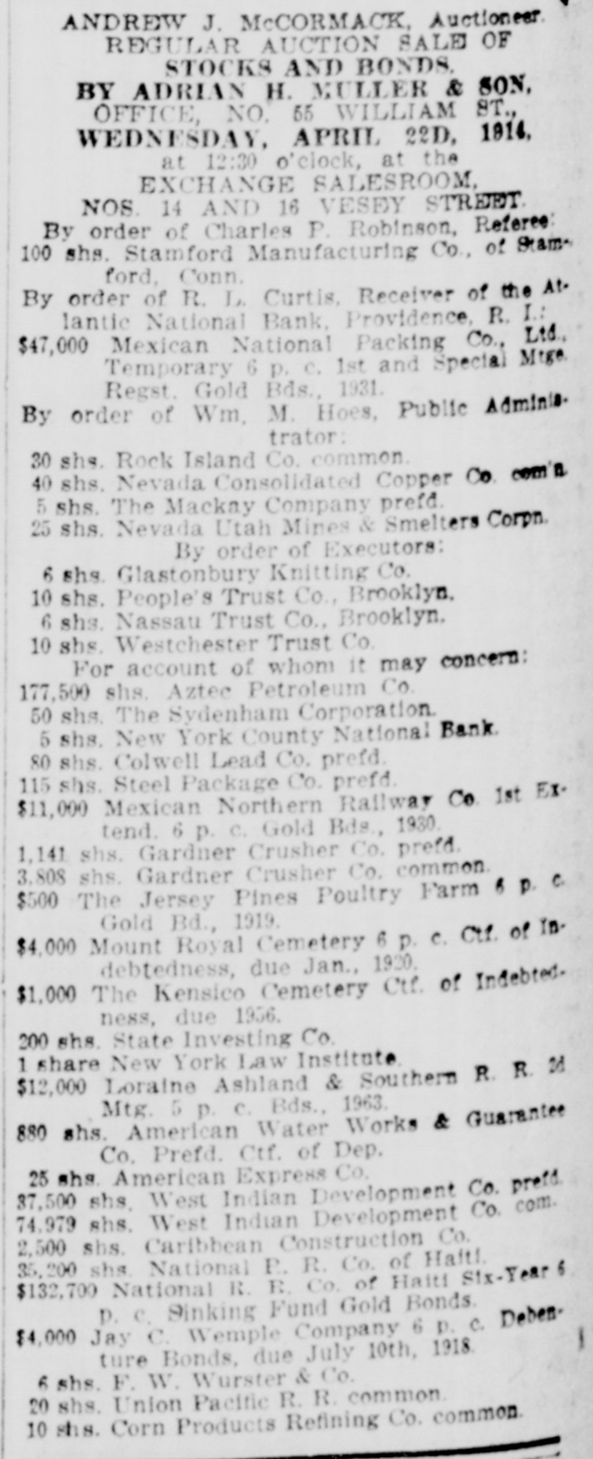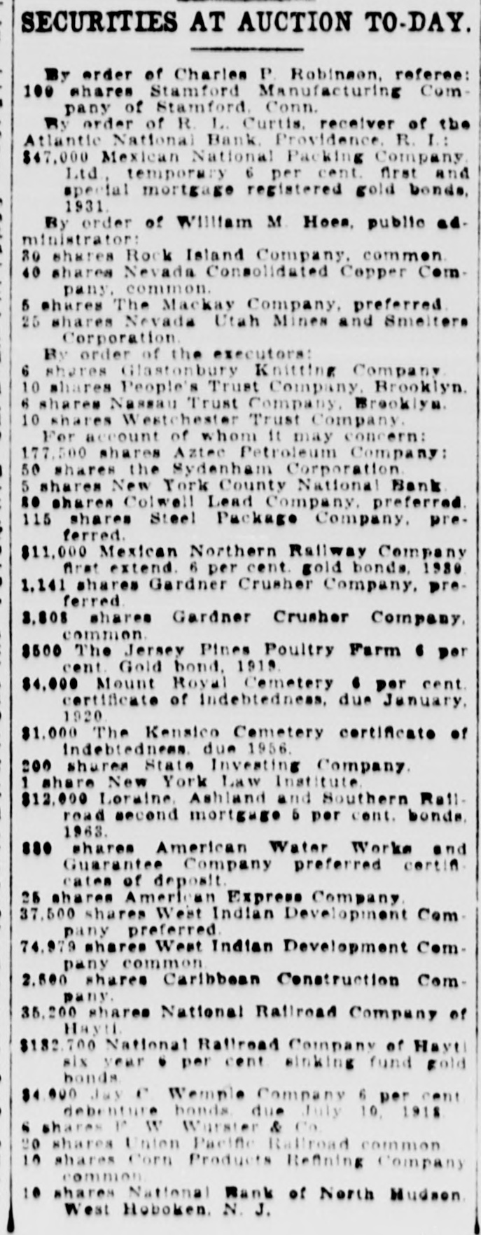 35,200 shares National Railroad Company of Hayti.