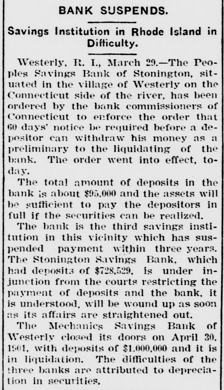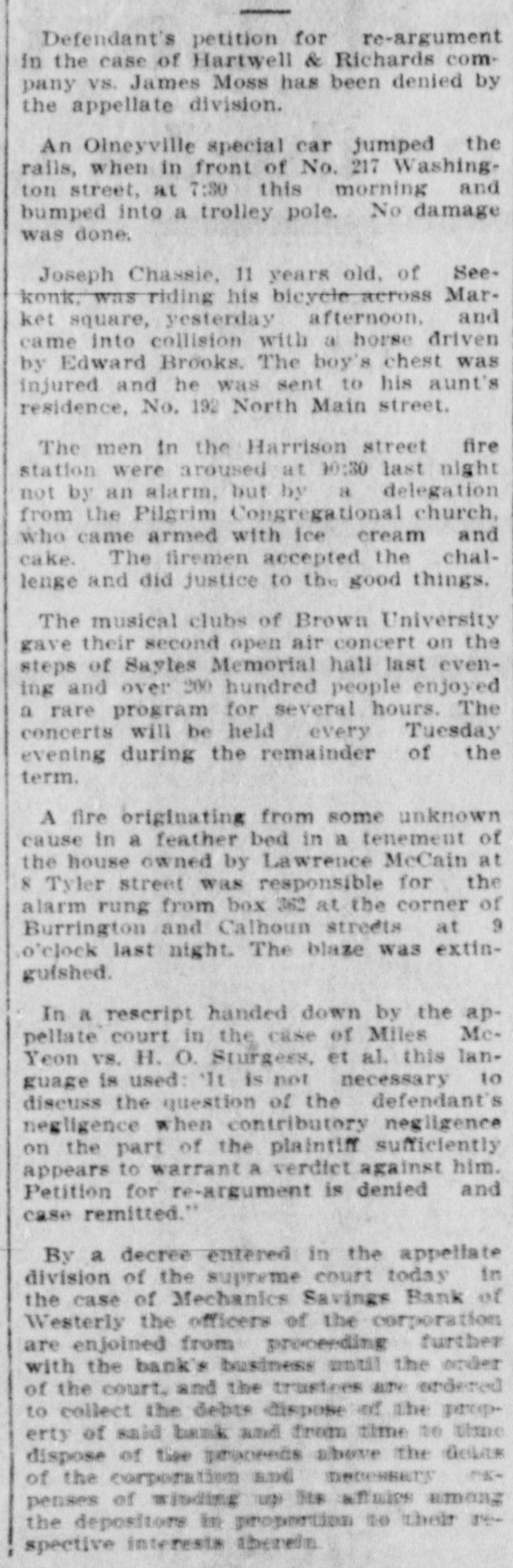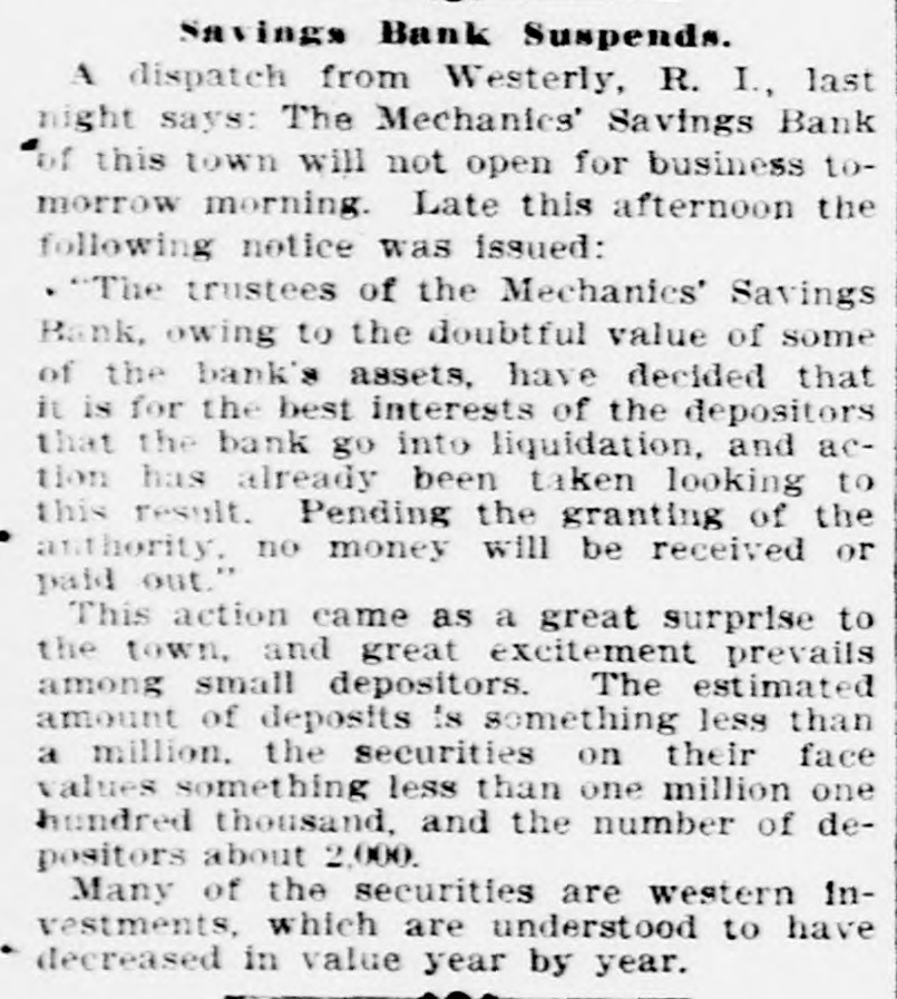 or Baetke & at Co. Brighton, Mich., was robbed of $4,000. Thomas Cole was hanged at Clinton, Ky., for the murder of Emma Cara Rice, his sweetheart. Dun's review of trade notes brisk business everywhere. Consolidation of all labor unions into one big organization is the aim of labor men. The percentages of the baseball clubs in the National league for the week ended on the 28th were: Cincinnati, .800; St. Louis, .667; Brooklyn, .600; Boston, .500; Pittsburgh, .500; Philadelphia, .500; New York, .333; Chicago, .143. More than $100,000,000 has been taken out of the Cripple Creek (Col.) gold mines since 1889. The seventy-ninth anniversary of the birth of Gen. Grant was celebrated at Galena, III. One million feet of hemlock logs were burned near Mellen, Wis., in a forest fire. Toribio Huerta was hanged at Las Cruces, N. Mex., for the murder of a companion to obtain $45. Six miners and 39 mules perished in a fire at Latrobe, Pa. James Callahan was acquitted at Omaha of complicity in the Cudahy kidnaping The jurors were given a bitter scoring from the bench. The national debts of the world at the close of the nineteenth century aggregate $31,000,000,000, largely due to wars. The condition of labor in Porto Rico is much improved since the island came under American control. The governor of Kansas repents of his offer of silver mugs to all triplets born during his second term. He has given 15 already. Job Copping, a florist, and his wife and three children lost their lives in a fire at Houston, Tex. A Cincinnati woman calcimined her husband and the saloon keeper who sold him liquor. The Cuban delegates started for home after asking the president to do all he could to give the island reciprocal trade relations. He assured them political questions must be disposed of before economic questions were considered. The Pan-American exposition in Buffalo will be open from one p. m. until 11 p. m. on Sundays. President McKinley and members of his party started on a trip across the continent. The journey will be 15,000 miles long and will take in 25 states. Twenty persons were killed by a snowslide at Sunrise City, Alaska. Two men, a woman and a boy committed suicide in Chicago in one day. Government Chemist Wiley says that a small proportion of the food sold in American markets is adulterated. The Mechanics' savings bank at Westerly, R. I., went into liquidation with assets of $1,100,000 and liabilities of $1,000,000. The National Women's Christian Temperance union will make an impartial investigation of the effects of the anti-canteen law. George Morrison, 16 years old, shot and killed three desperadoes at a dance near Watseka, Ill. The Building Trades league, a new labor body in Chicago, organized on a basis of arbitration of all disputes and opposition to sympathetic strikes. The longest transmission of electrical power in the world was tested at Oakland, Cal., where street cars were "