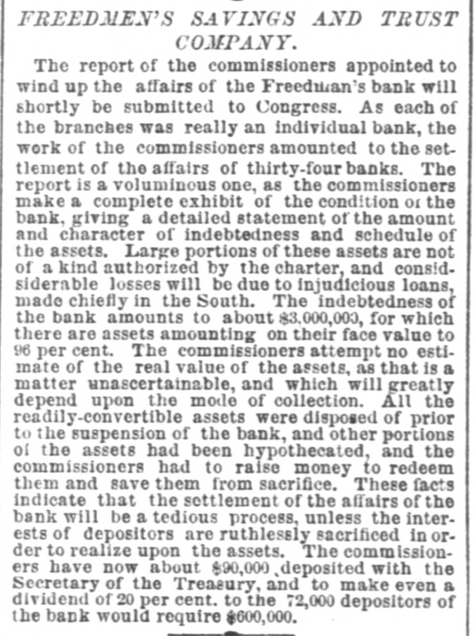 Freedmen's Bank from $50,000,000 to $60,000,000