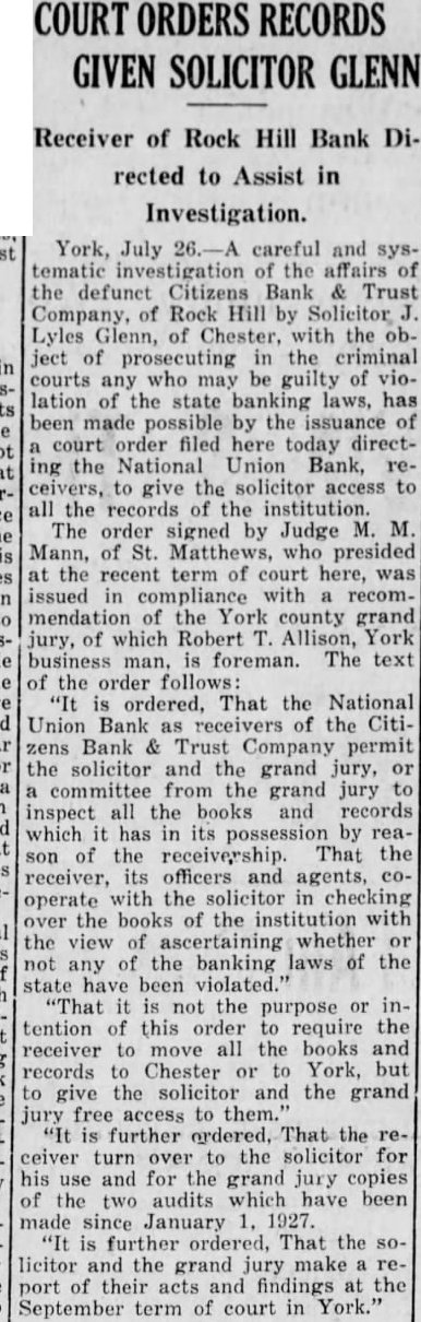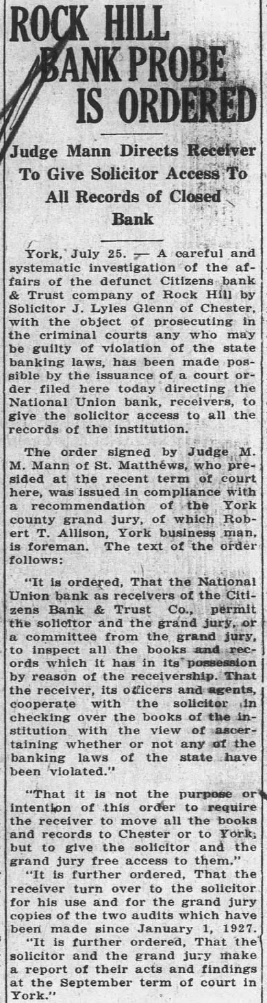 BANK TO PAY DEPOSITORS 75 PER CENT Rock Hill S. C., tors the defunct and Company will be paid 75 per to ductions here today nouncement of W. dent of the receivers for the that the National Union would loans to of 40 cent of their their deposits in the Citizens to used While Mr Roddey said that he does not to make com. ment further than the announce here familiar with the business attitude of the National Union hazrad the prediction that officers of the Na. tional would not make such offers unless they at this time of eventually paying approximately eighty which is about usual ments for safety the local institumust have for No state from officers was given out what they believe will be paid, however. also given that directors stockholders Citizens Trust Company. an al lied to the Citizens made arrangements with First Trust and Realty Company to take charge of such business of the Citizens Trust Company as insur ance in the latter stitution decide to give the First Trust A woman of makes her living by catching snakes and selling them to showmen.