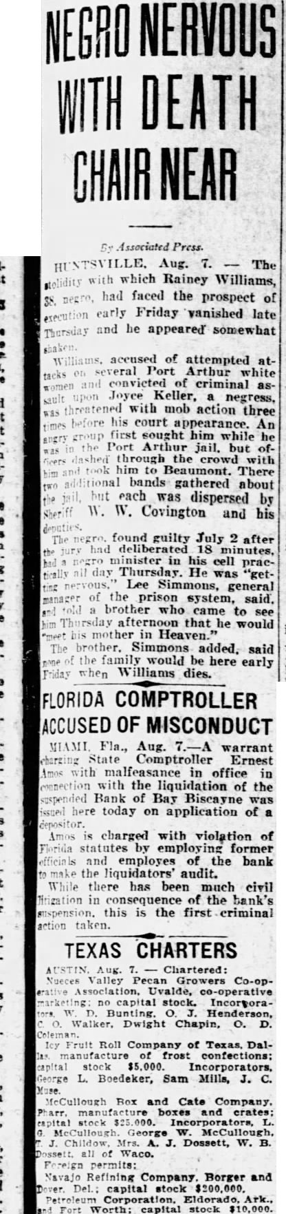 Hot News Briefs By The Associated Press LaFollette urging defeat the tariff bill calls plete betrayal Hoover's pledge limited revision give culture equity with industry.' Additional equipment was sent blazing forest gions near Port Arthur, Ont., striving to check numerous Dry weather has caused fires to break out Advance arrived Stillwater the convention the North Dakota Auxiliary. Unable to save feet timber Birch Lake, miles east Prince Albert, Sask., forestry officials ed fire fighters to other where there chance to check the wildfire. The Inland today charged ful practice in house service shippers ing the water Mrs. Walburga Oesterreich, wealthy widow Los Angeles, today granted separate trial from "attic Otto she jointly indicted for the murder of her husband. Several hundred women worn five days the biennial the Nation Federation Clubs, sought rest retreats today. Sessions will be resumed Thursday. There are women at Valley City from Cass Barnes and counties enrolled the first Homemakers Club camp The Civil War closed In 1865. Today there were just War veterans North Da. kota left to attend the annual meeting the which today Valley City, The Relief however, had 129 registered. the Minnesota Lutheran district the Evangelijoint Synod Ohio other opened today St. Paul. Plans are being perfectthe Ohio, Iowa Buffalo Synods. George Kirk, 64, commandof Knights Templar, Bemidji, died his home in Bemidji, Minn., today. Donald Cash, 14 year old Mapes since Fri day when he thrown from showed improvement today More than broadcasting tions participate in the broad the Thursday night. Mrs. Alice Eikor, 74, niece of Gen. Robert Lee, died last night in Oklahoma City. Chief Justice and Mrs. Hughes daughter Elizabeth, sailed toon the Leviathan for southern Europe. fell over territory stretching from Wilton to Underwood and the nity Van Hook yesterday. In addition heavy rains fell area between Mandan and Dickinson. Dr. Ernesto Rossi, Italian wine taster manufacturer, foreign visitor who under stand objection strict pro hibition enforcement. His opinion based after drink bootleg wine. Funeral services be held Edmore, tomorrow for Hans Myhre, 59, who succumbed Sunday injuries ceived fall off grain tank during runaway last week. Four deputy sheriffs of Sedgwick county Kansas, arrested day charges of violate the prohibition Mrs. C. Bohmbach, wife Red Wing, Minn., alderman, found dead the cistern her home today. She been ill for several years. North Dakota Laundry Own convene Devils Lake, with expected. shortage of $308,000 the First National Bank at Chey. bongone, Mich., Clyde Milliken, savings teller committed Monday will be paid in full to depositors. Chief of Police Henry C. Knipe, Kans., arrest under federal for violating prohibition laws. The Bank of Bay Biscayne, Miami, with $15,000,000 deposits and three affiliated banks, closed today after heavy runs. June fishing schooner Rainbow arrived Boston fish day with of the bodies of the disaster The bodies, recovered scene last night's those seven men, two women, and baby French inventor's home heavily bar pivoted to that an arm and same time.