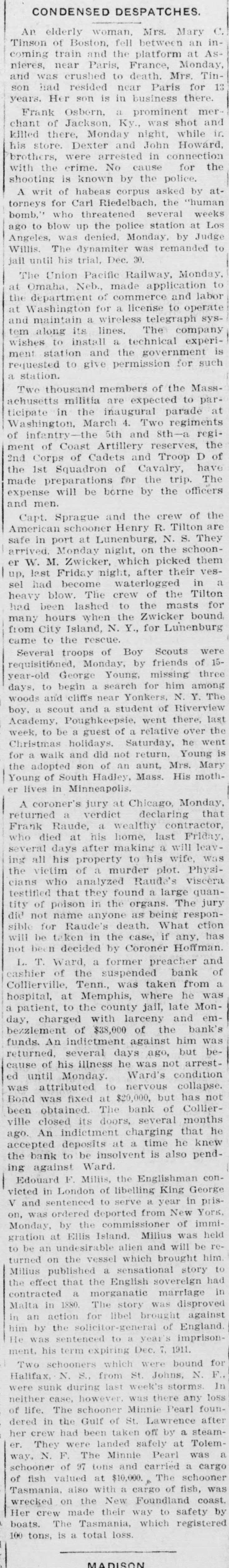 # CONDENSED DESPATCHES.