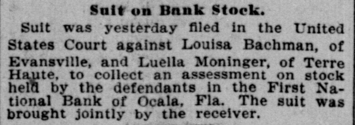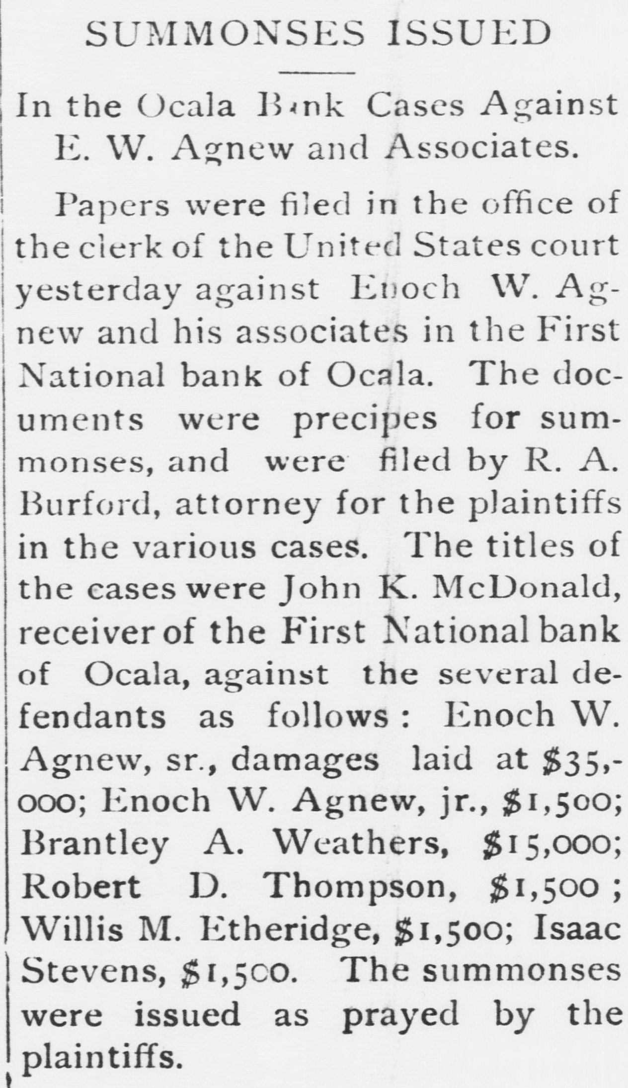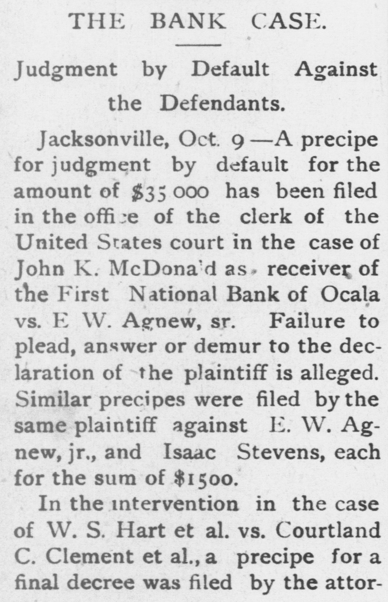 THE First national bank of Ocala, Fla., closed it doors.