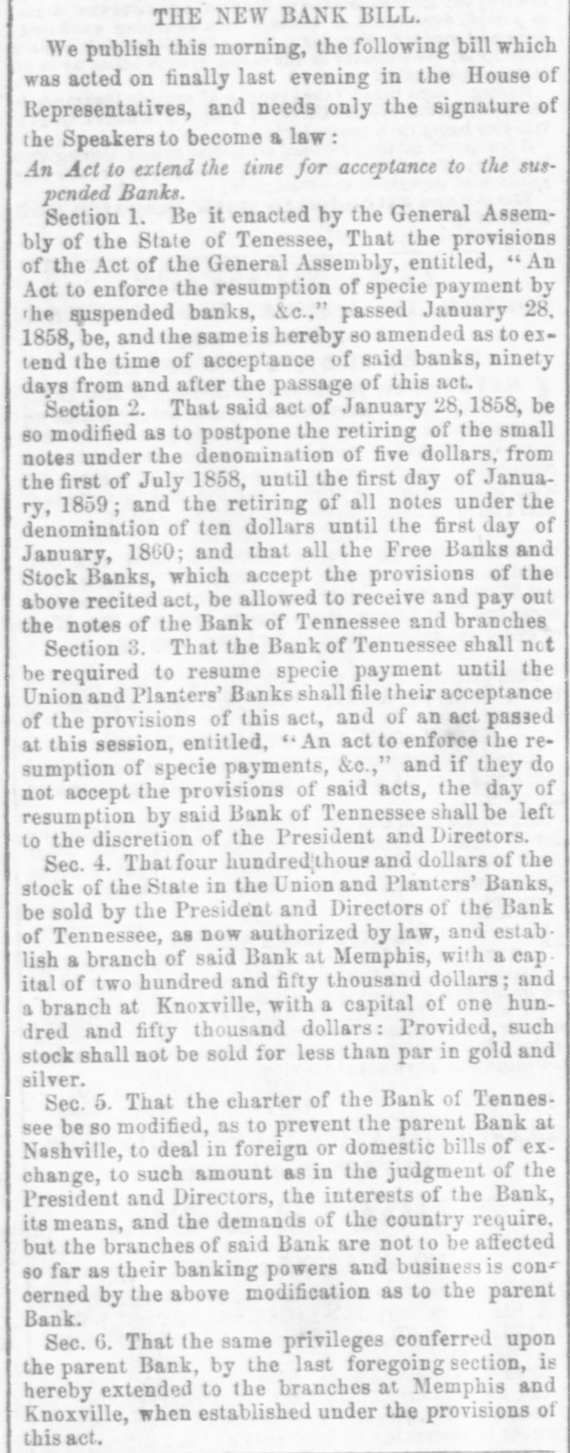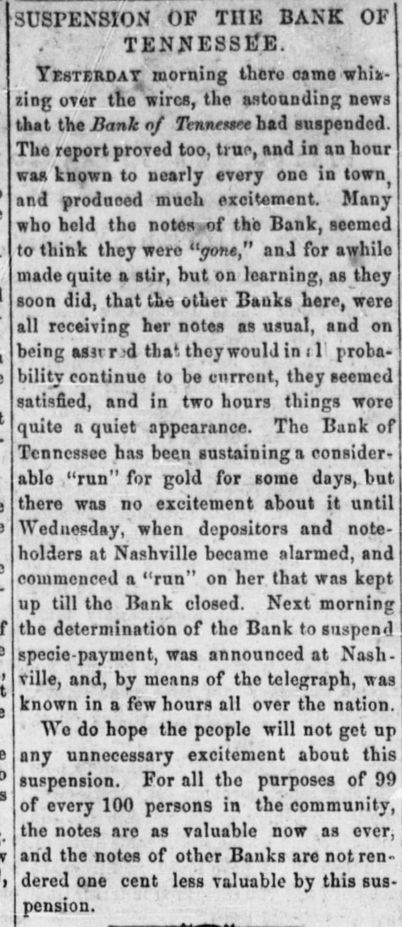 LIQUIDATION OF THE BANK OF TENNESSEE.