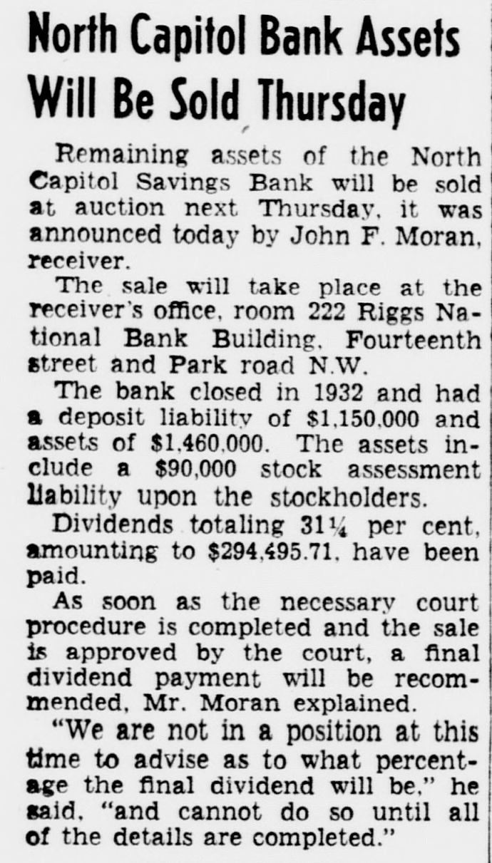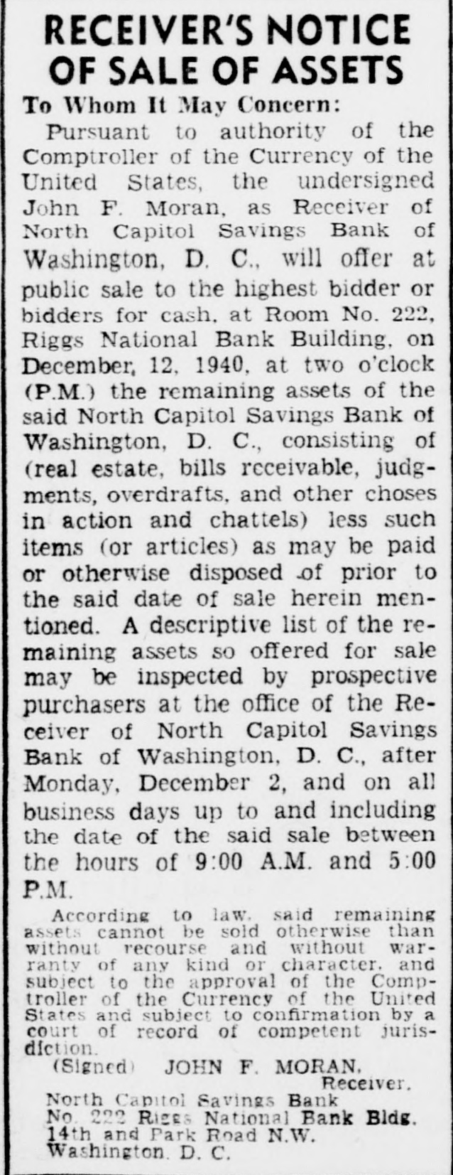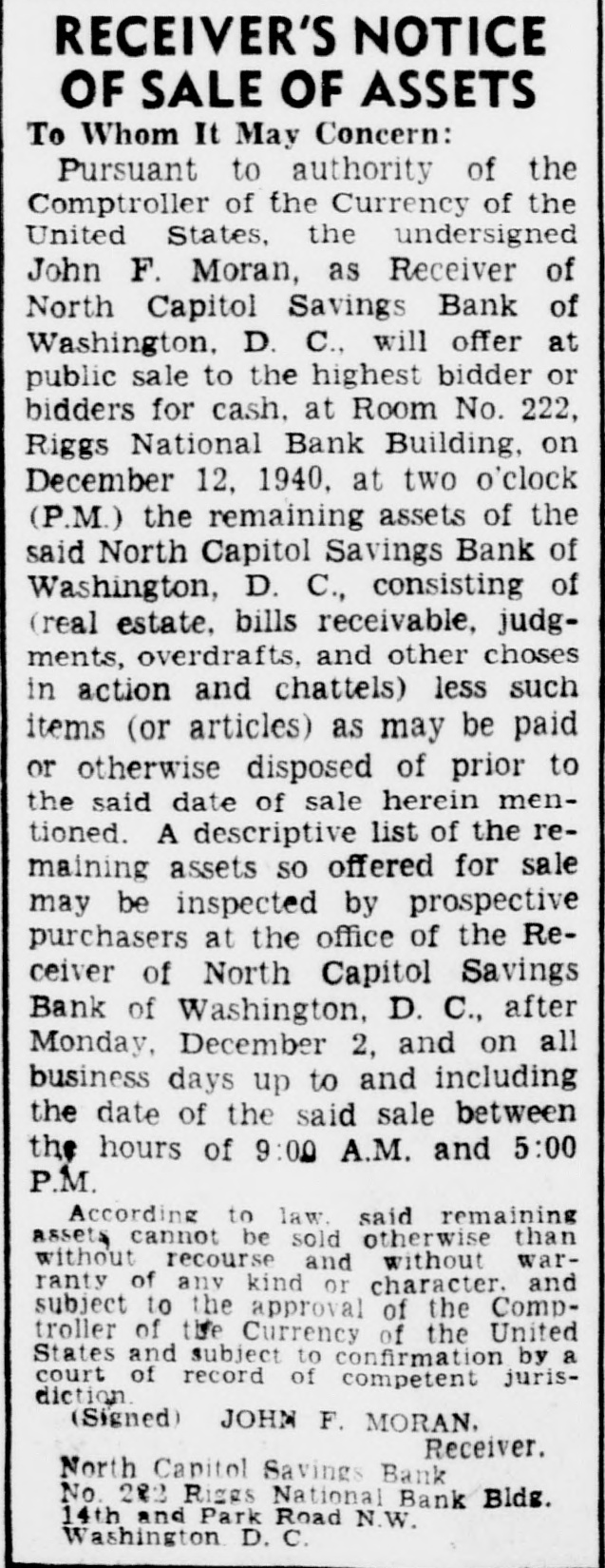 North Capitol Savings Bank, John F. Moran, receiver (Federal unemployment tax), $574.46 and $606.71.