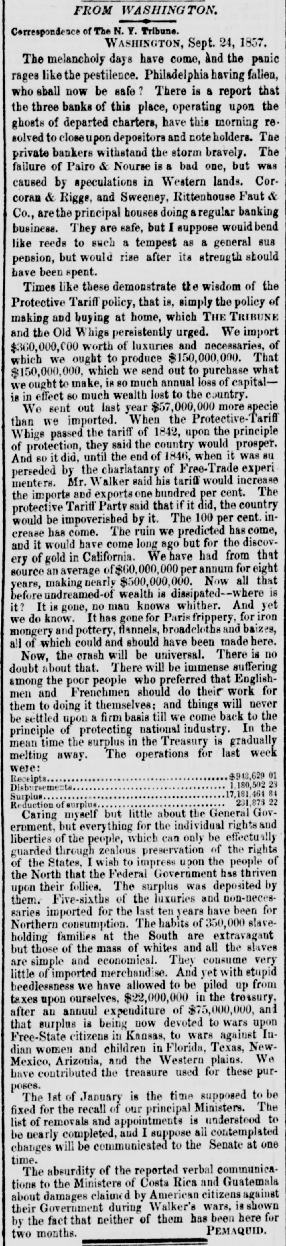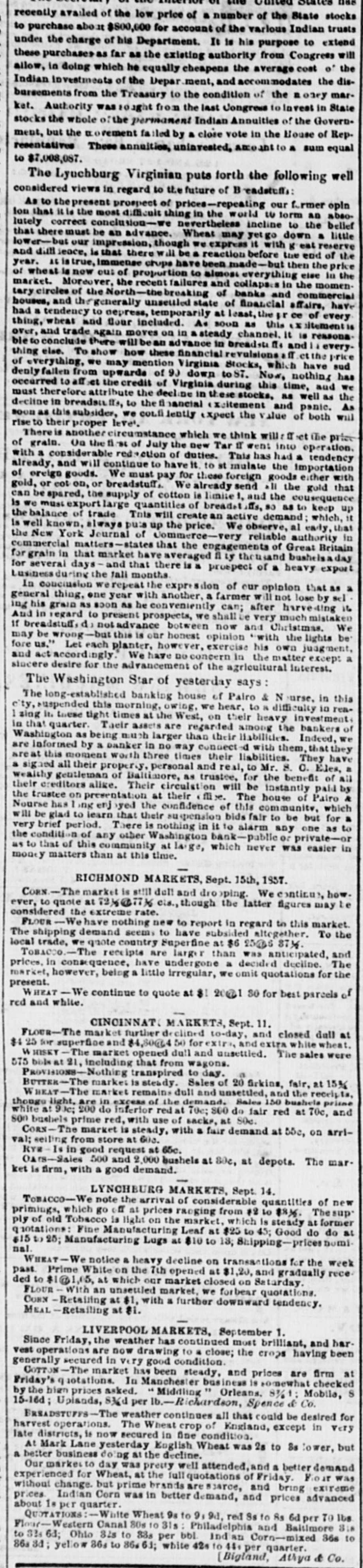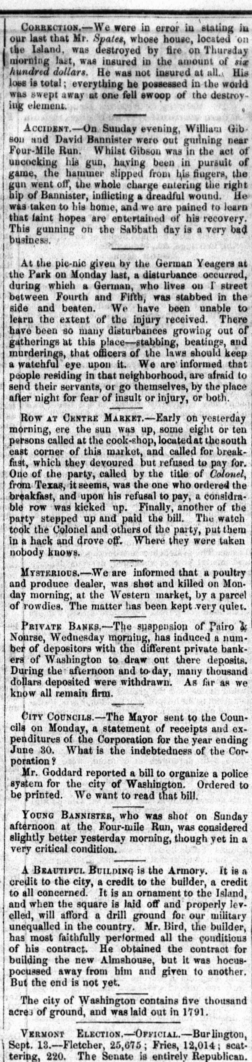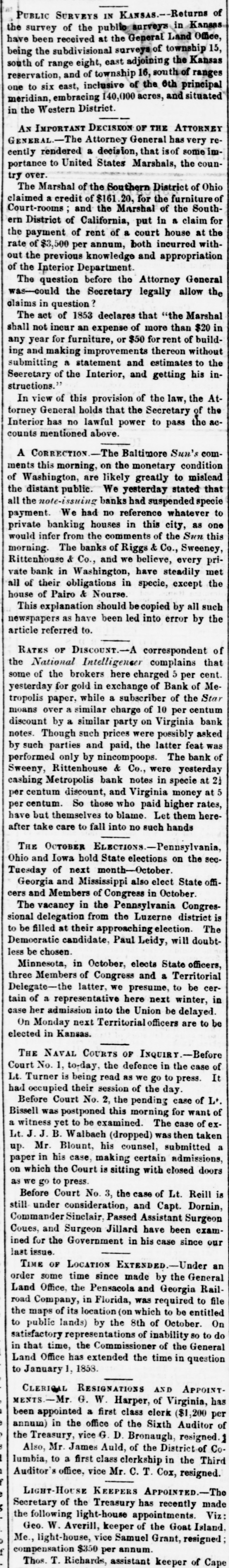 LOCAL INTELLIGENCE. THE PAIRO AND NOURSE DEED OF ASSIGNMENT was filed at the City Hall on Saturday. Subjoined is a copy of the deed This Indenture, made this fourteenth day of September. in the year one thousand eight hundred and fifty seven, between Charles W Pairo and William Nourse in the county of Washington, in the District of Columbia, of the first part, the said Charles W. Pairo of the second part, the said William Nourse of the third part, Samuel C. Edes of the city of New York, of the fourth part, and all the creditors of the said Pairo & Nourse jointly and severally of the fifth part; whereas, the said Pairo & Nourse are indebted jointly and severally to sundry individuals. companies, and copartnerships, for divers sums of money deposited with them at their banking house in the city of Washington, and on the promissory or banknotes termed circulation notes, payable to bearer, issued by them, and divers other accounts and claims, and they are the owners of sundry real and personal estates, bonds, bills, notes, stocks, rights, credits, claims. and demands, and the said Charles W. Pairo is the owner individually of divers real and personal estates and effects, and the said William Nourse is the owner individually of divers other real and personal estates and effects, and the said Charles W Pairo holds in name divers lands and real estates, but the same belong to the firm of Pairo & Nourse, and being unable to meet their engagements they are desirous of having all their assets and property of every description, joint and several, made available as early as practicable and applied to the satisfaction of all their and each of their debts and liabilities in the manner hereinafter provided for, which upon mature and anxious consideration they have deemed most just and equitable This indenture therefore witnesseth that in consideration of the premises and of the sum of one dollar current money to the said Charles W Pairo in hand paid by the said party hereto of the fourth part, at or fore the execution hereof. (the receipt whereof is hereby ae knowledged, he, the said Charles W. Pairo, hath granted, bargained and sold, released and conveyed, and by these presents doth grant. bargain, sell, release and convey unto the said party hereto of the fourth part and his heirs, all those several lots, pieces or parcels of ground situate in Georgetown, in the county and District aforesaid, and being known as lots number sixteen, seventeen. eigh. teen and nineteen, in Peter Beatty, Threckell and Deakin addition to said town, being bound on the north by Prospect street, on the east by Frederick street, on the south by Bridge street, and on the west by Fayette street, with the dwelling house and other improvements thereon, the present residence of the said Charles W. Pairo; and also lot number five in square number sixty-one. in the said city of ashington and also all other real estate owned by him individually in the said District of Columbia, and all his estate, legal and equitable, therein and thereto, to have and to hold the said hereditaments, and every of them and every part thereof, with the appurtenances unto, and to the use of the said party hereto of the fourth part, his heirs and assigns, upon the trusts and for the purposes hereinafter declared concerning the same. And the said Charles W. Pairo, for the consideration aforesaid, bath assigned, transferred. set over and aliened unto the said party hereto of the fourth part, his executors and administrators and assigns, all and singular the household furniture, plate, Huen, china, glass, goods, chattels and effects of every kind and description, now being in and about the dwelling house and premises of said Charles W Pairo, (and of him.) situate on the said lots in Georgetown aforesaid, or on some or one of them, and as now used and possessed by him and also his horses and carriages and also all debts, stocks, claims and demands, and personal property hatsoever, owned by him individually, wheresoever the same may be, to have, take, receive and hold the same furniture and effects, debts and claims above mentioned, unto and by the said party hereto of the fourth part, his executors. administrators and assigns, upon the trusts and for the purposes bereinafter declared concerning the same. And the said Wm. Nourse, in consideration of the premises and of the sum of one dollar current money to him in hand paid by the said party hereto of the fourth part, at or before the execution hereof, (the receipt whereof is hereby acknowledged,) he. the said Wm. Nourse, hath granted, bargained, sold, released and conveyed, and by these presents doth grant, bargain, sell, release and convey unto the said party hereto of the fourth part, and his heirs, all those lots in the said city of Wasbington, known as lots number two, three, four, five and six, in square number three hundred and thirty-nine, with the dwelling house and other improvements the reon, the pres. ent residence of the said Wm. Nourse, and also all other real estate owned by him. individually, in the said District of Columbia, and all his estate and interest, legal and equitable, therein and thereto, to have and to hold the said hereditaments, and every of them, and every part thereof, with the appurtenances unto. and to the use of the said party hereto of the fourth part, his heirs and assigns, upon the trusts and for the purposes hereinafter declared concerning the same And, for the consideration aforesaid the said William Nourse bath assigned, transfered, set over, and aliened, and by these presents doth assign, transfer. set over and alien, unto the said party hereto of the fourth part, his executors, administrators and assigns, all and singular the household furniture, plate. linen, china, glass, goods, chattels and effects, of every kind and description, of said Wm. Nourse now being in and about his dwelling house and outhouses situate on the said lois. on some or one of them, in thesaid sq