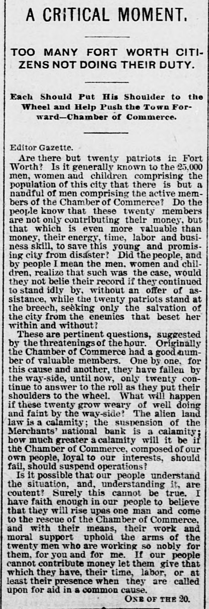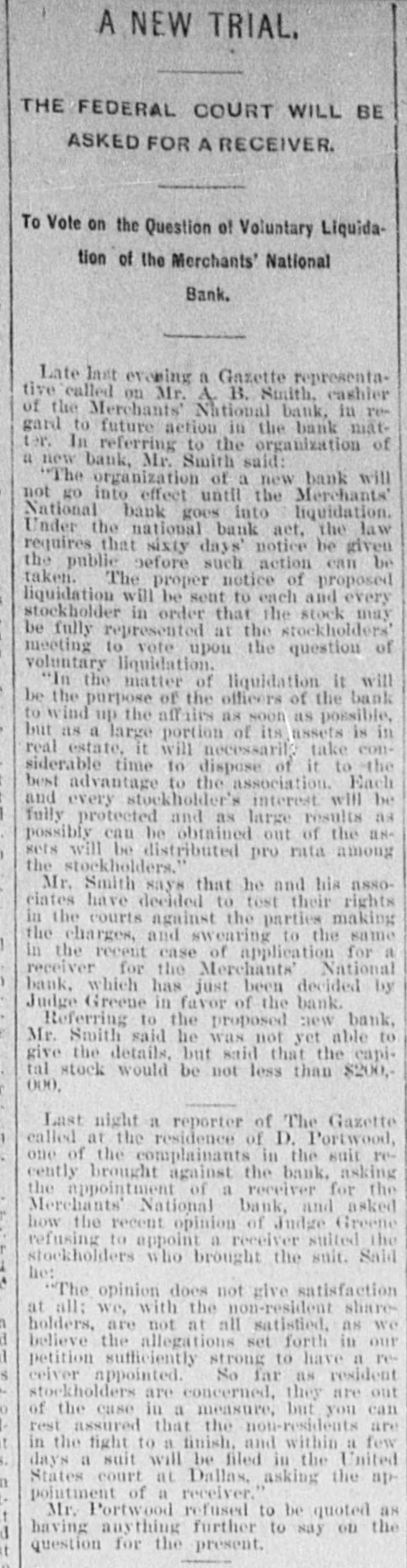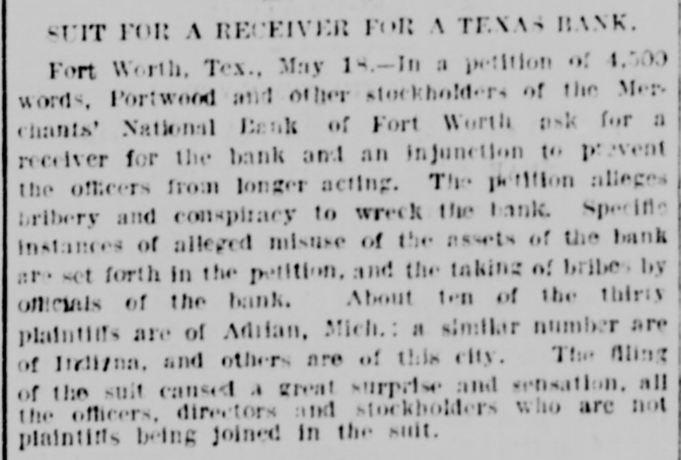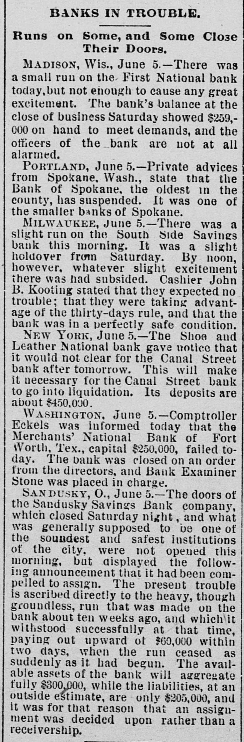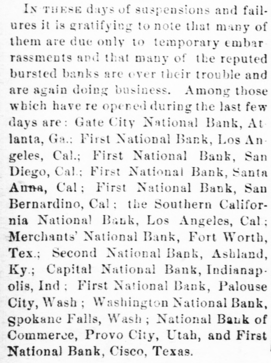 LATE TELEGRAMS BCILED DOWN FROM PRIVATE, SPECIAL AND OTHER SOURCES. Railway strike at Paris collapses. Forty houses destroyed by fire in Guadalajara, Spain. Taylor will put up for railway connection with M. K. & T. at Trinity. President Finney, of Soo and South shore, at Minneapolis, resigns. The I. & G. N. receivership meets at Austin Monday the 27th. Governor of Minnesota and sheriff refuse to interfere in the prize fight A. Friedlander, Gainesville china merchant, fails. Two boys arrested at Tracy City, Tenn., for murdering a peadler. The state railway commission gives audience at Dallas to shippers. Jim Huntley wanted in Texas for forgery, extradited at Toronto. Mrs. Maybrick is denied the $10,000 insurance on her husband's lite. Another civil conflict is immenent in Samoa. Laredo is disconsolate over the Sunday law enforcement. San Angelo has shipped 3,000,000 pounds wool this season. Good rains at Belton give assurance of immense cotton crop. The Austin soldiers find running guard for beer rather risky business. The Austin riot is set for today, and the boys will have a circus. Major Ford is medical director of the Austin camp. Llewellen of Waco is charged with criminal assault on a young married woman. Uruguay is threatened with bankruptey. Clarkson says Quay wanted to resign immediately after Harrison's election. Patrick Kelly, Galveston jailer, from injuries received from an insane prisoner. J. S. Schweitzer's will probated at New Orleans; several public charities get from $5000 to $10,000 each. The Tennessee miners canture the militia and convicts and ship them to Knoxville. There will be bloodshed at Bruce. ville, Tenn., over the attempt to work convict miners. Gov. of Tennessee is urged to arrest and punish the miners, who took the camp. The miners threaten to destroy the bridges and burn the railroad if troops are sent Detail ha® been made for court martials at Austin, Major A. W. Houston judge advocate. San Antonio elect, ic ca's are doing temporary duty at Austin during encampment. There are about 2500 men In camp at Austin, one third regulars, the rest militia. Georgetown chautaqua closes, a nd gives a donation of $1,000 to the 80. ciety. Lawyerville, a Michigan lumber town of fifty buildings and mills, destroyed by fire Texas gets her world's fair building site set apart before the money is raised for it. Merchants national bank at Fort Worth is pronounced solvent, and will reopen in 30 days. R. Crain, San Jacinto veteran drowned in the Bosque, at Valley Mills. The Erie threatens to cat central traffic rates unless New England roads stop scalping. Reagan says rates cannot be established to give one place advantage over another. Railway committee is considering grain, cotton, lumber, and salt rates today. Silver is gradually nearing the $1 00 mark on the New York exchange. A revenue vessel will probably be sent to Eastport, Me., to protect American fishermen. Union Investment company of Kansas City, Winner's bursted concern, will be reorganized. Central bank, Kansas City, Kas., fails through failure of the Wyandotte bank. Petition for an Austrian society, to perpetuate national feeling, refused at St. Louis. An immense concourse of St. Paul people protest against the Hall-Fitzsimmons fight. Contract let for grading and ironing the road from Denison to Nebraska state line. Chairman of Chicago and Alton will pay no attention to Western Passenger association rates made without consulting them. Senator Quay has desired to resign as chairman of the republican com-