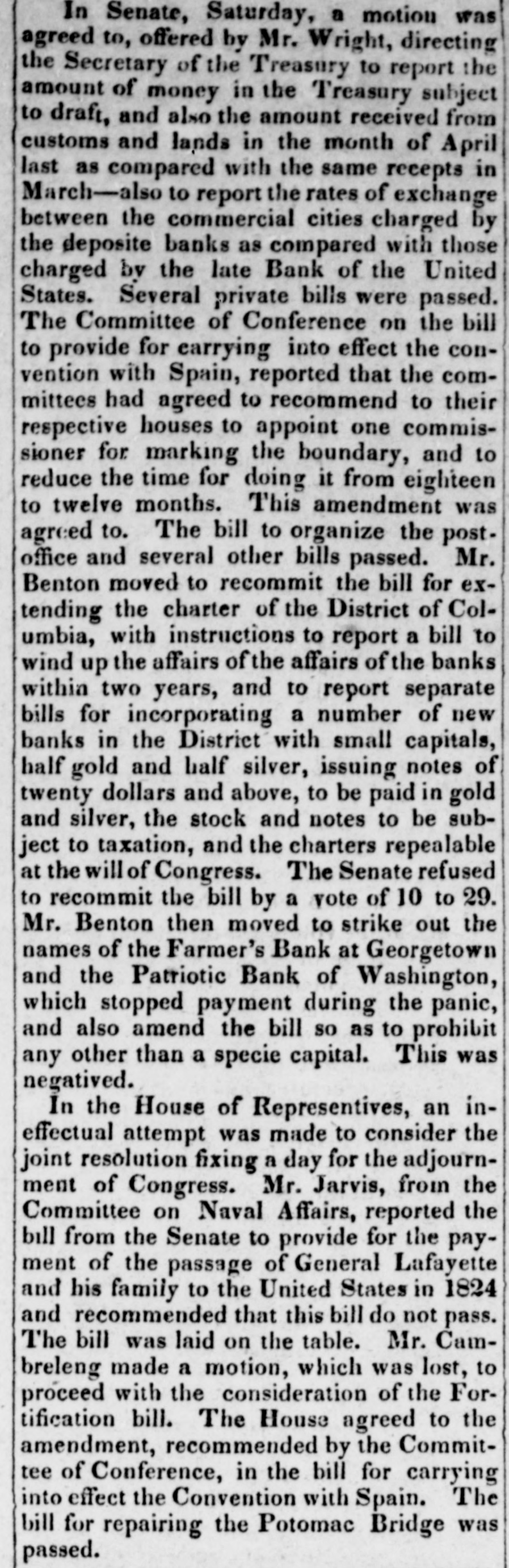 Before 1852 there wildcat in or claiming to have offices where their notes were deemable These banks. according porary existence of value. Among The CoKing. treasurer. and the Bullion W M. Watson, president and S. K Dexter, cashier. In Intelligencer of Jangiven the fact the of the meet liabilities immediately. necessary. in the following ratio Bank of Washington. per cent; Patriotic Bank of Washington, per cent: Bank Union Bank Georgetown 78.30 per Mechanics Bank 54.52 per cent; Farmers Bank per and the Bank Potomac per cent.